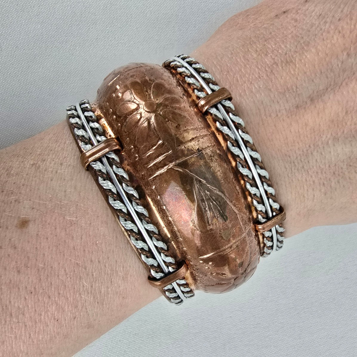 Vintage Copper Embossed Cuff Bracelet