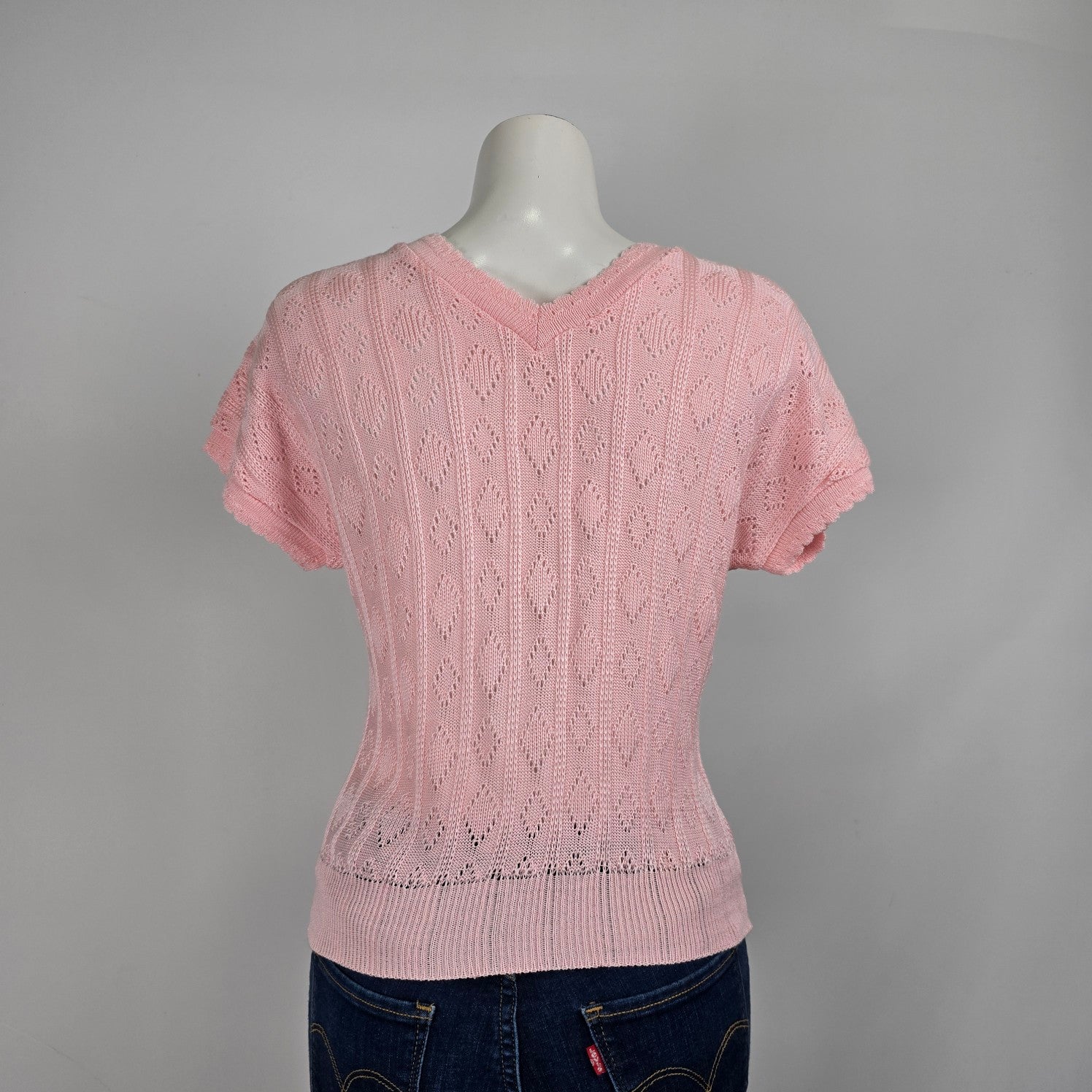 Vintage Countdown Pink Knit V-Neck Sweater Size S/M