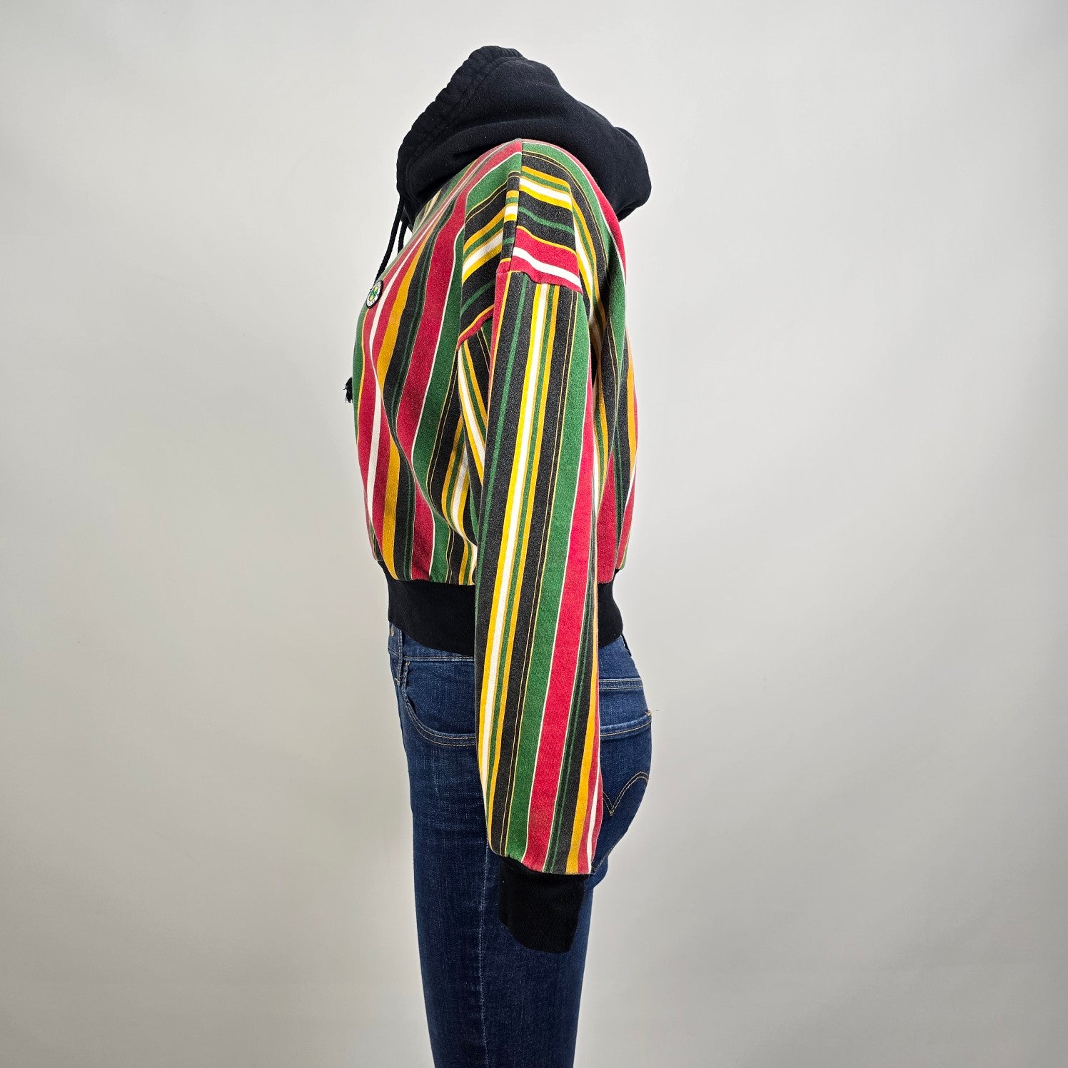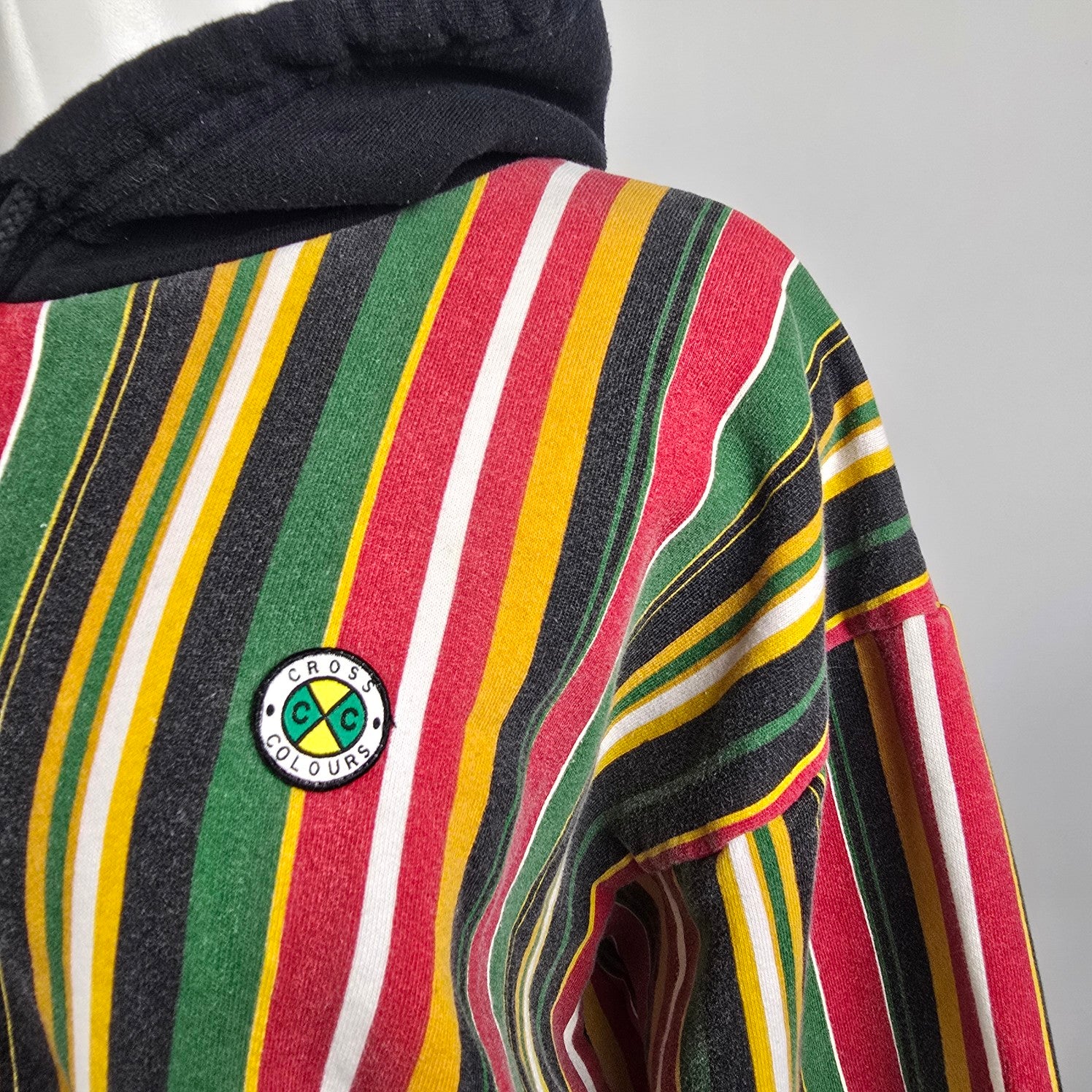 Vintage Cross Colours Cropped Hoodie Striped Hip Hop Sweatshirt Size M