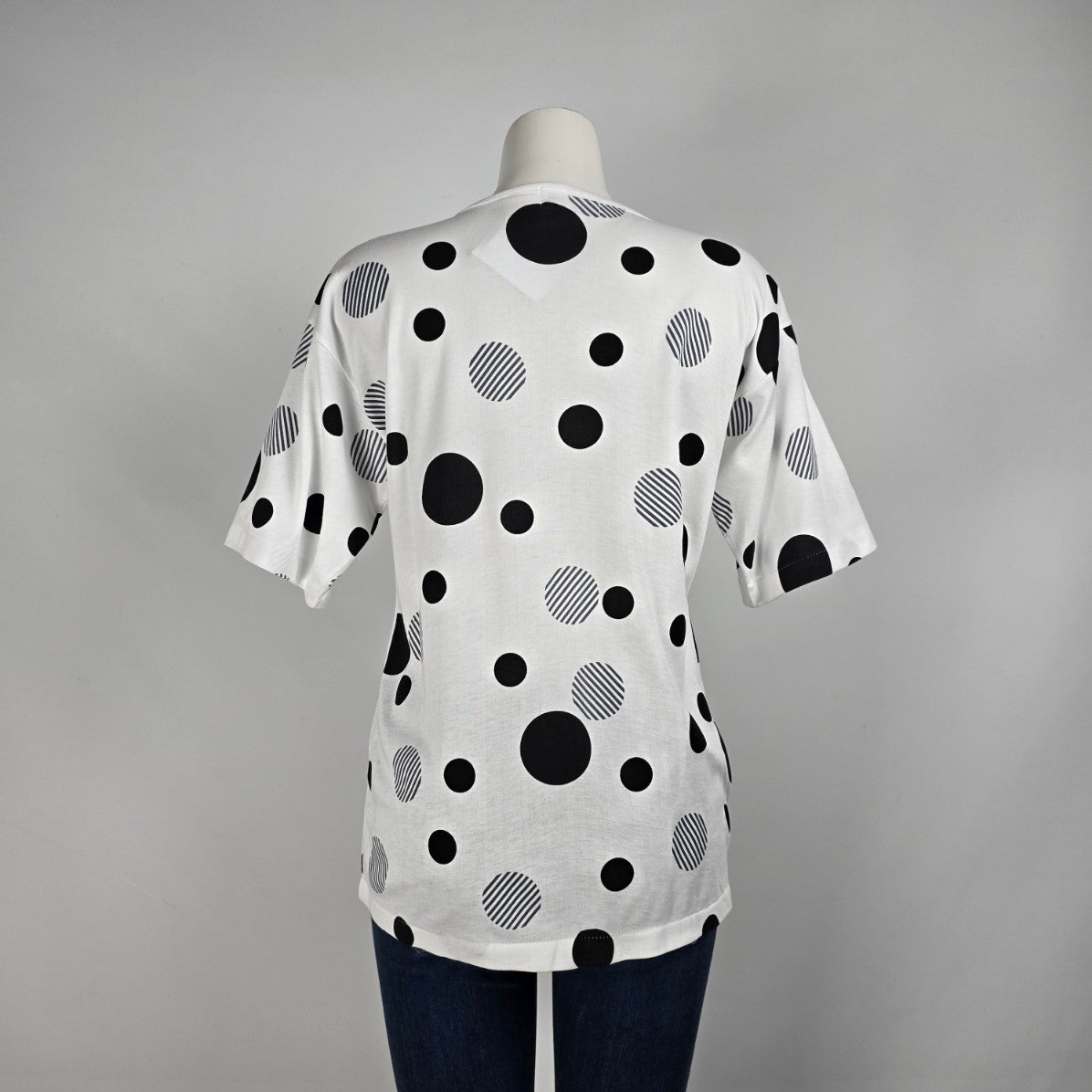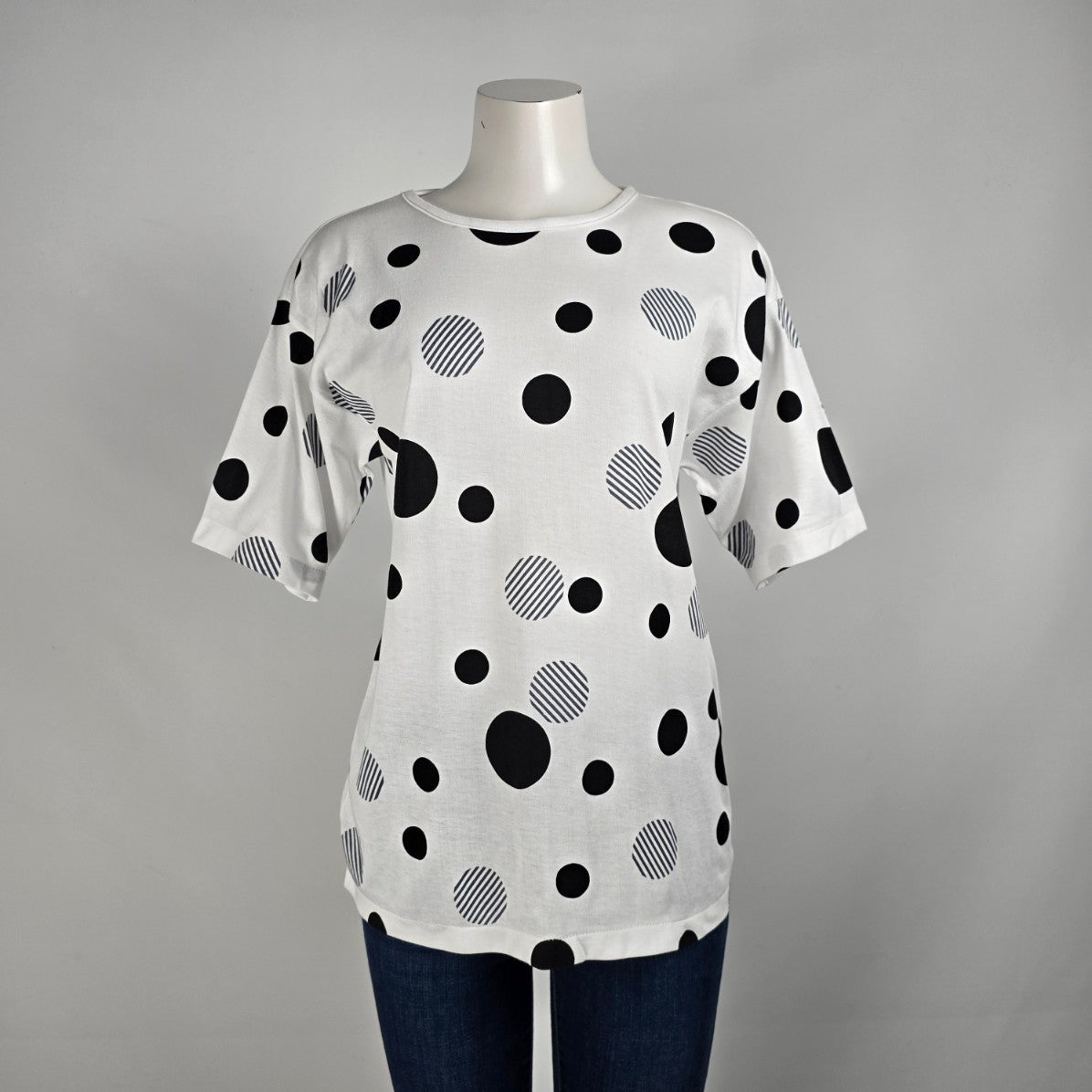 Vintage Destiny White Polka Dot T-Shirt Size S