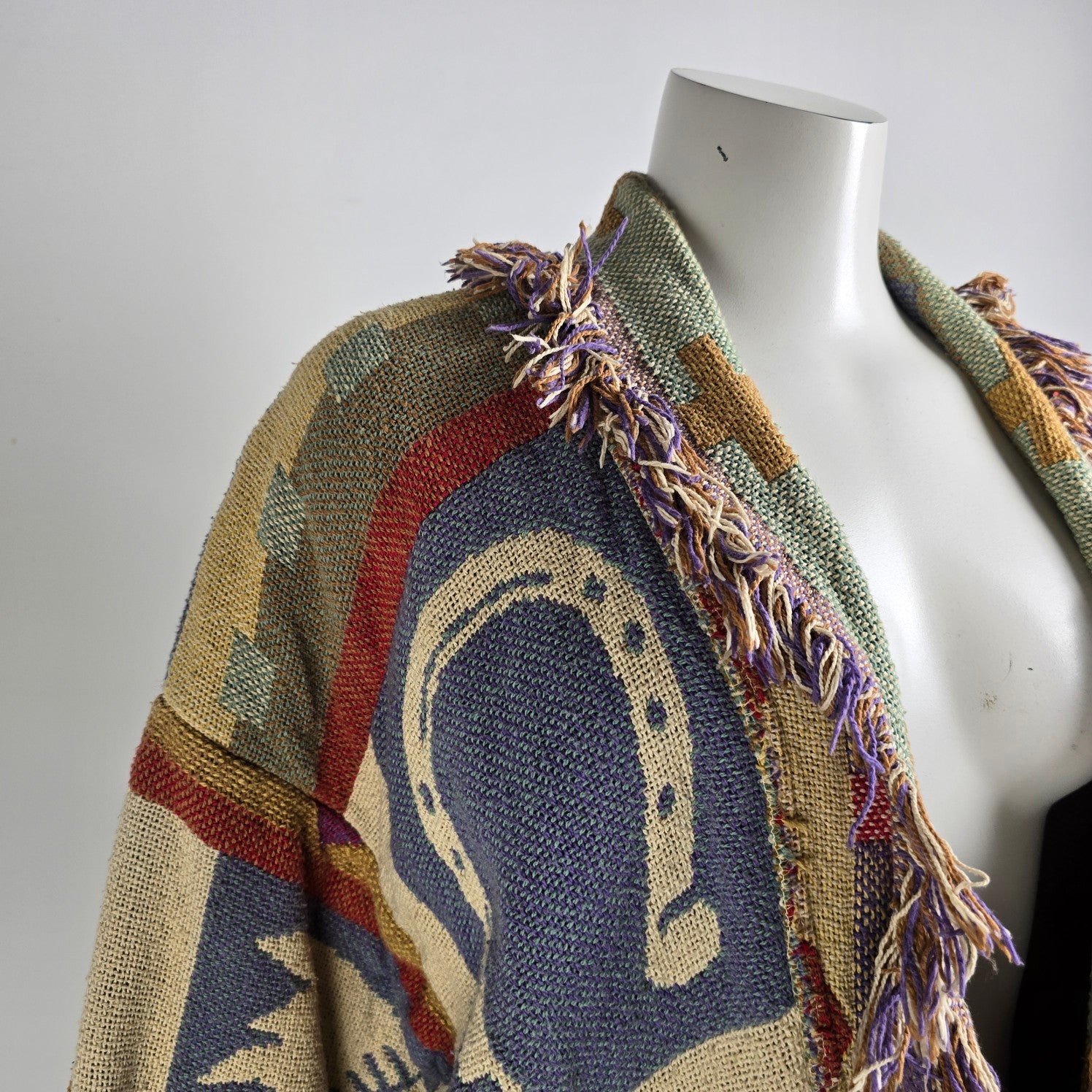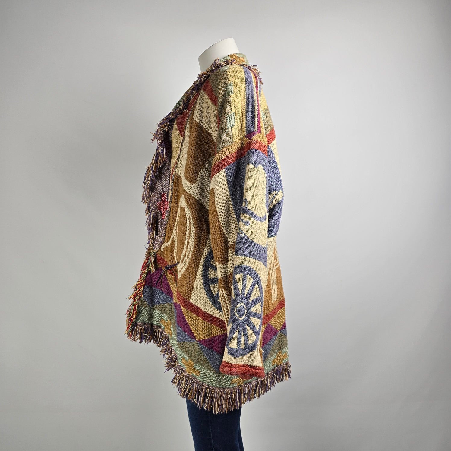 Vintage E. Claire Designs Austin Texas Cotton Fringe Jacket Size L/XL