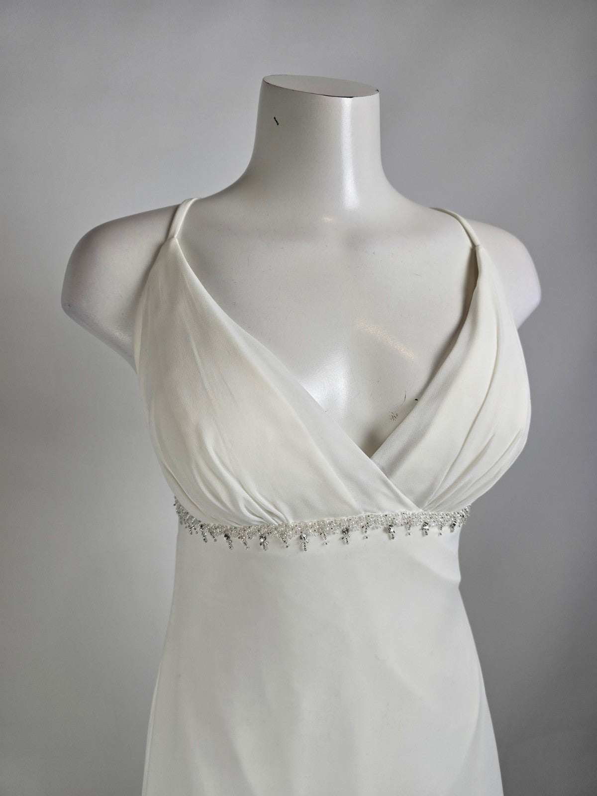 Vintage Elegance White Beaded Detail Wedding Dress Size 8