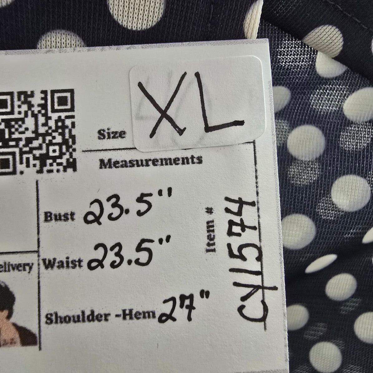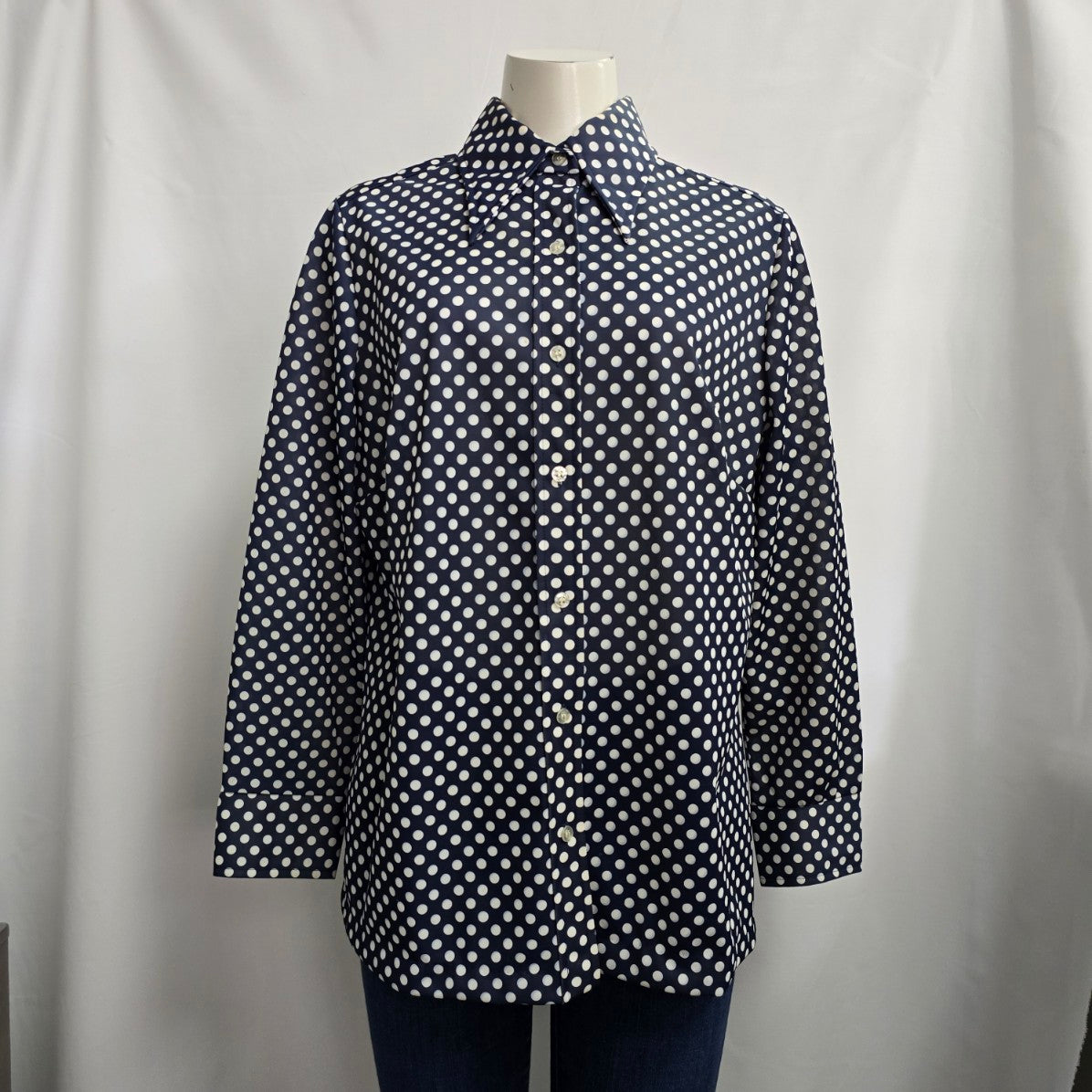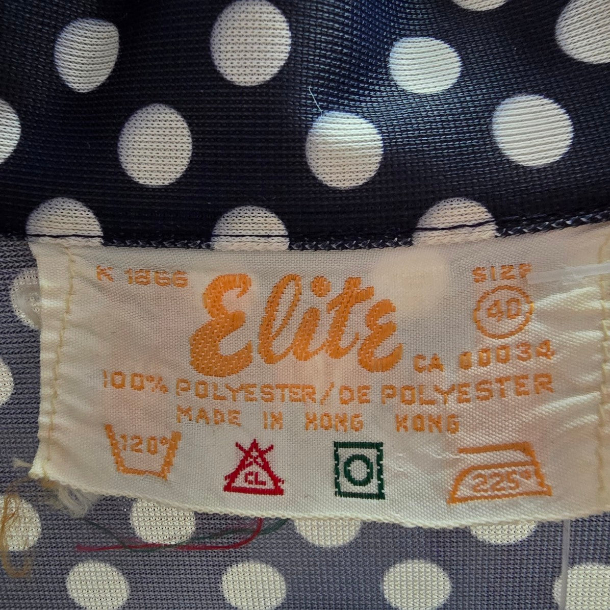 Vintage Elite Navy Blue Polka Dot Button Up Collared Blouse Size XL
