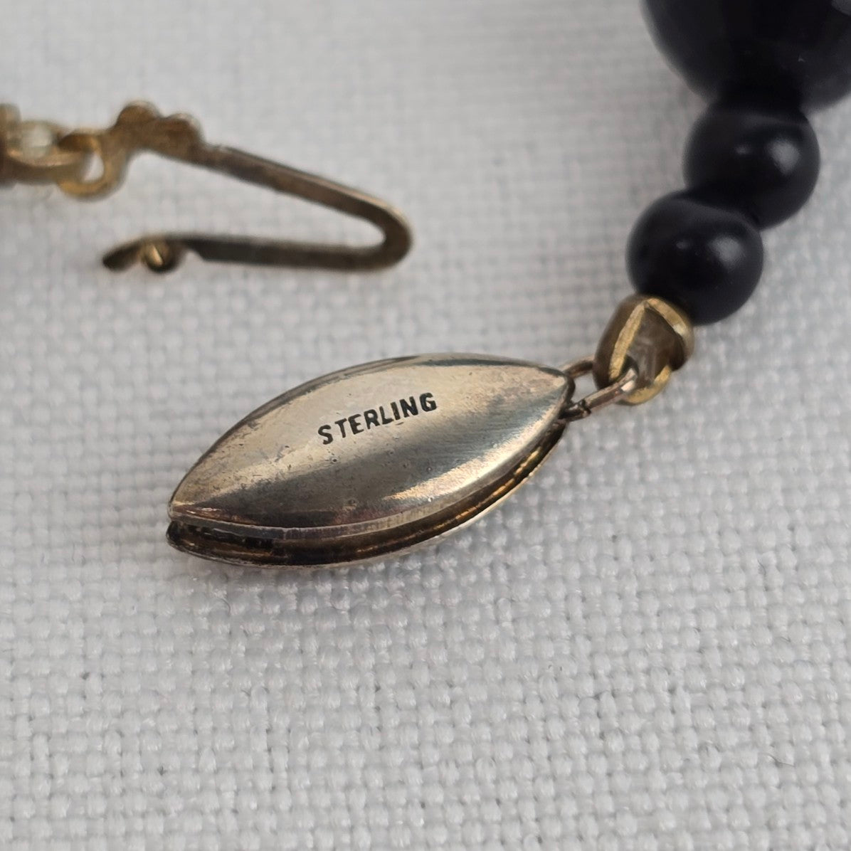 Vintage Gold & Black Beaded Choker Necklace Sterling Clasp