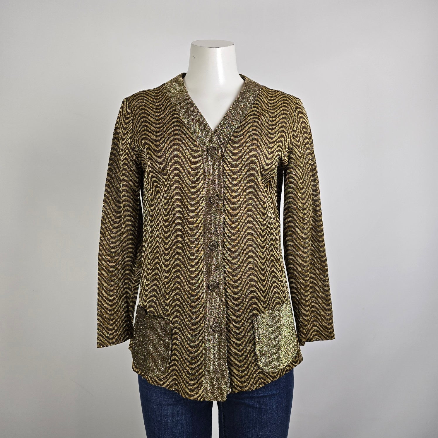 Vintage Gold & Brown Metallic Button Up Cardigan Size S