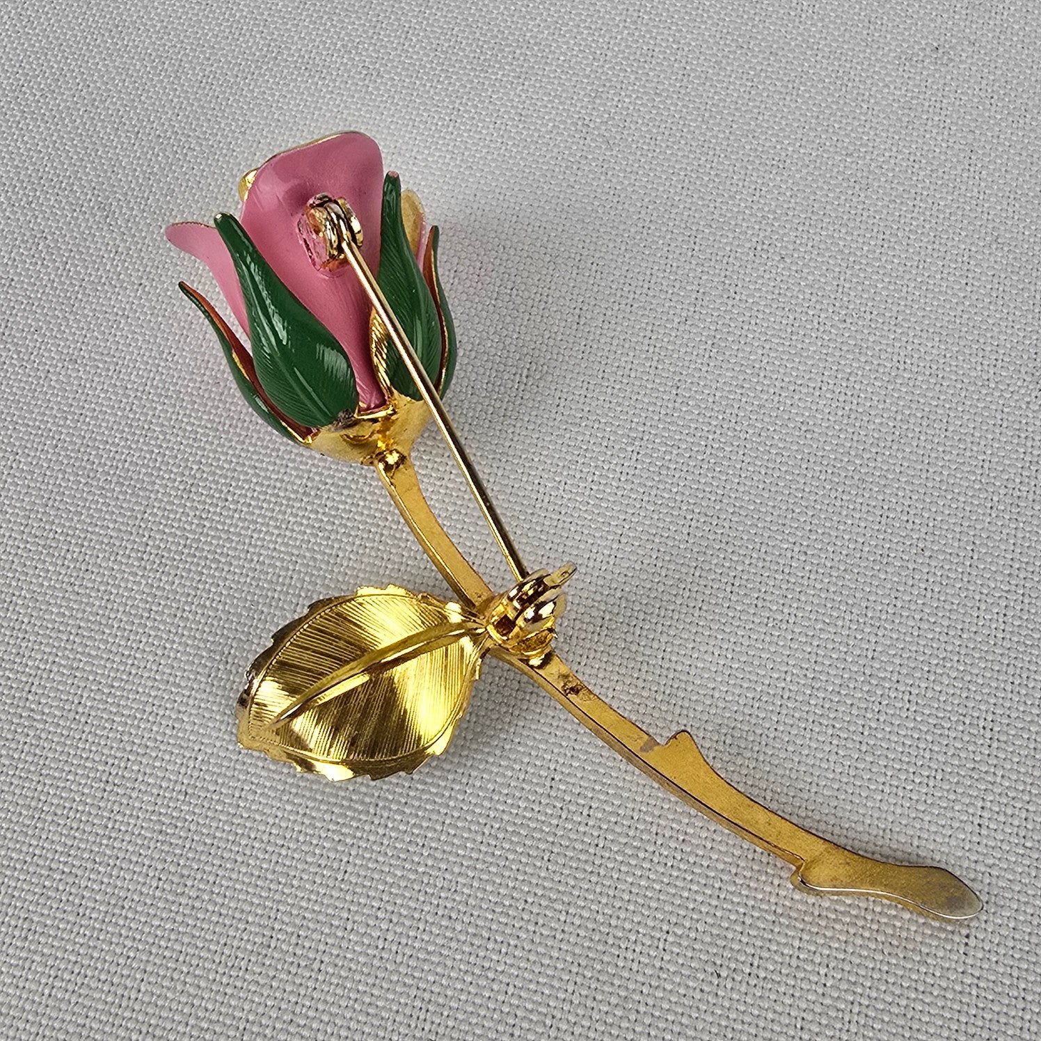 Vintage Gold & Pink Rose Brooch