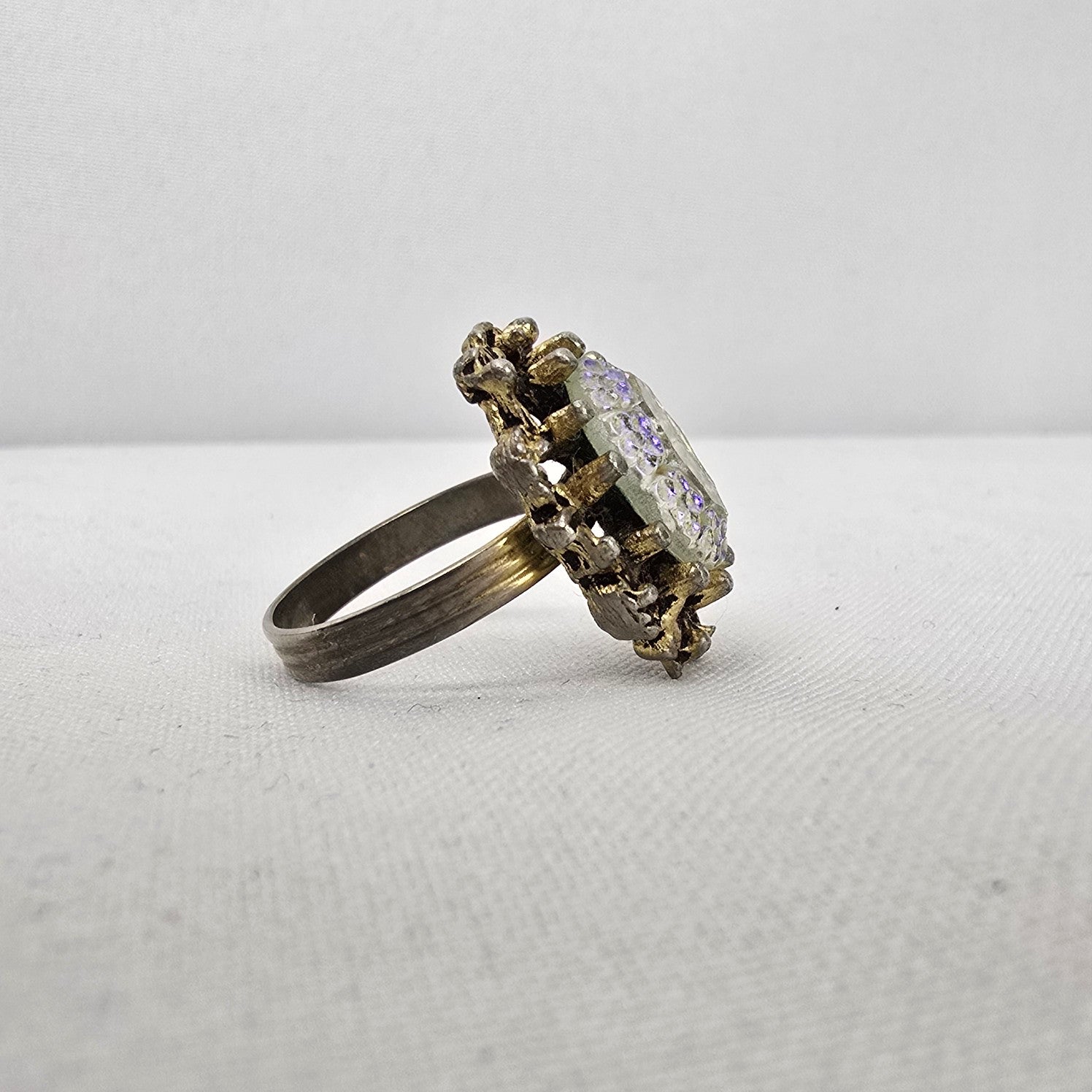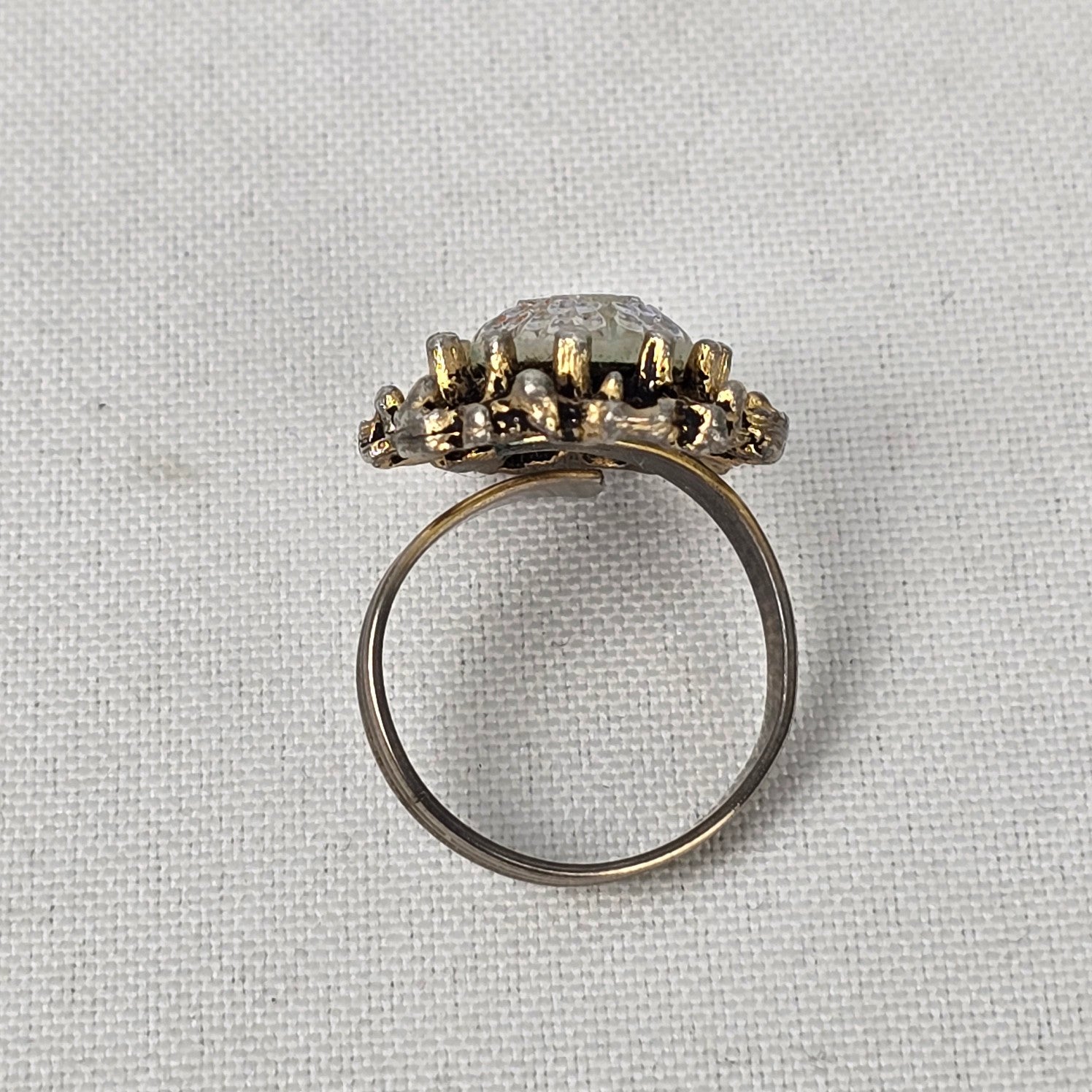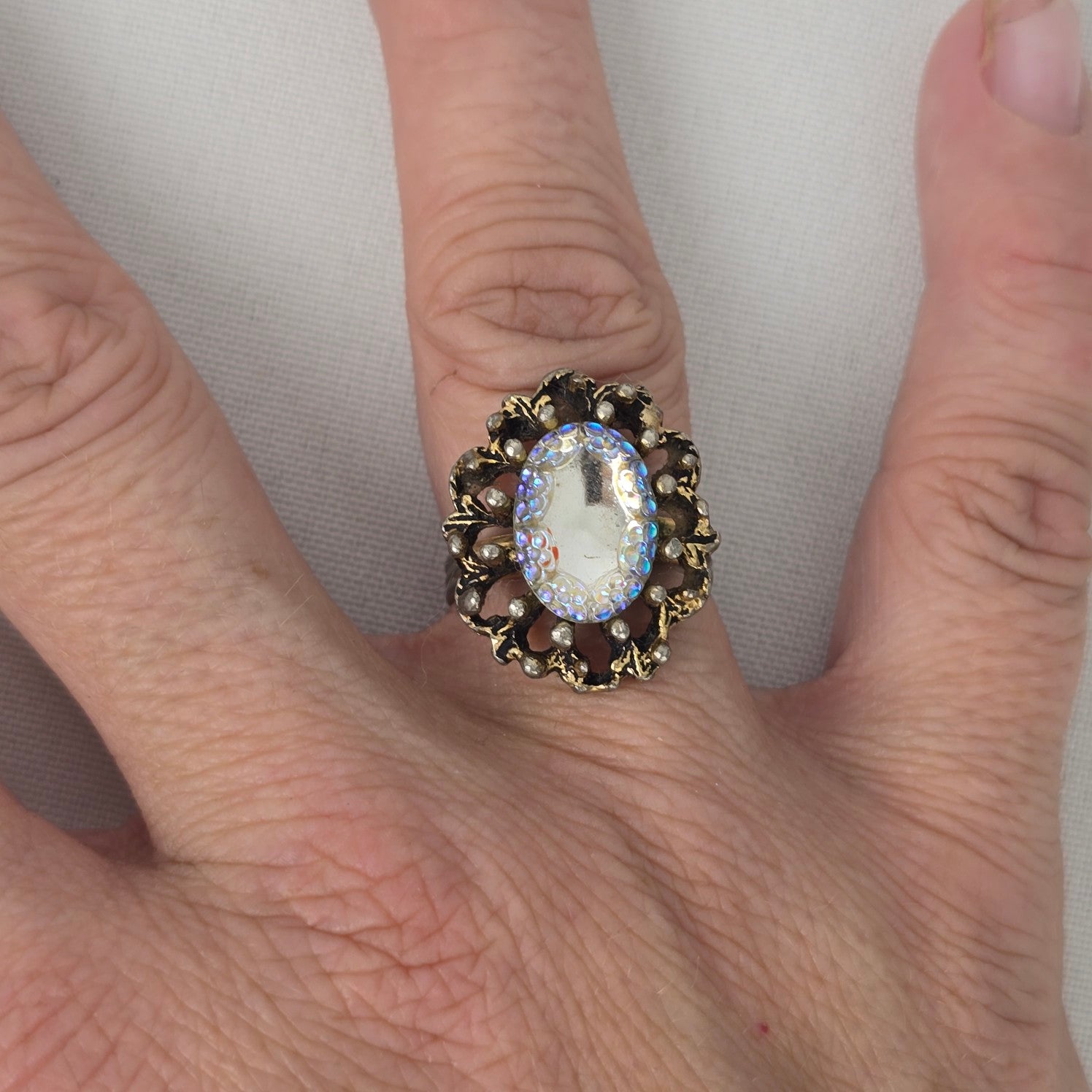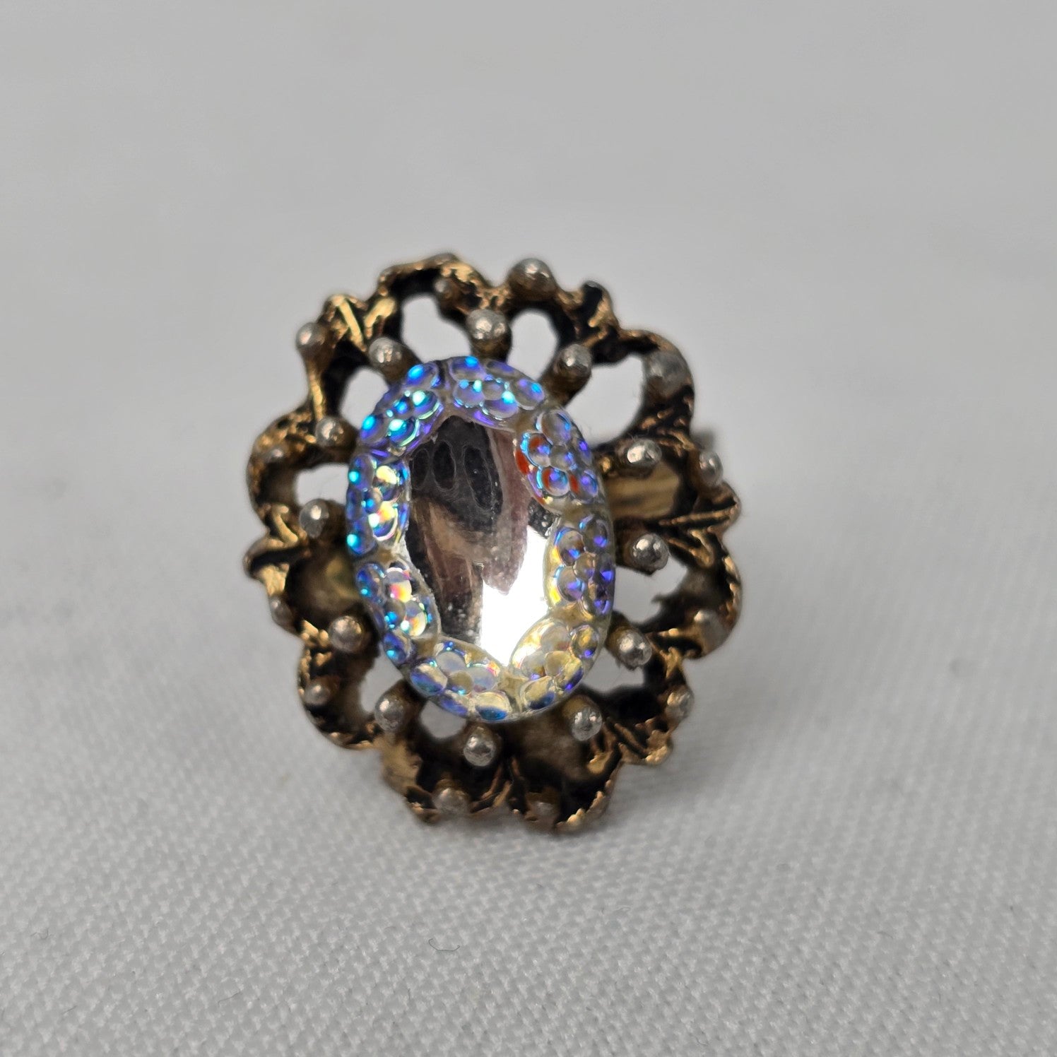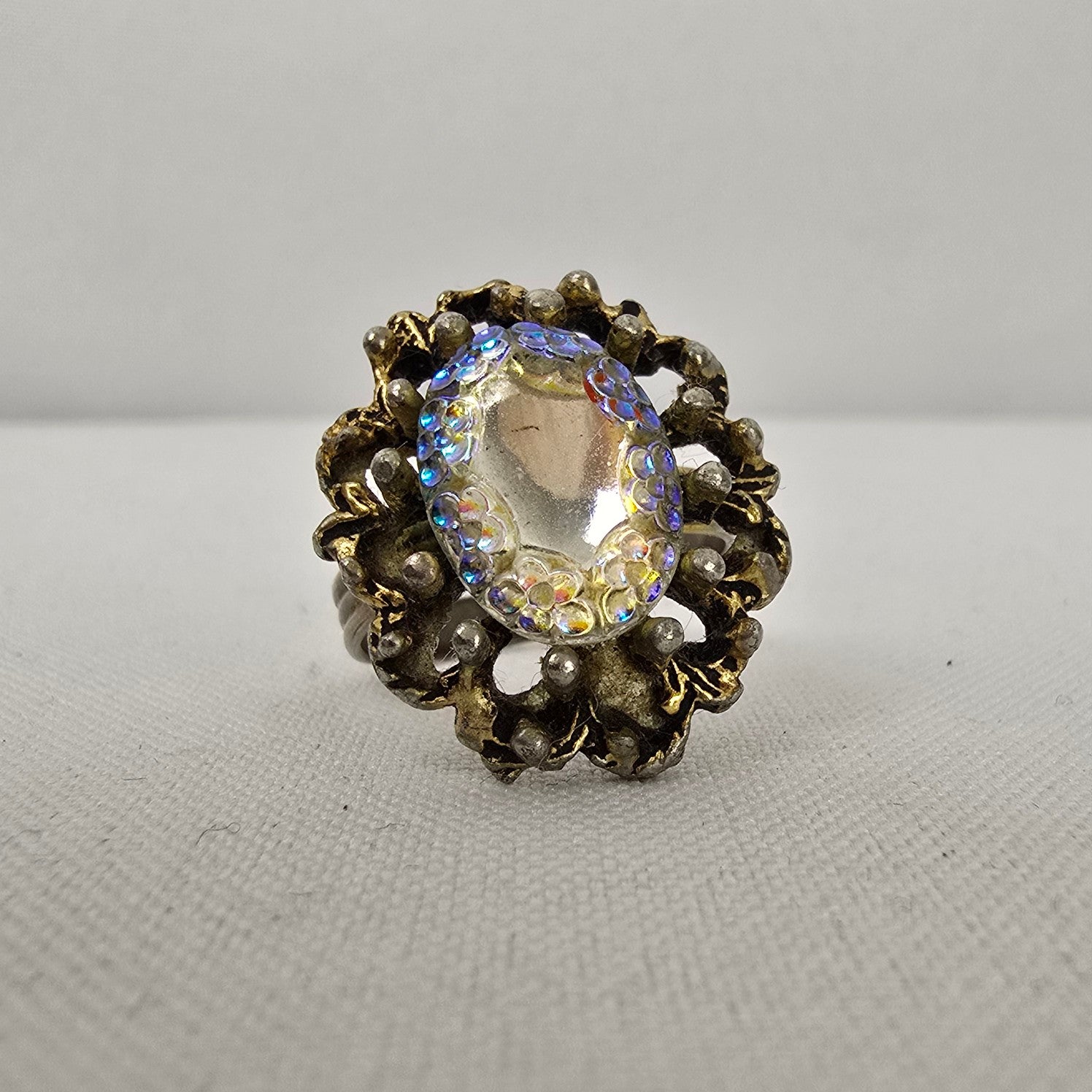 Vintage Gold Tone Aurora Borealis Statement Adjustable Ring
