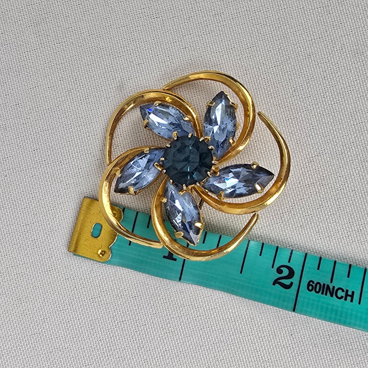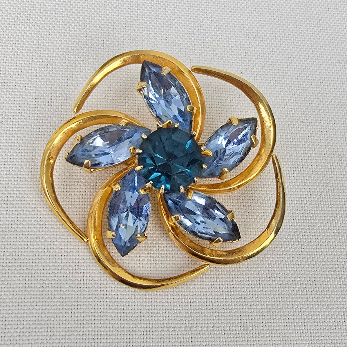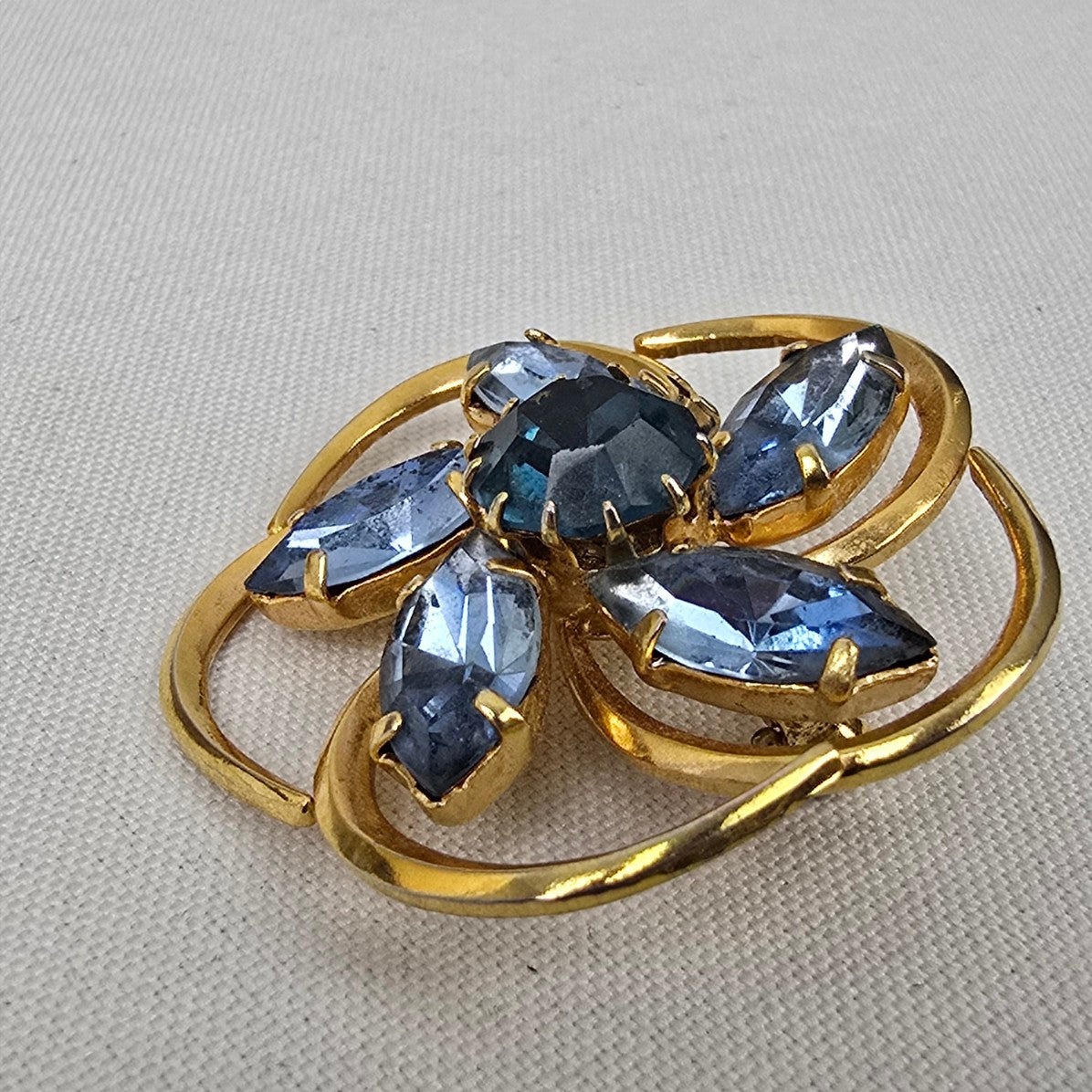 Vintage Gold Tone Blue Crystal Brooch