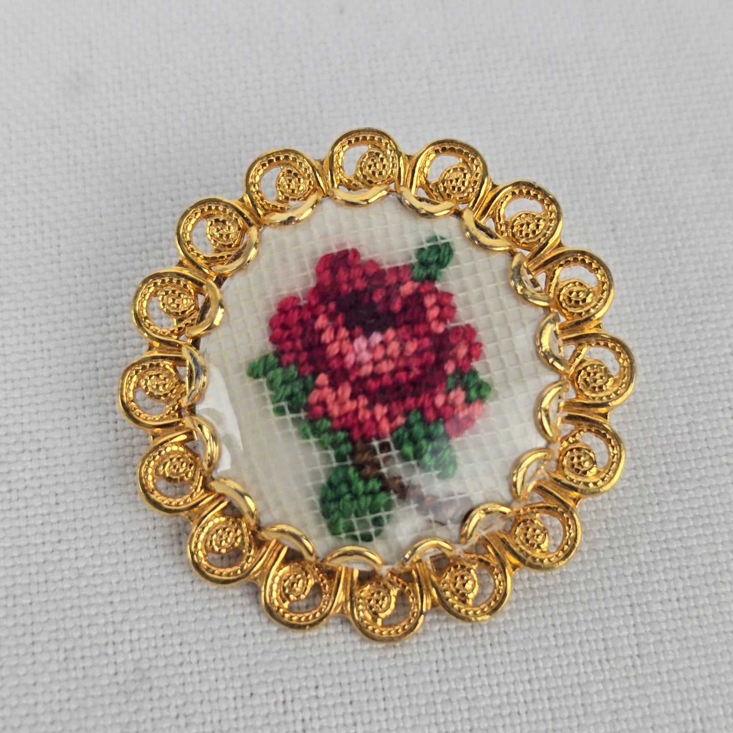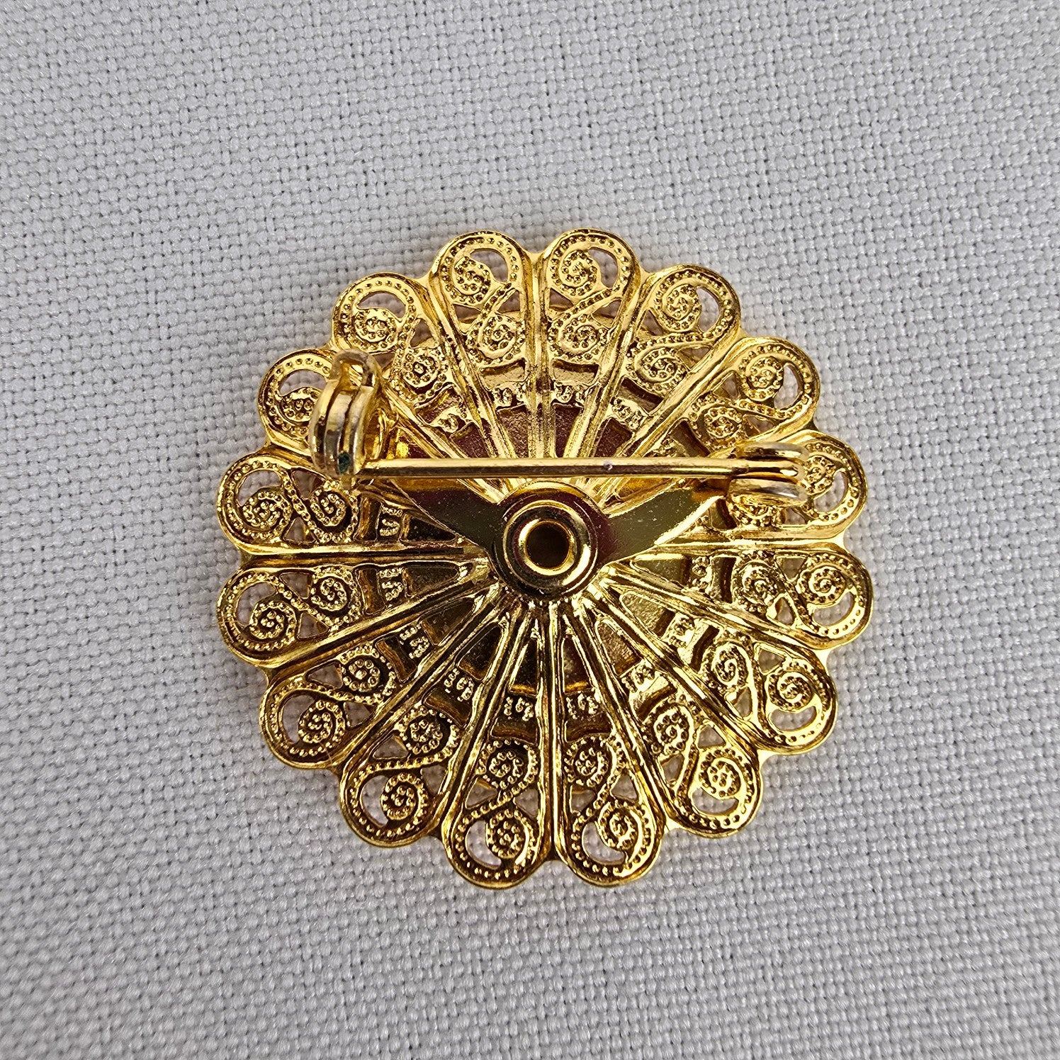 Vintage Gold Tone Floral Needle Point Brooch