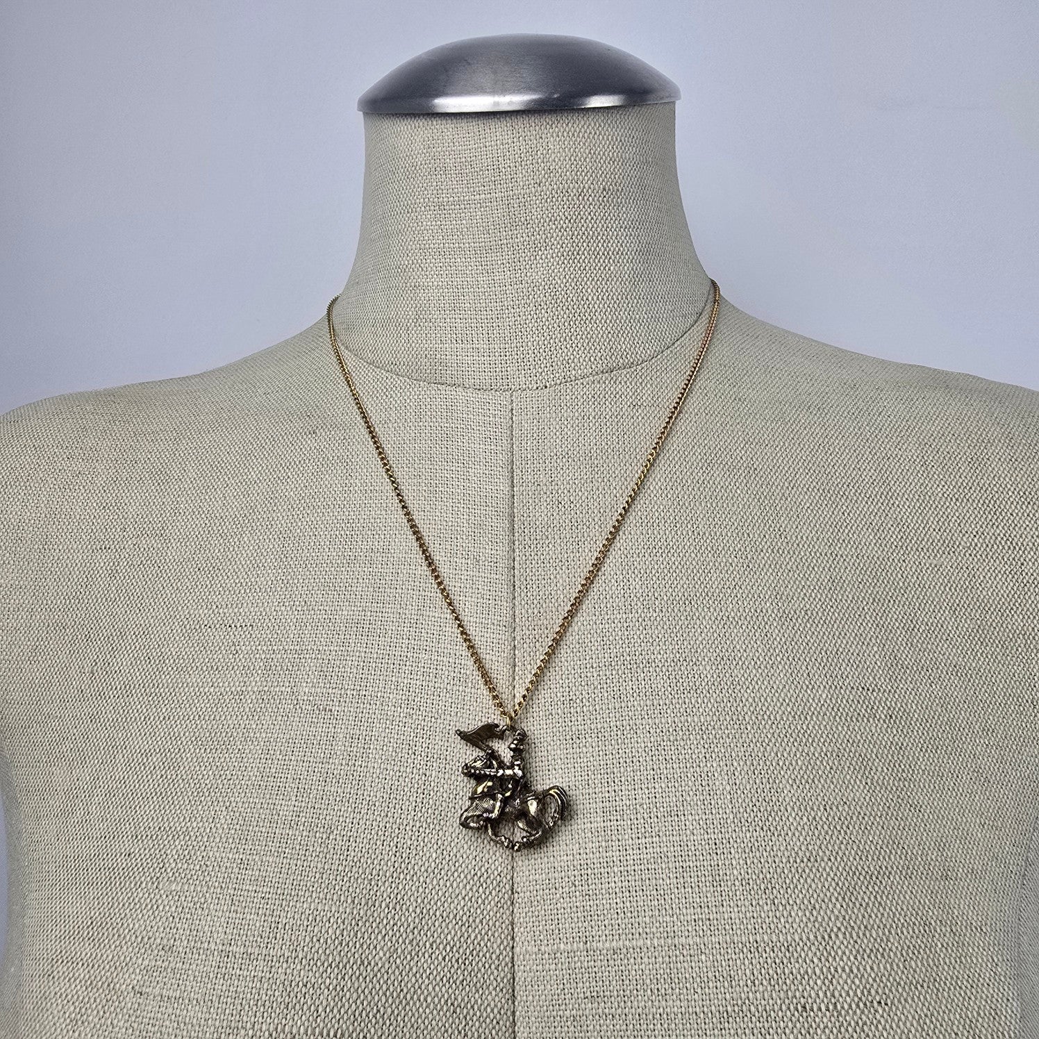 Vintage Gold Tone Knight on Horse Pendant Necklace