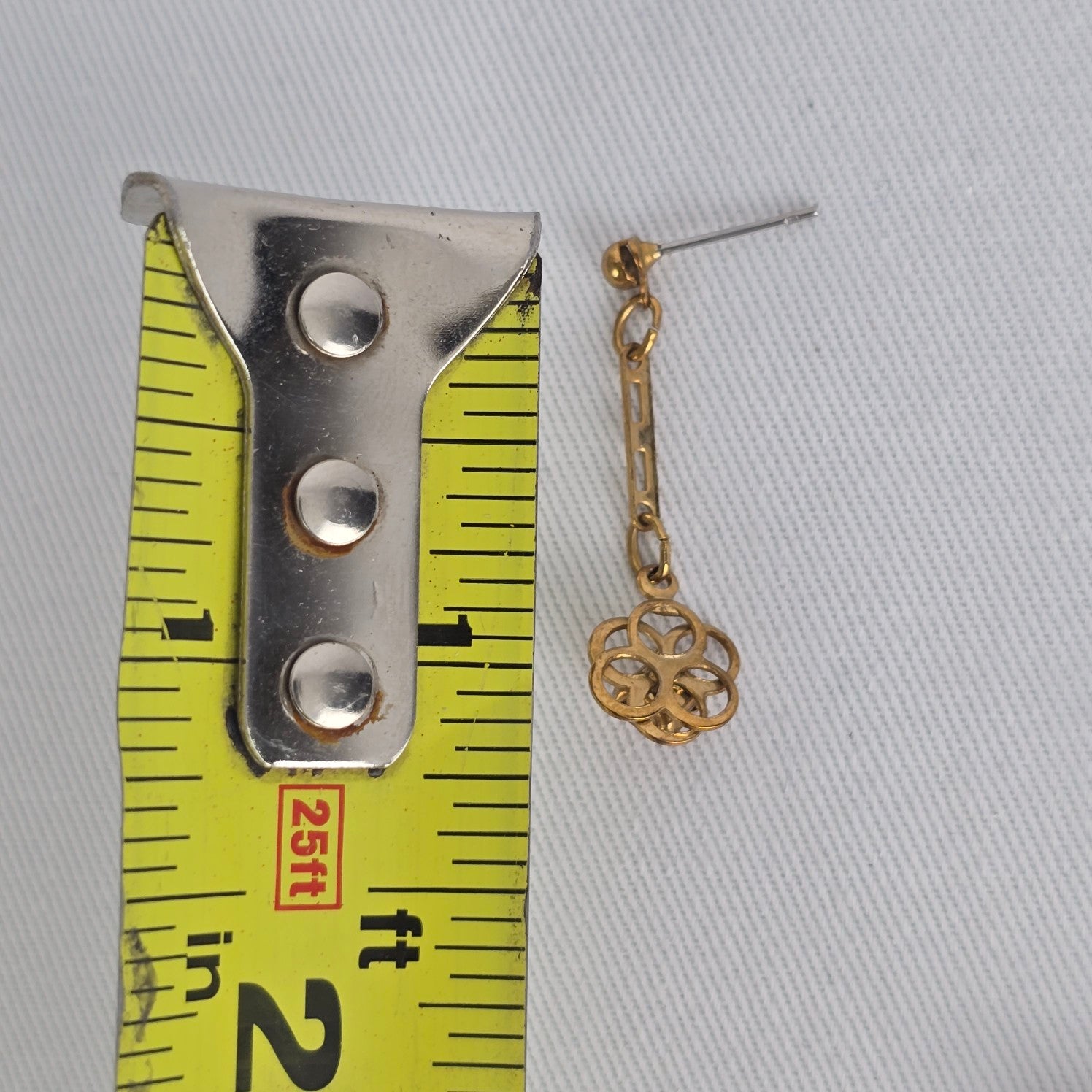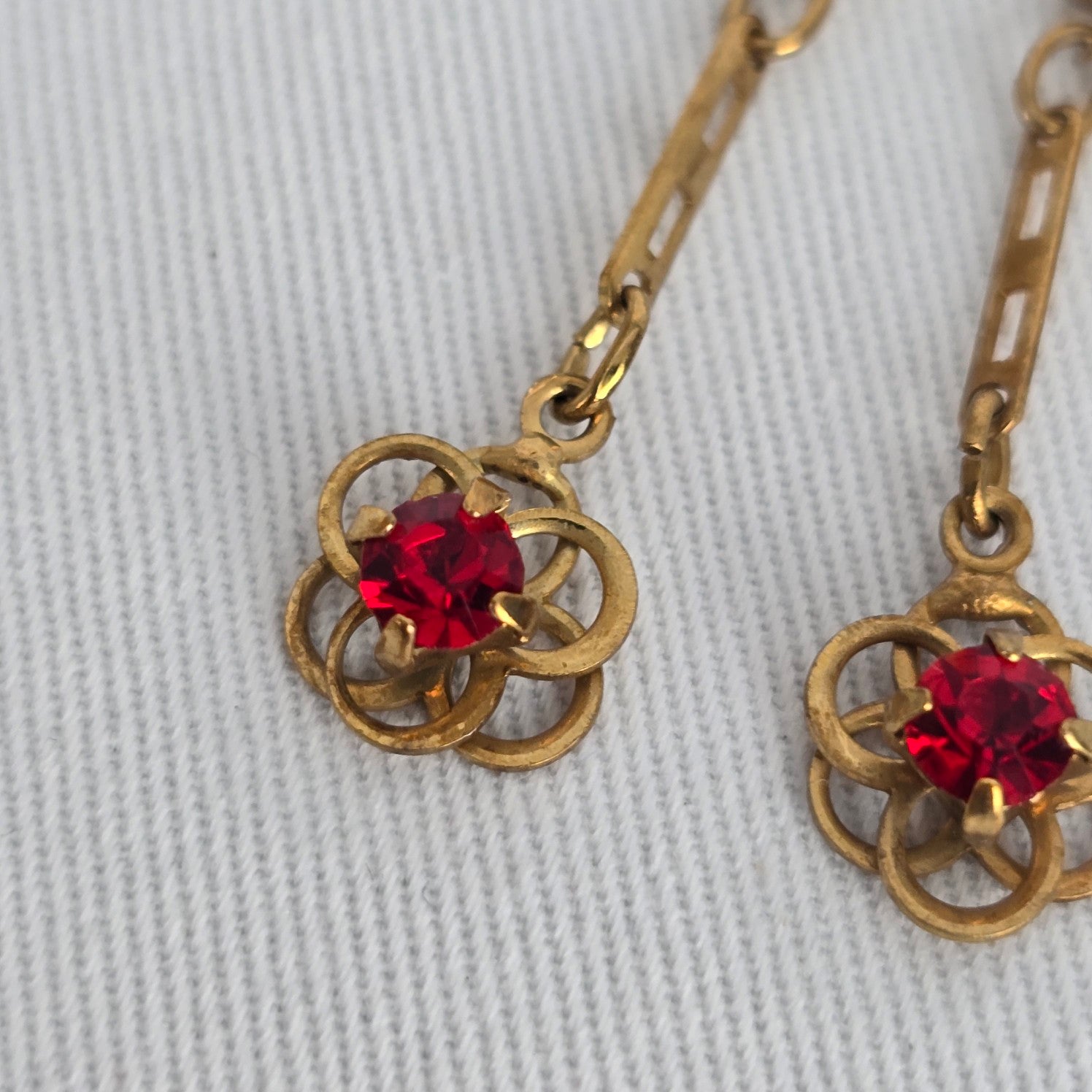 Vintage Gold Tone Red Crystal Flower Drop Earrings