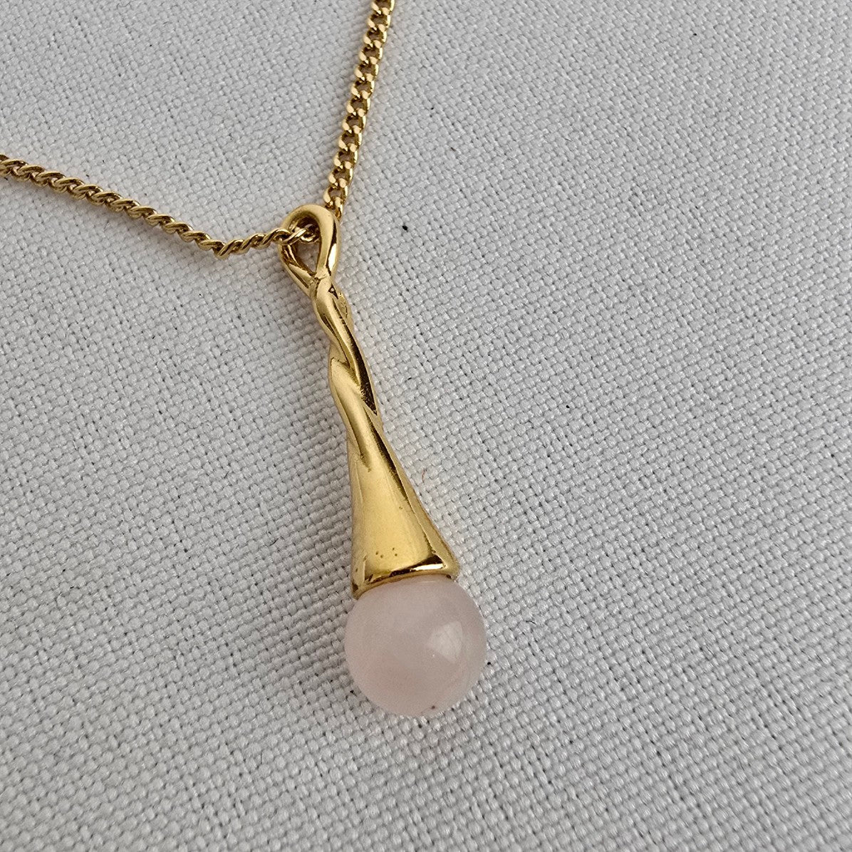 Vintage Gold Tone Rose Quartz Drop Pendant Necklace & Earrings Set