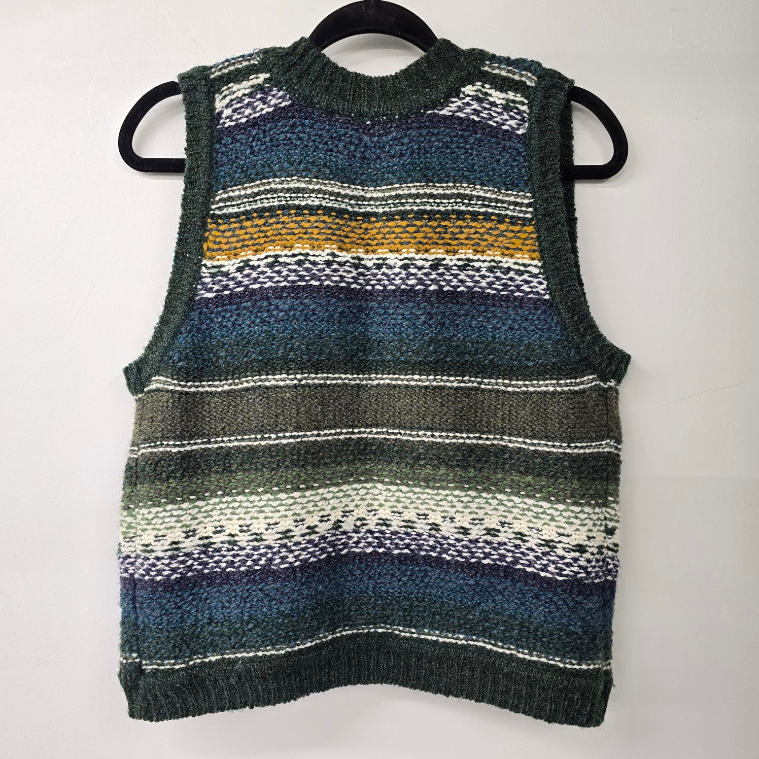 Vintage Handmade Blue Striped Knit Button Up Vest Size S/M