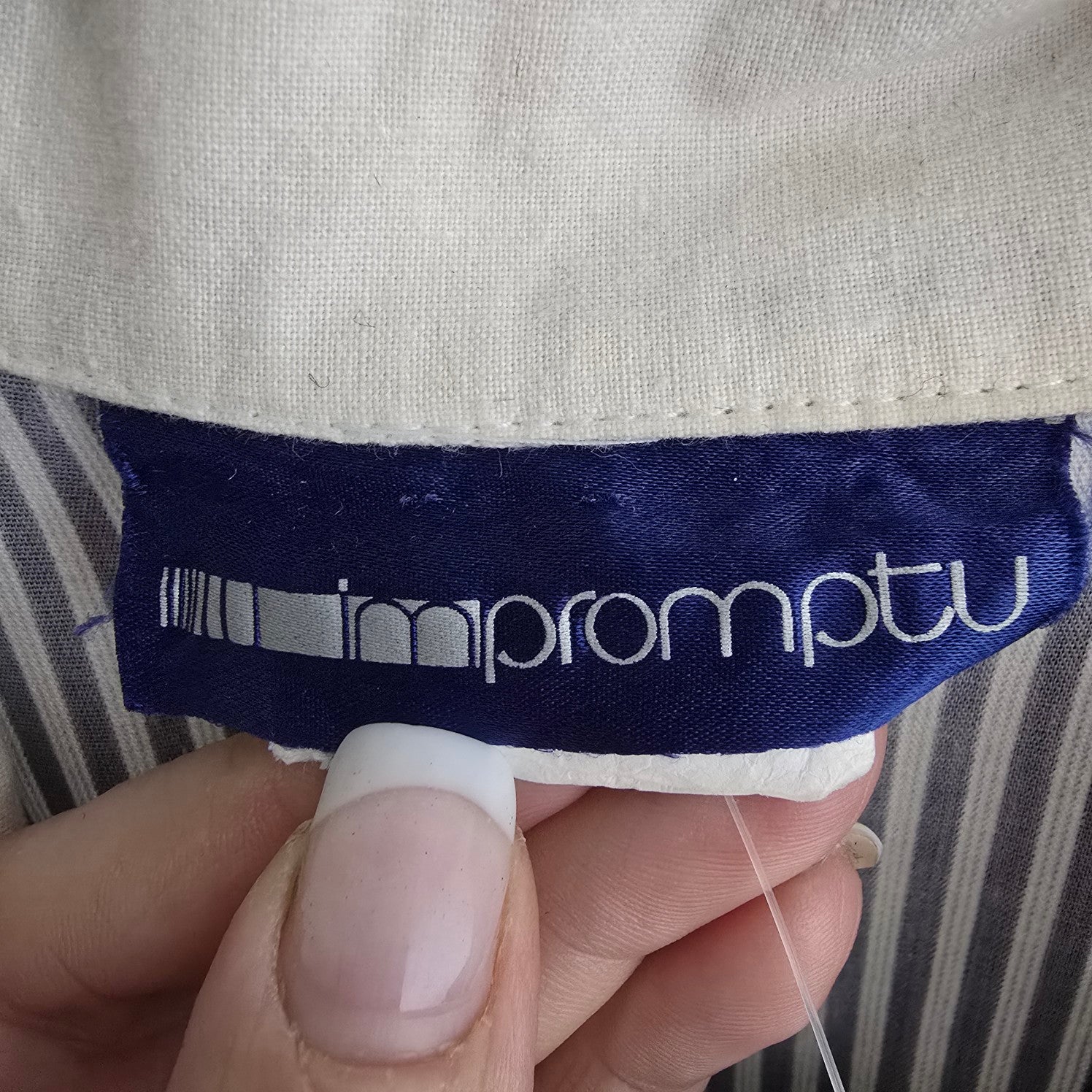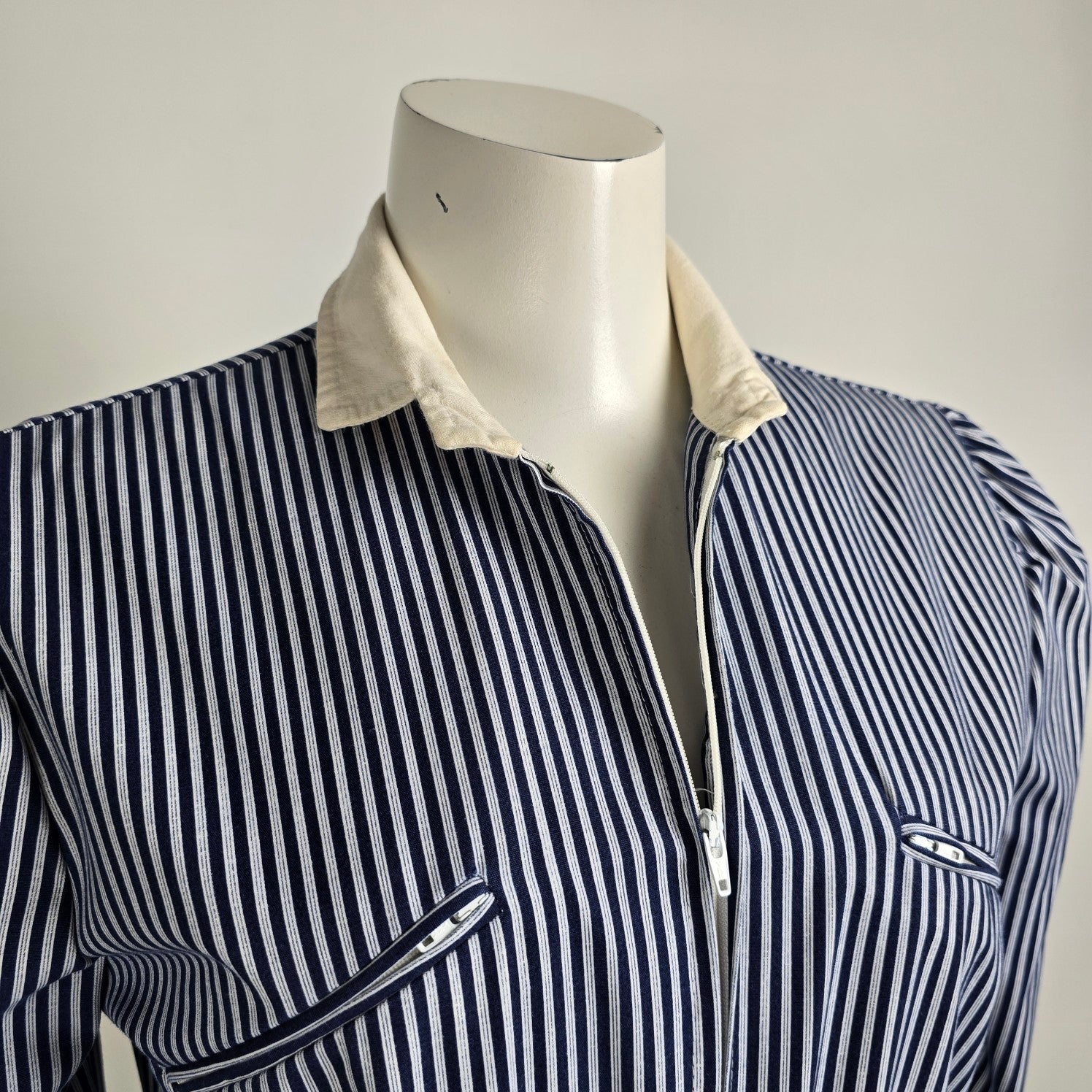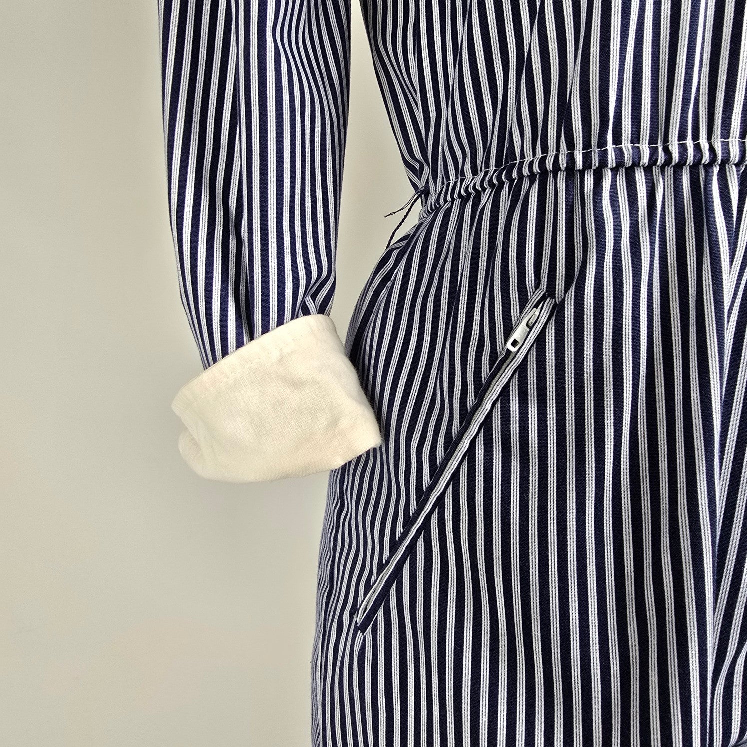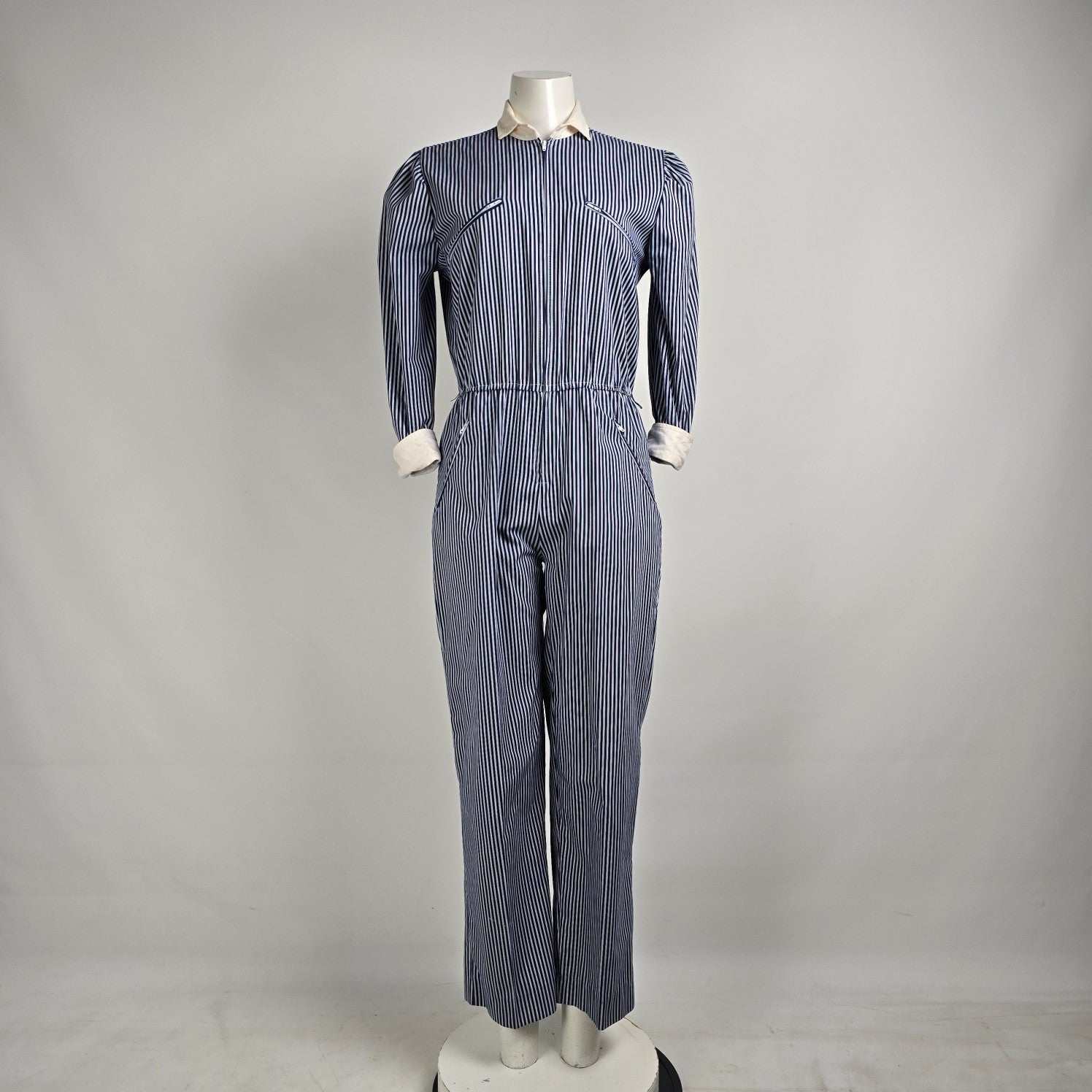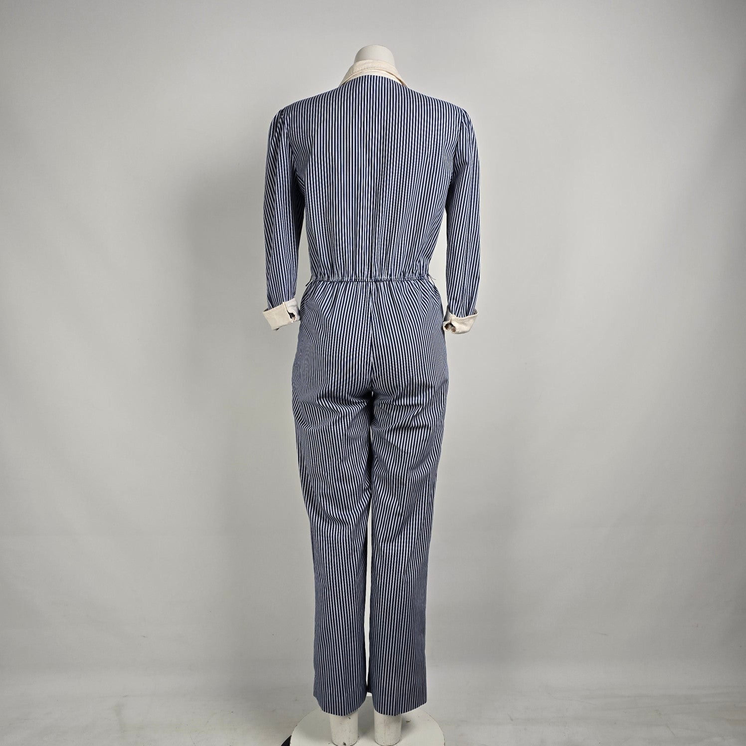 Vintage Impromptu Grey Stripped Puff Sleeve Jumpsuit Size S/M
