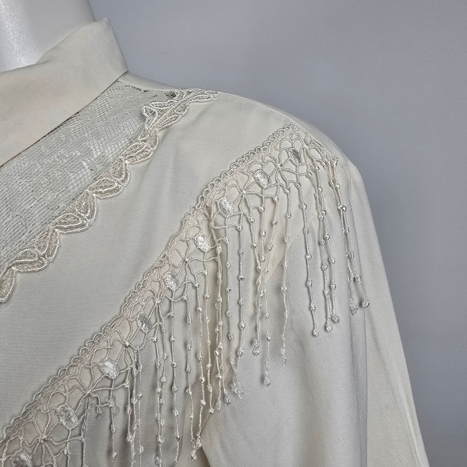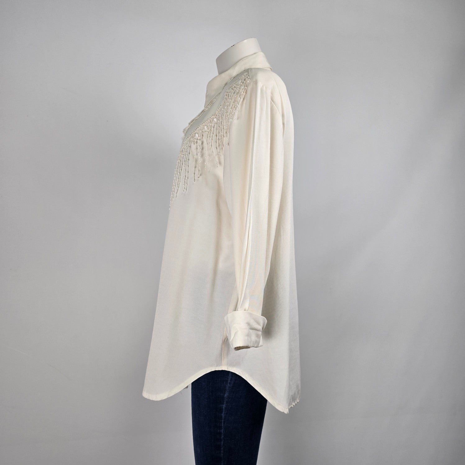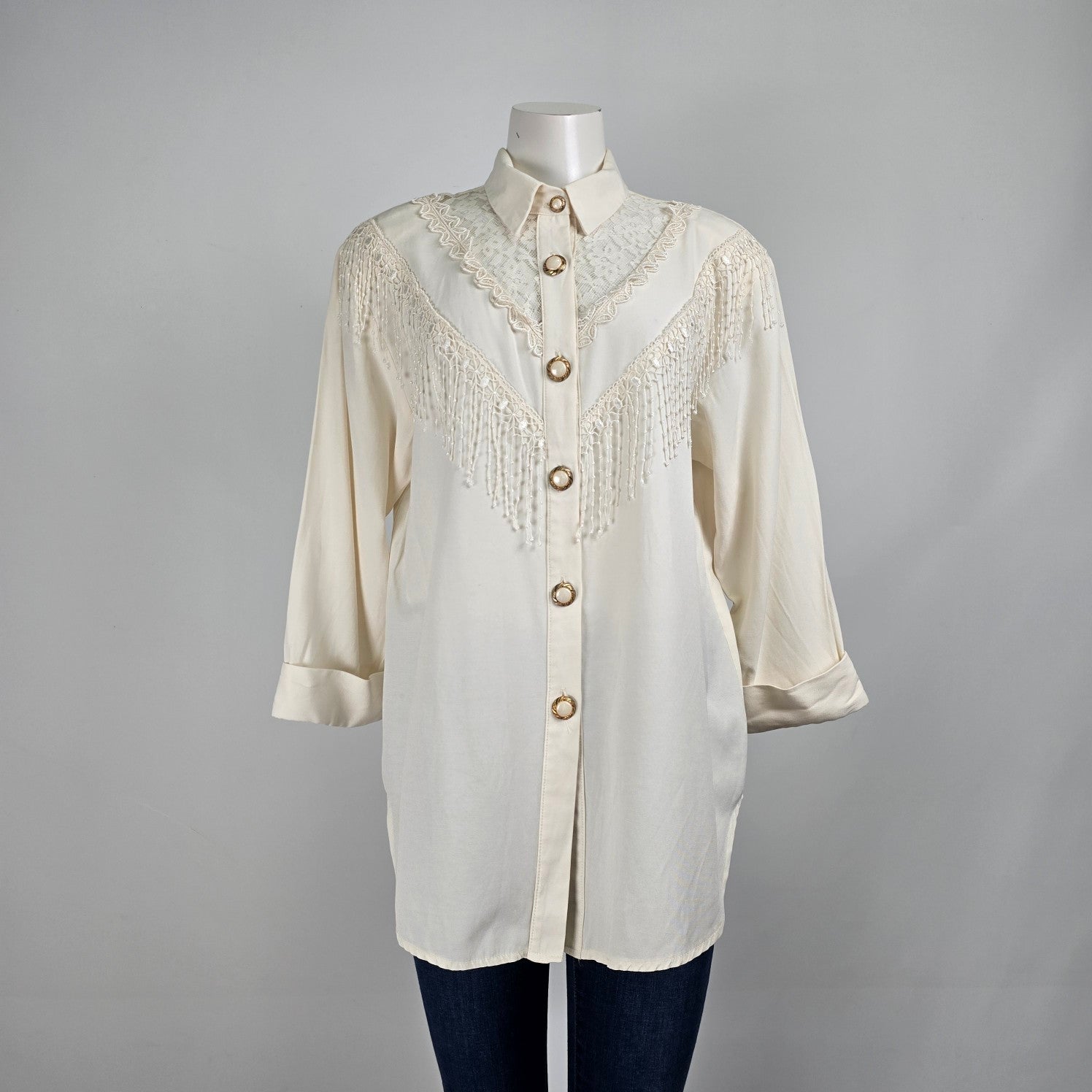 Vintage Jessica White Tassel Western Button Up Blouse Size 14
