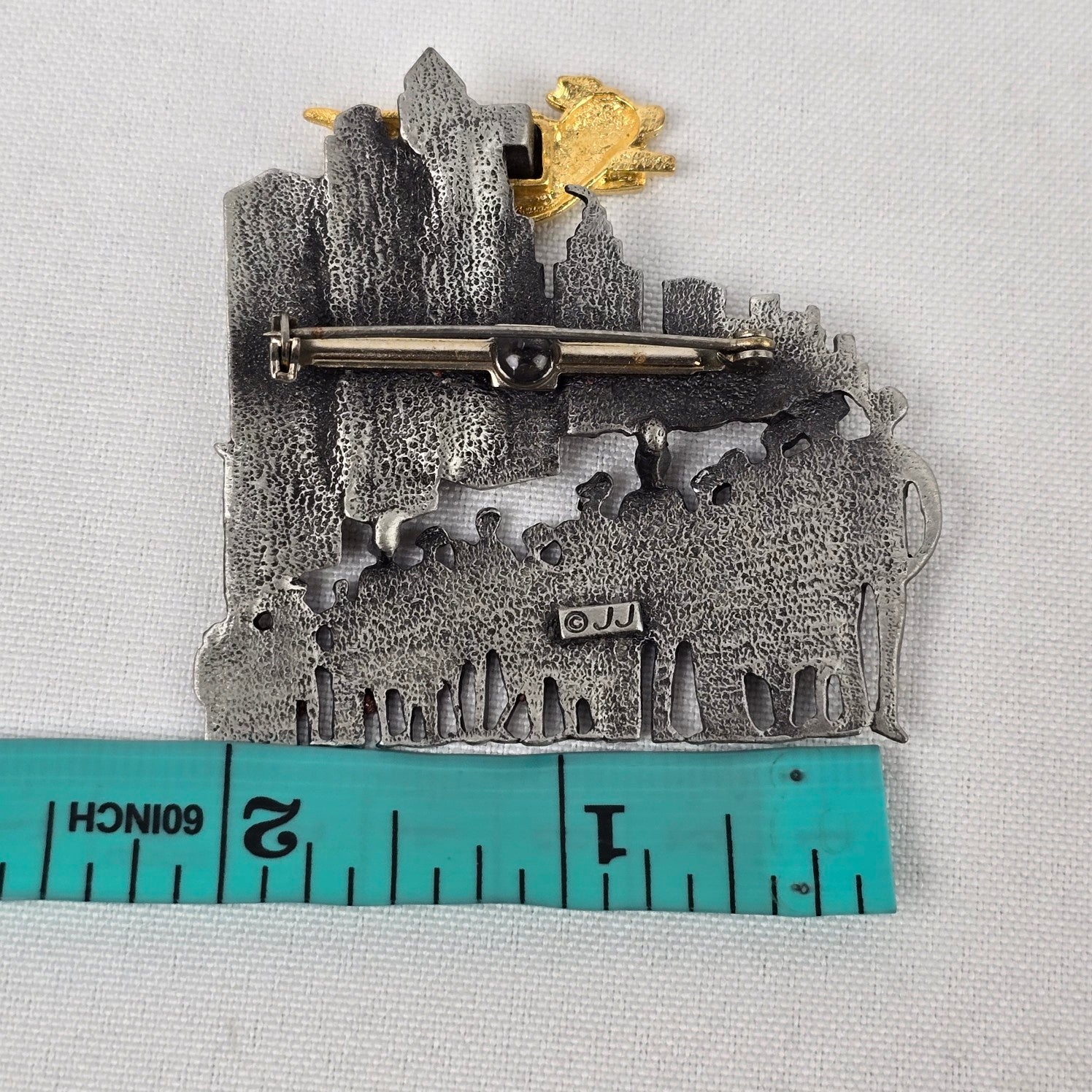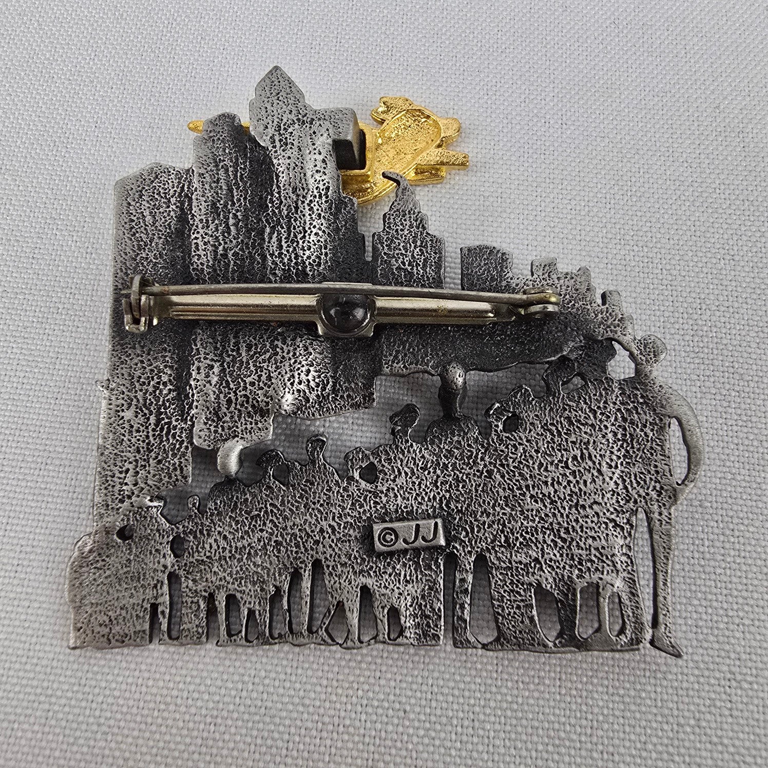 Vintage JJ When Pigs Fly Brooch Pig Flying Over Cityscape Brooch