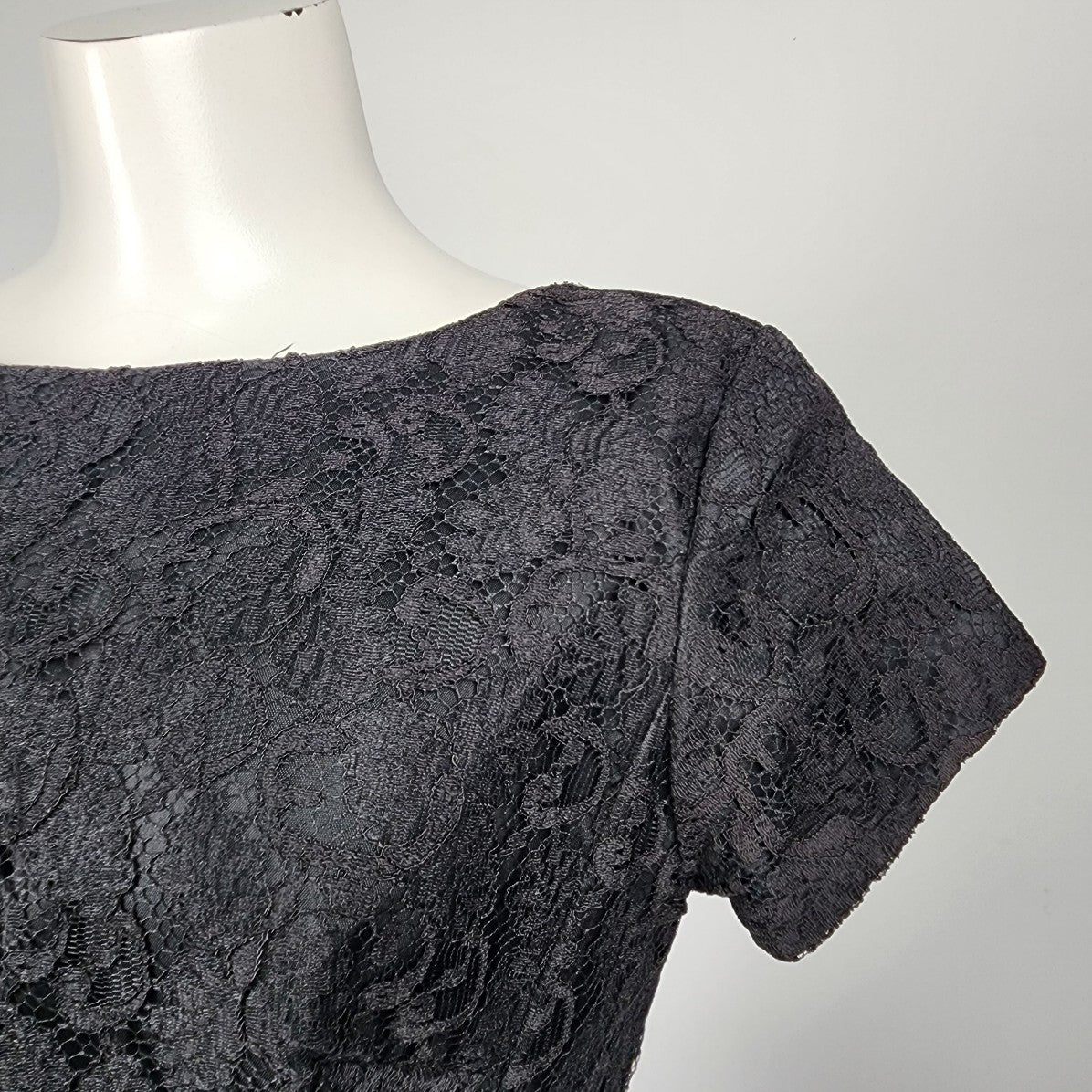 Vintage Laurence Dress Black Lace Sheath Belted Dress Size S