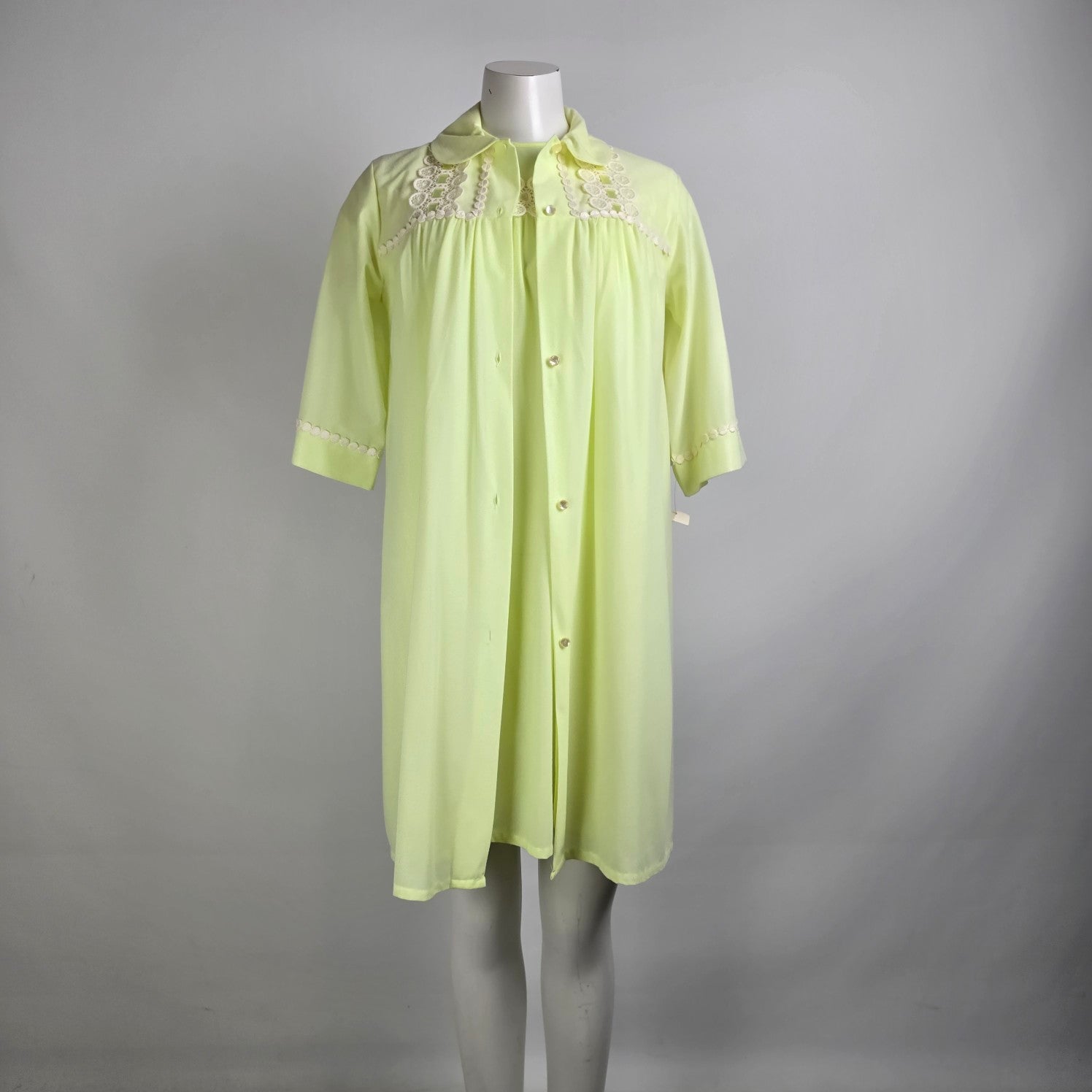 Vintage Louis Jean Yellow Night Gown & House Coat Set Size M
