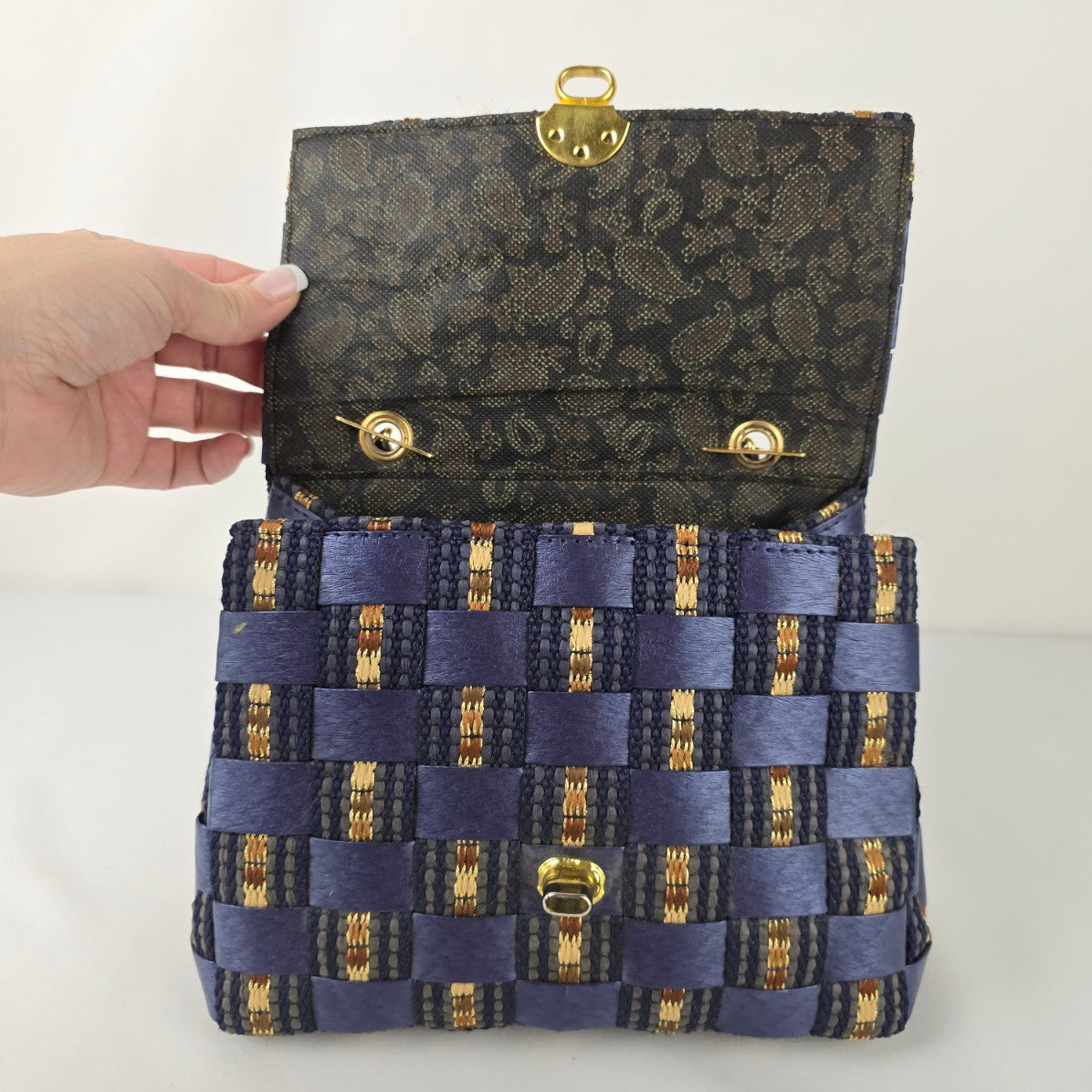 Vintage Made In Italy Blue Basket Weave Shoulder Purse