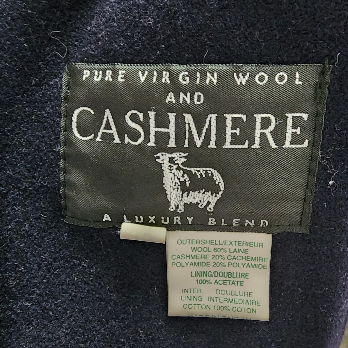 Vintage Martoni Navy Blue Wool & Cashmere Pea Coat Size M/L