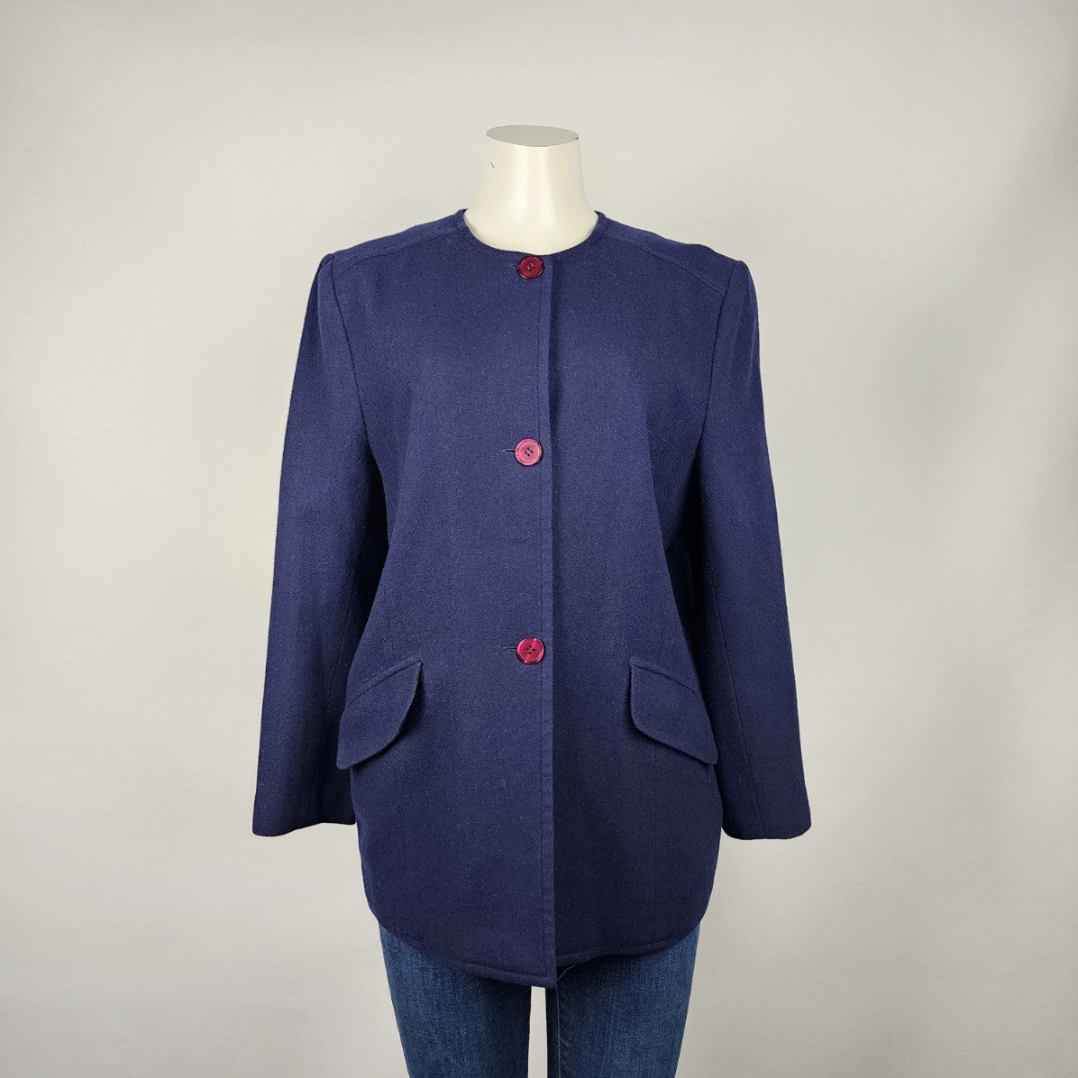 Vintage Mary Francis Navy Wool Button Up Jacket Blazer Size 6