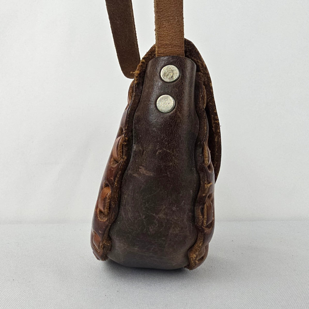 Vintage Mexico Brown Leather Floral Western Small Shoulder Purse