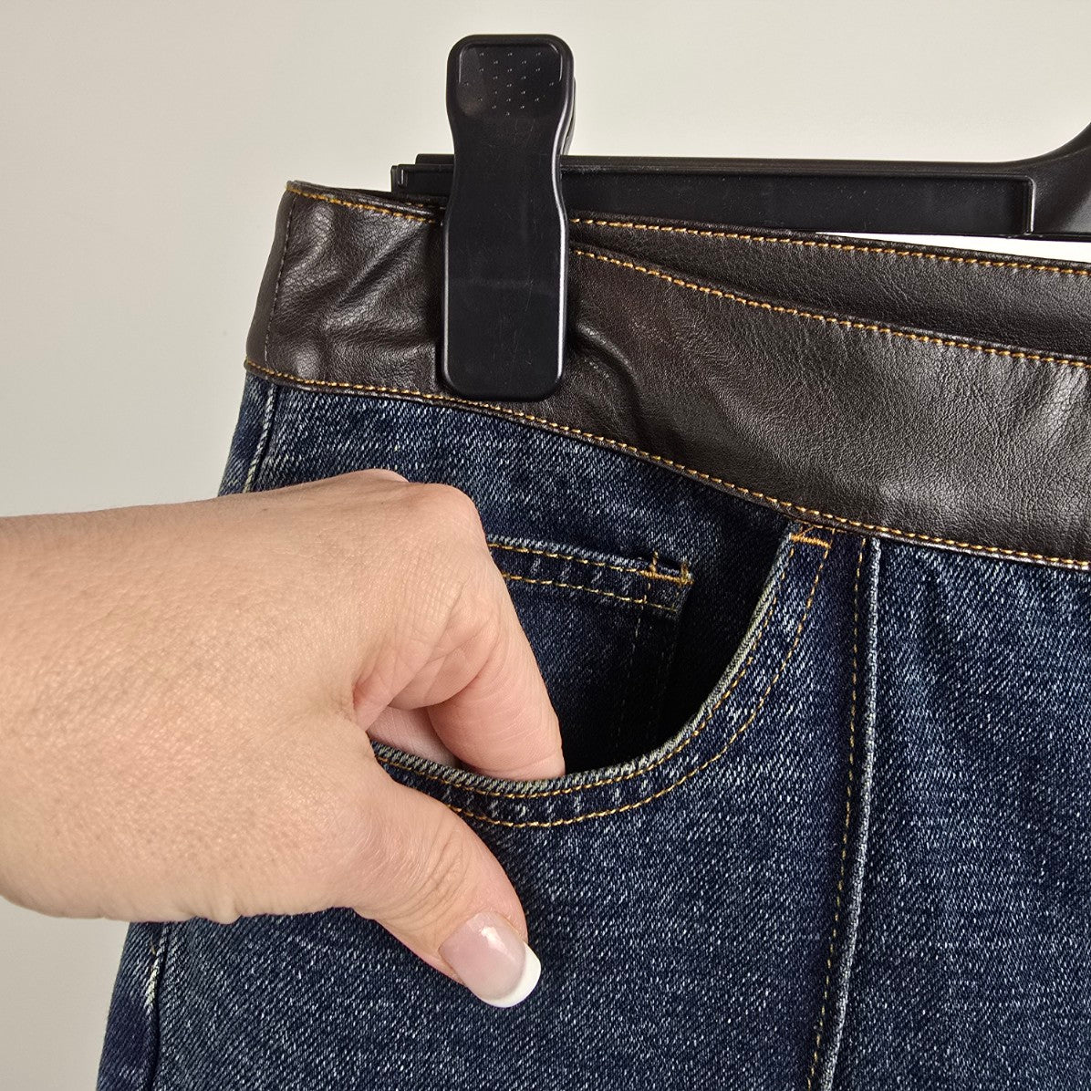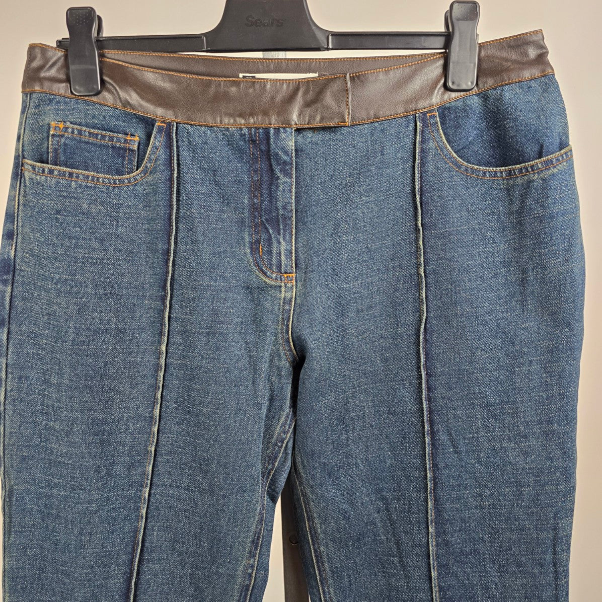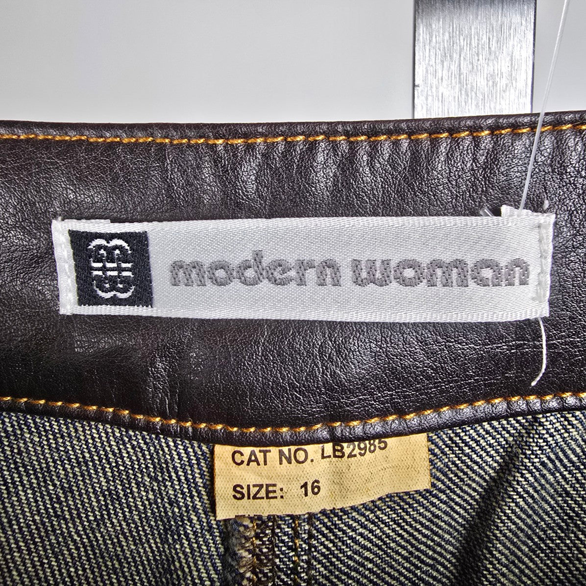 Vintage Modern Woman Wide Leg Vegan Leather Trim Denim Jeans Size 16