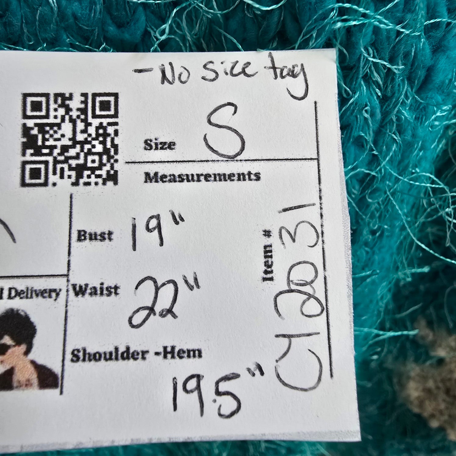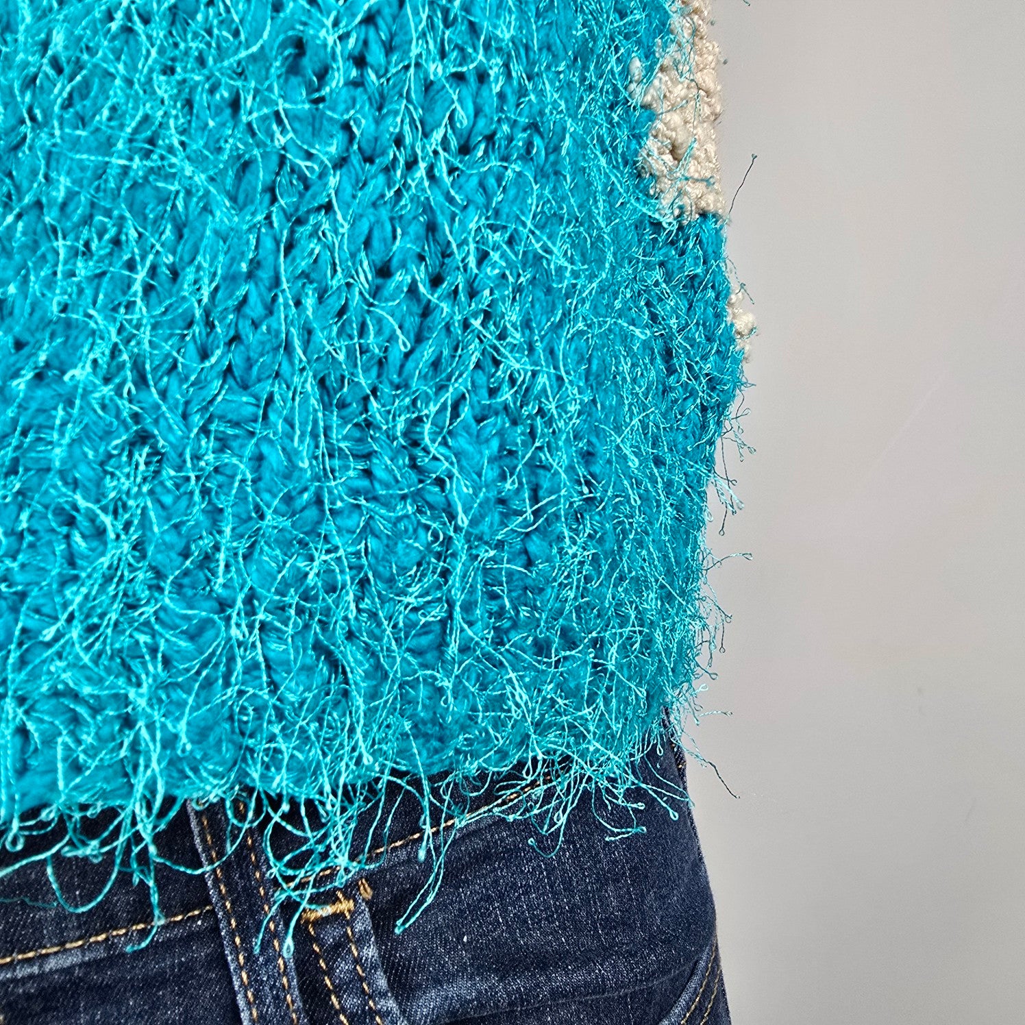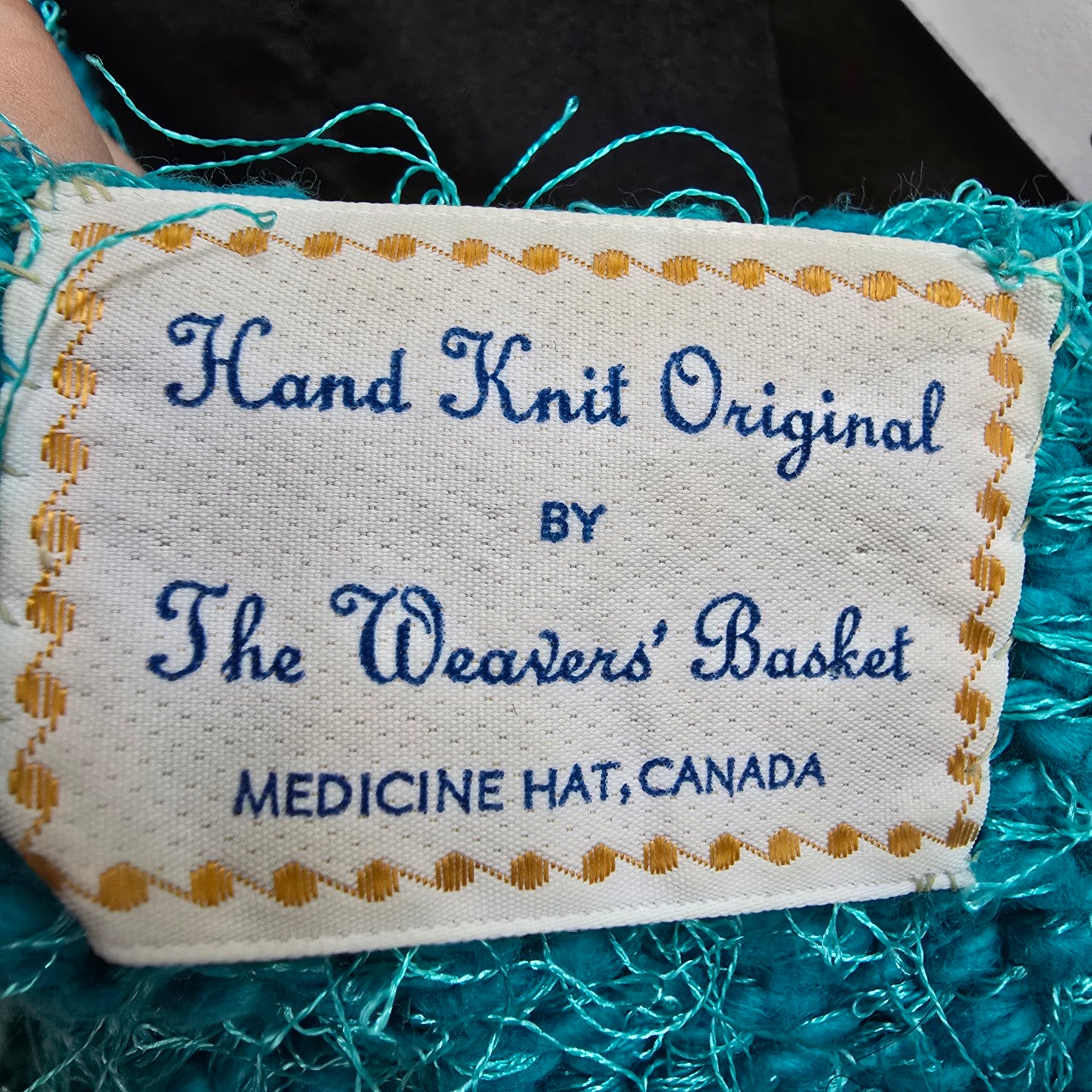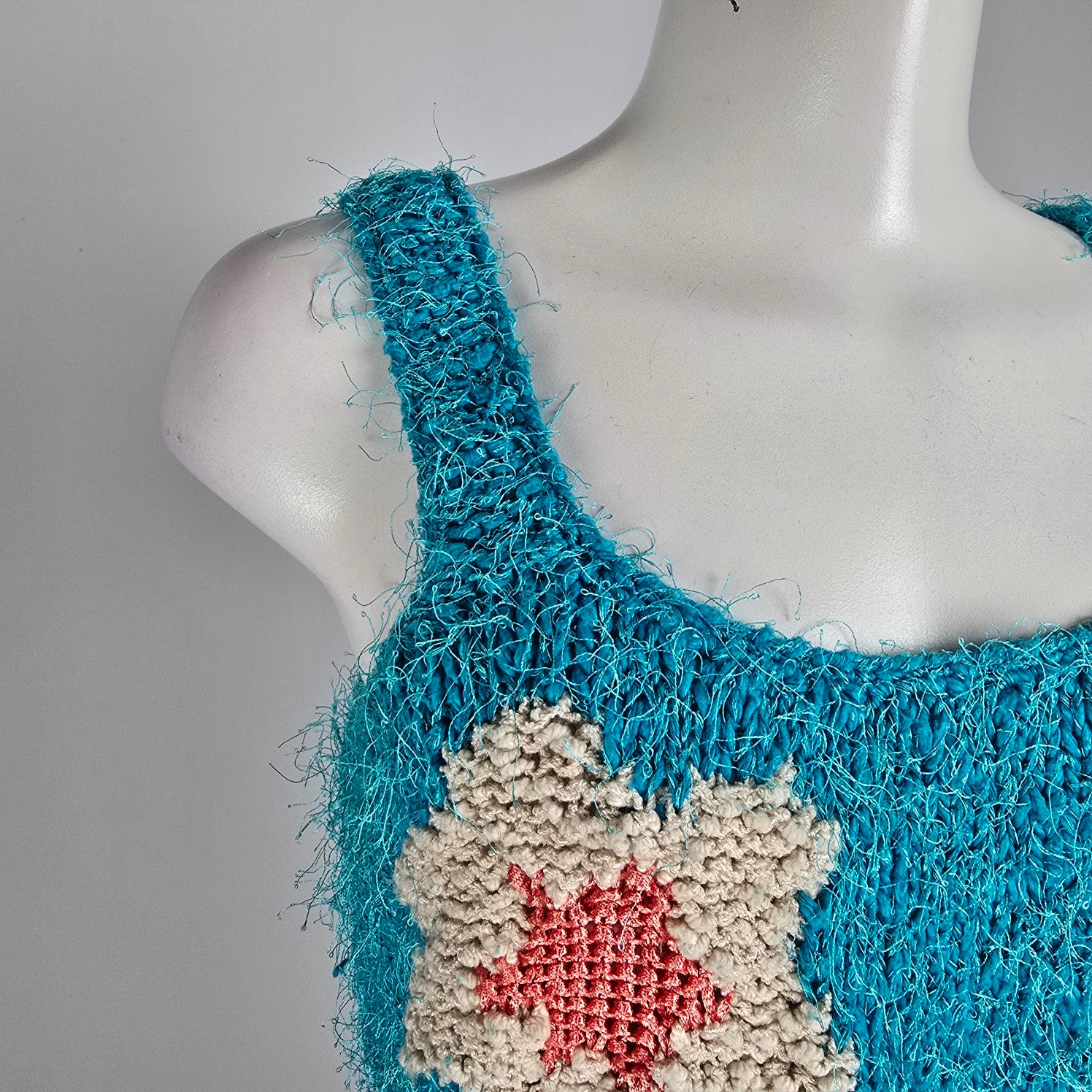 Vintage Mona's Handknit Teal Flower Knit Tank Top Size S