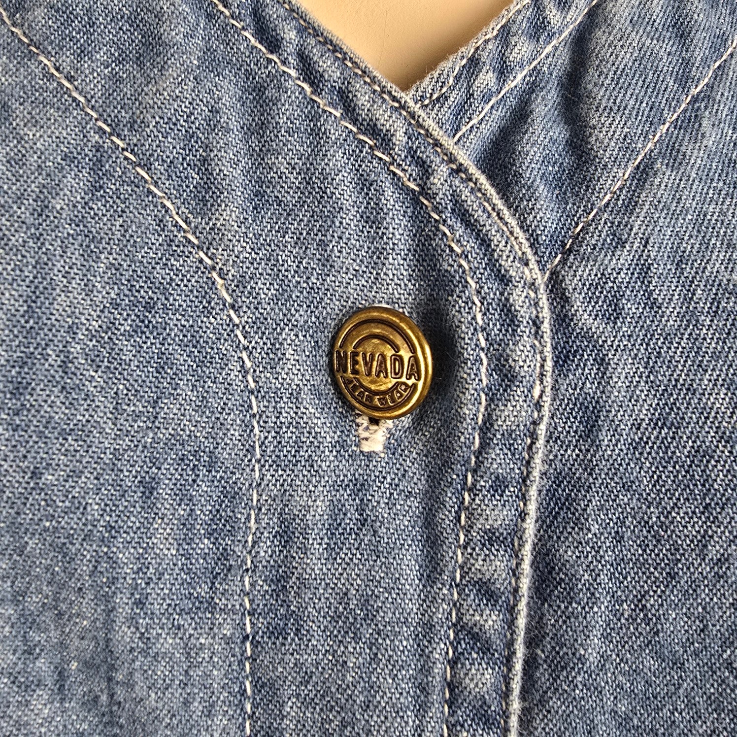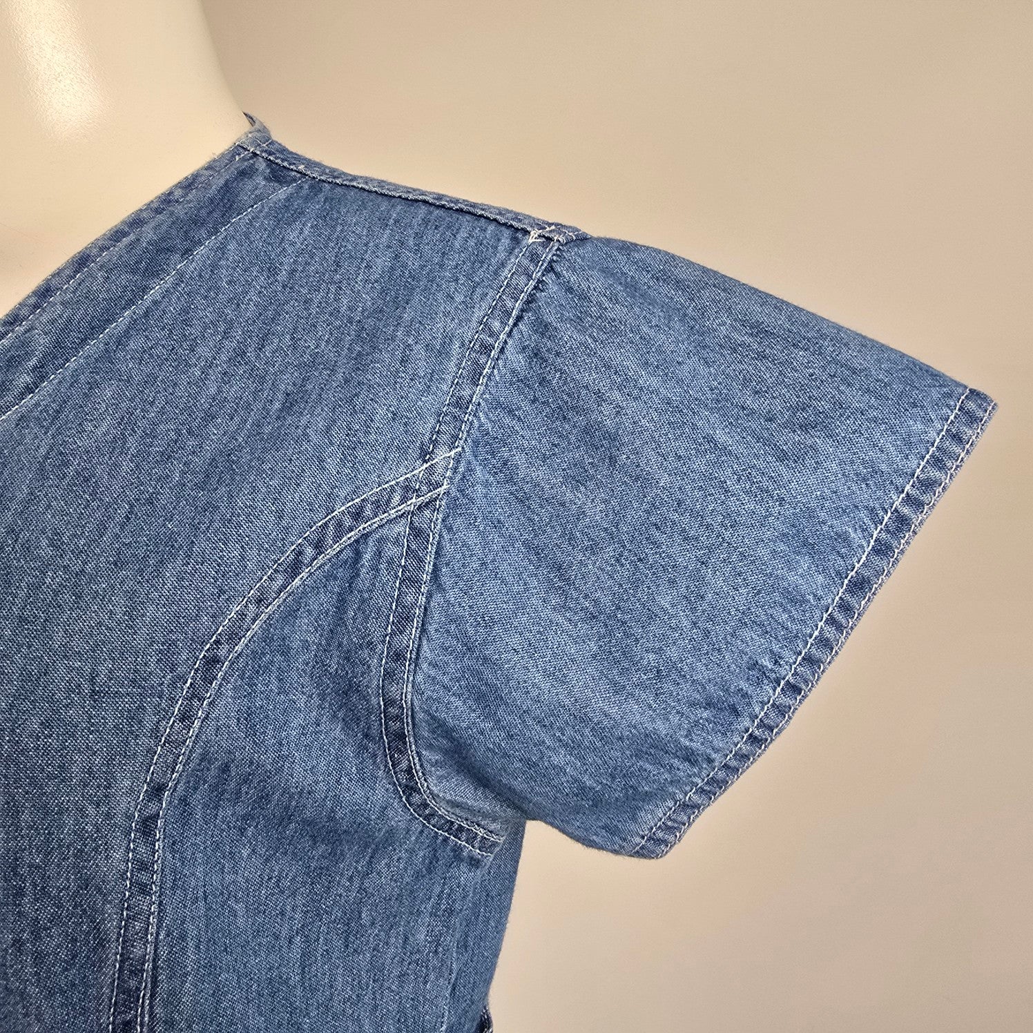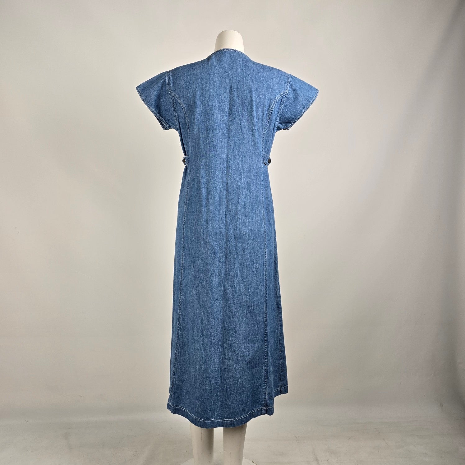 Vintage Nevada Blue Cotton Button Up Midi Denim Dress Size 10