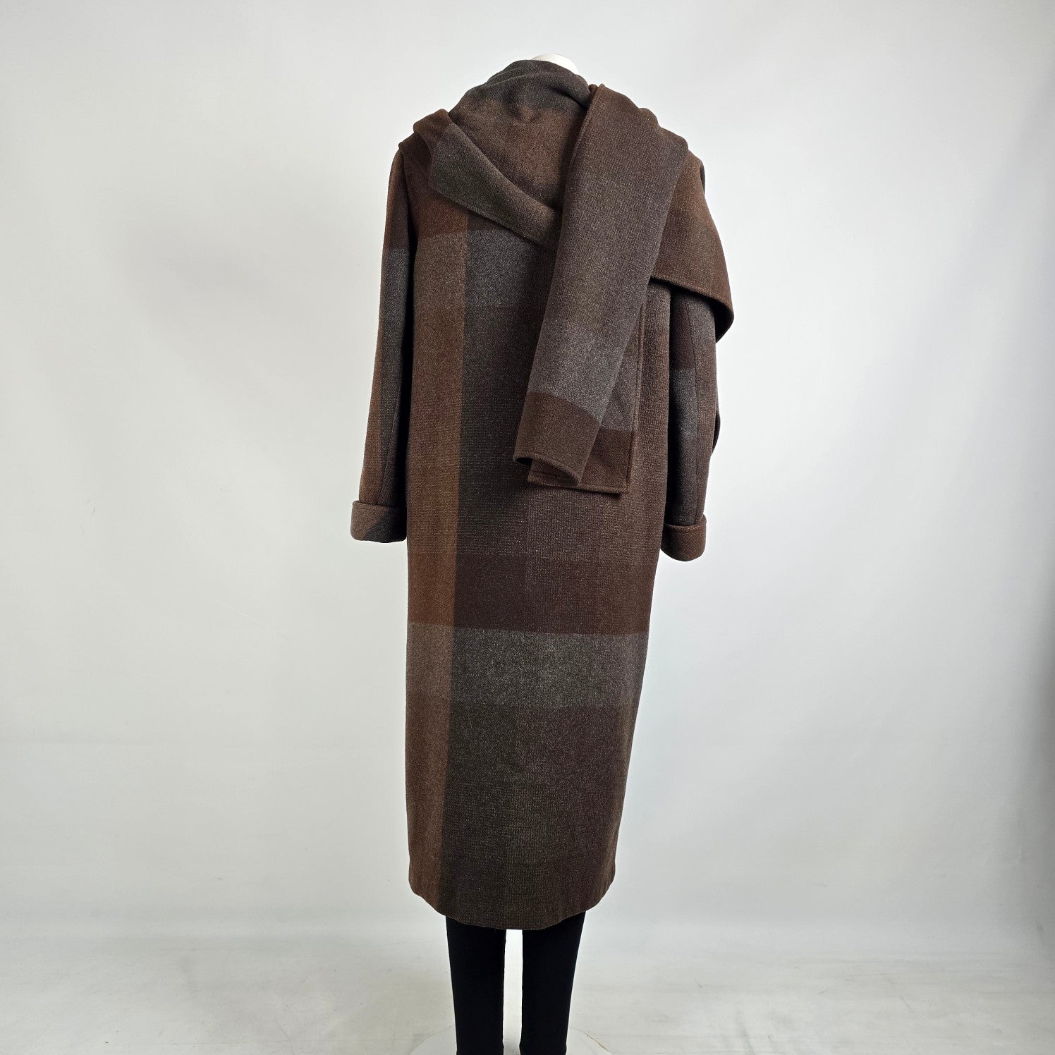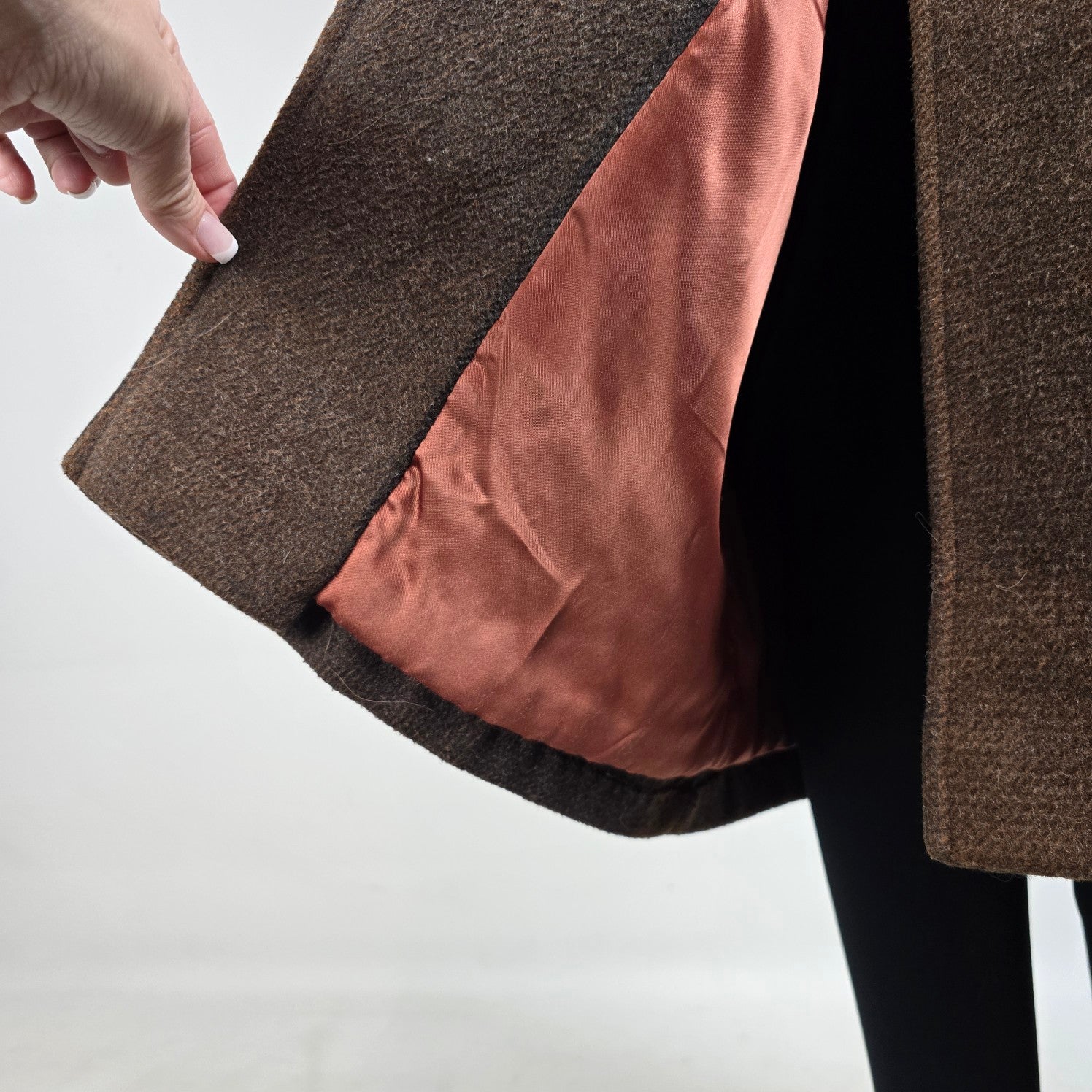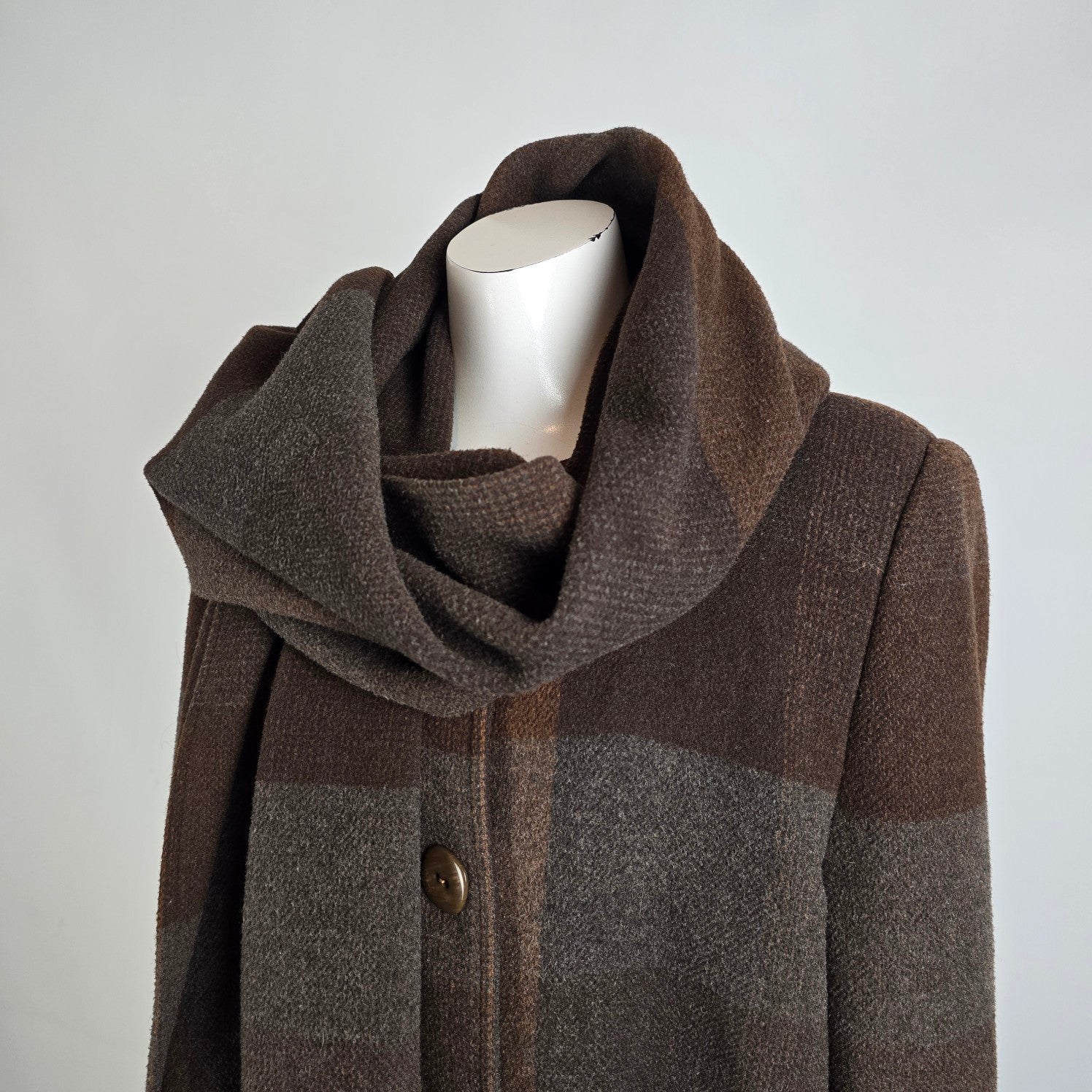 Vintage Novelti Brown Wool Attached Scarf Button Up Jacket Size 11/12