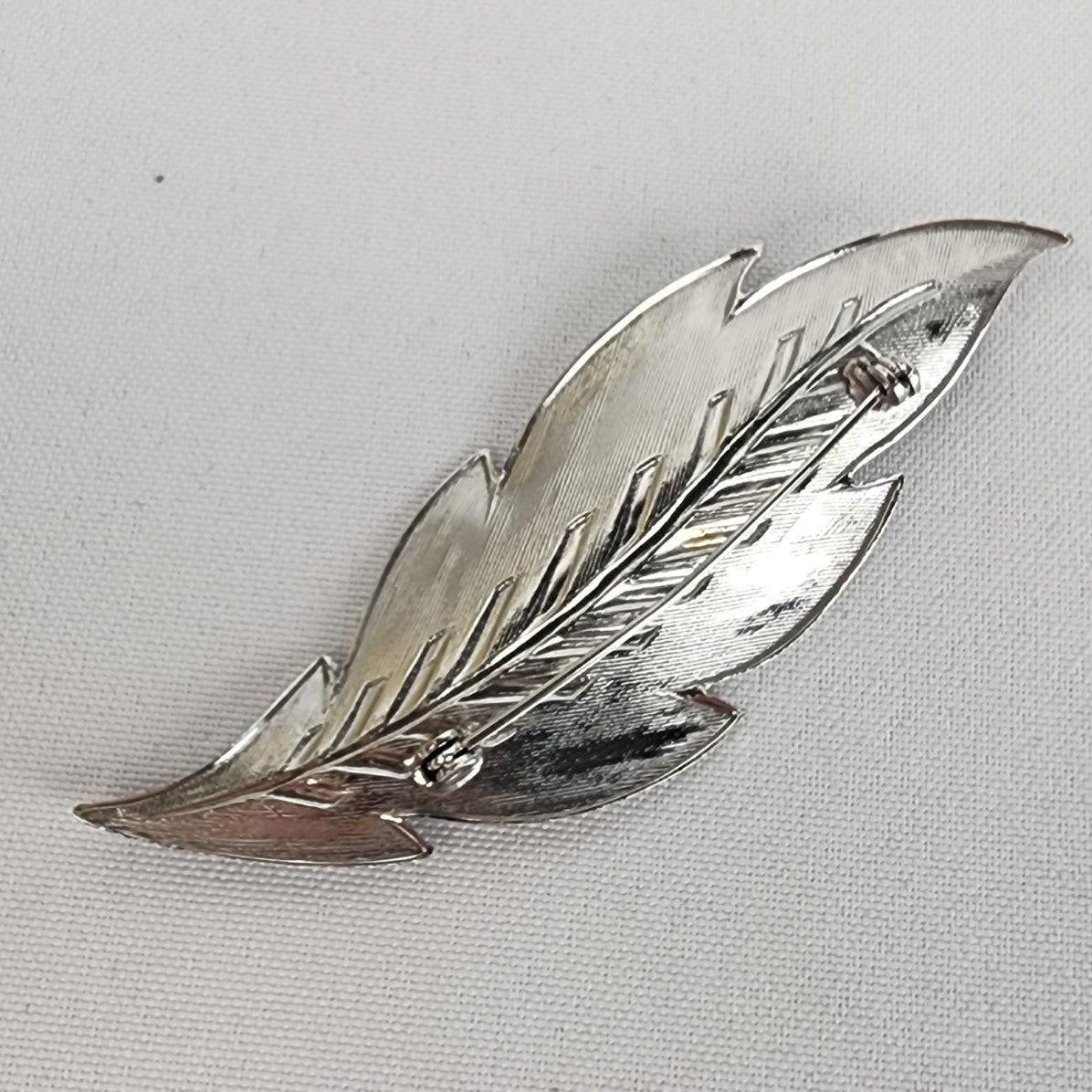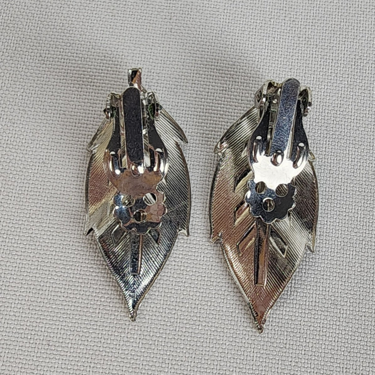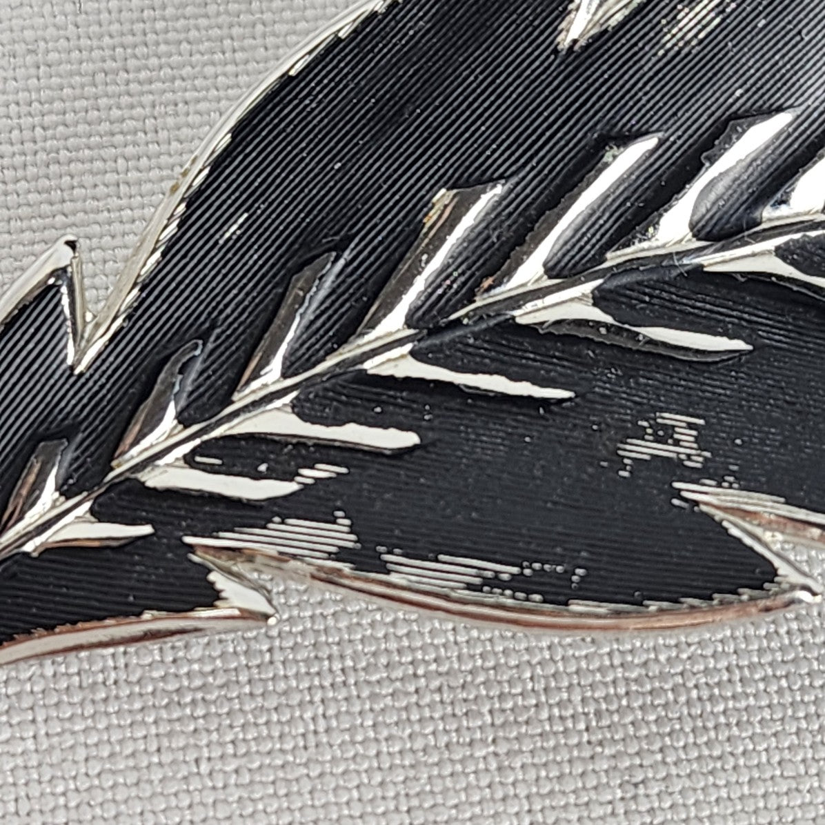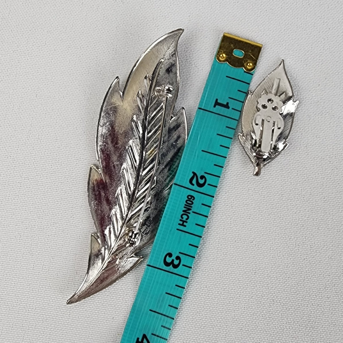 Vintage Painted Black Metal Leaf Brooch & Clip On Earrings