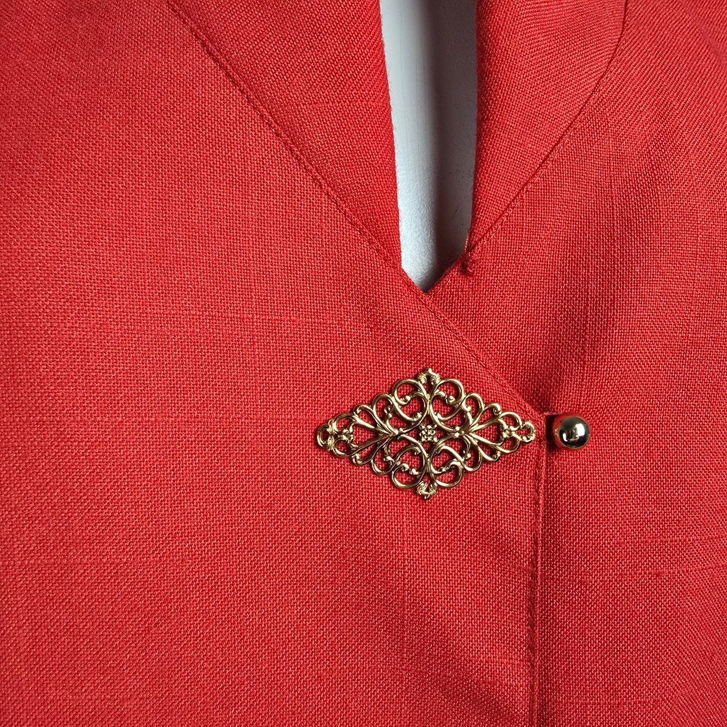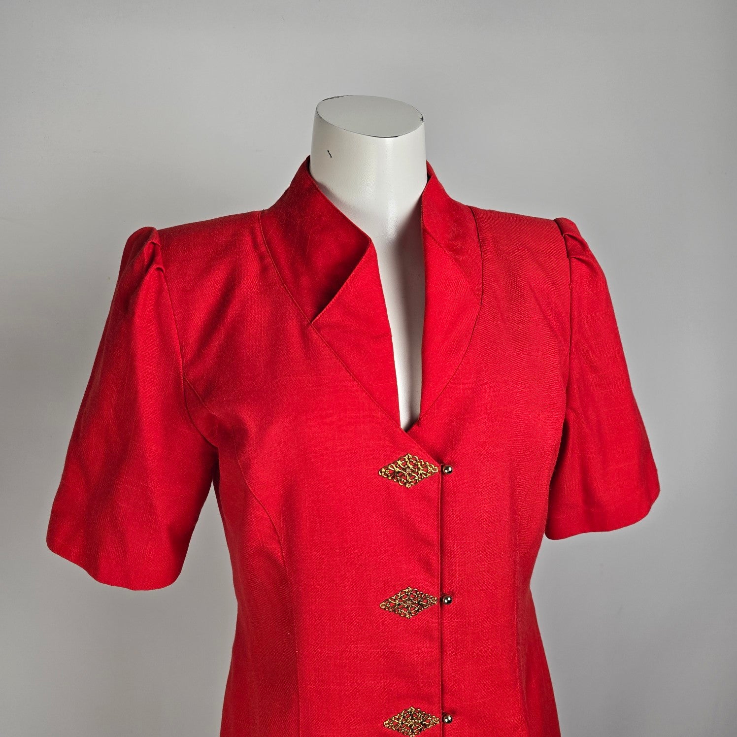 Vintage Piaf Red Gold Button Front Sheath Dress Size M