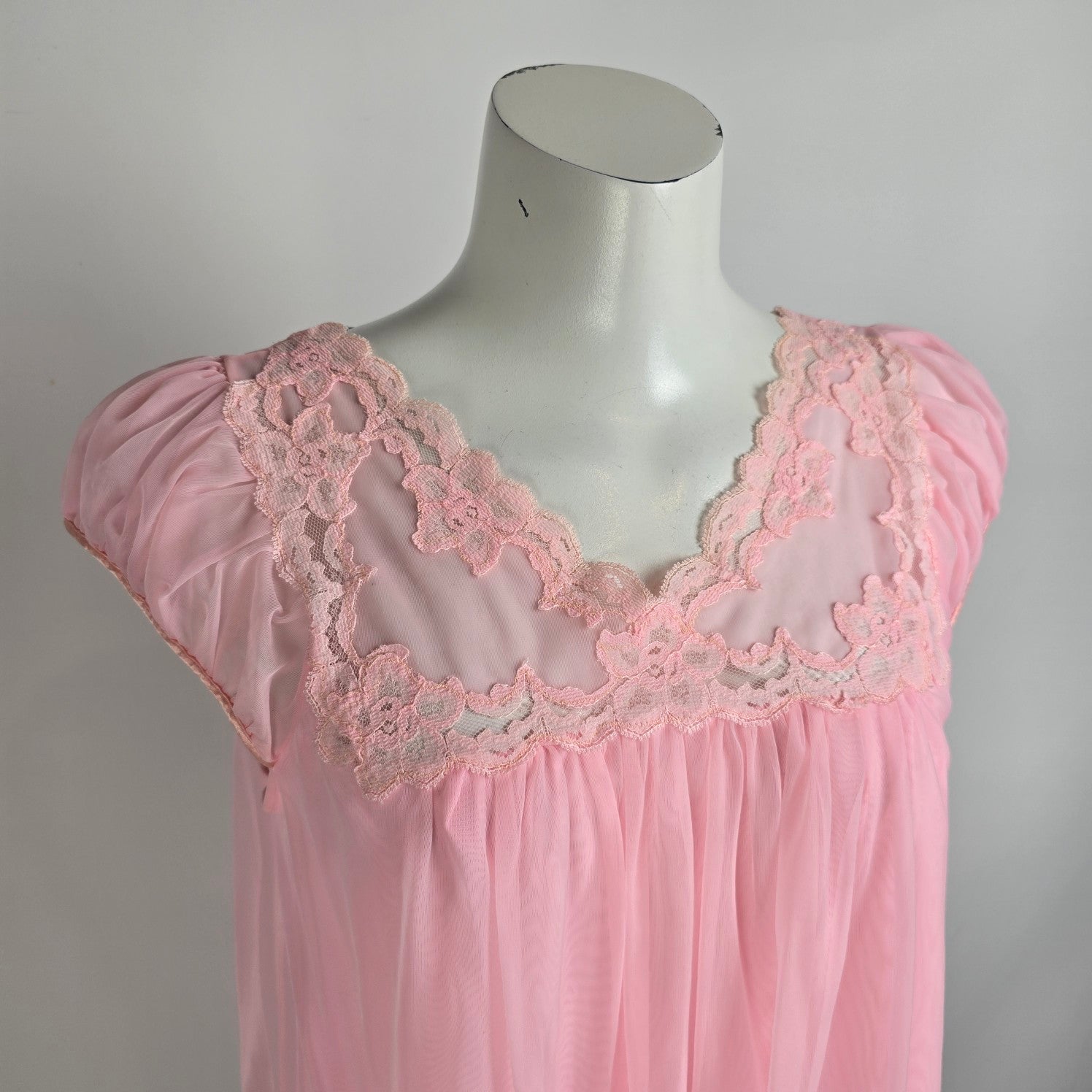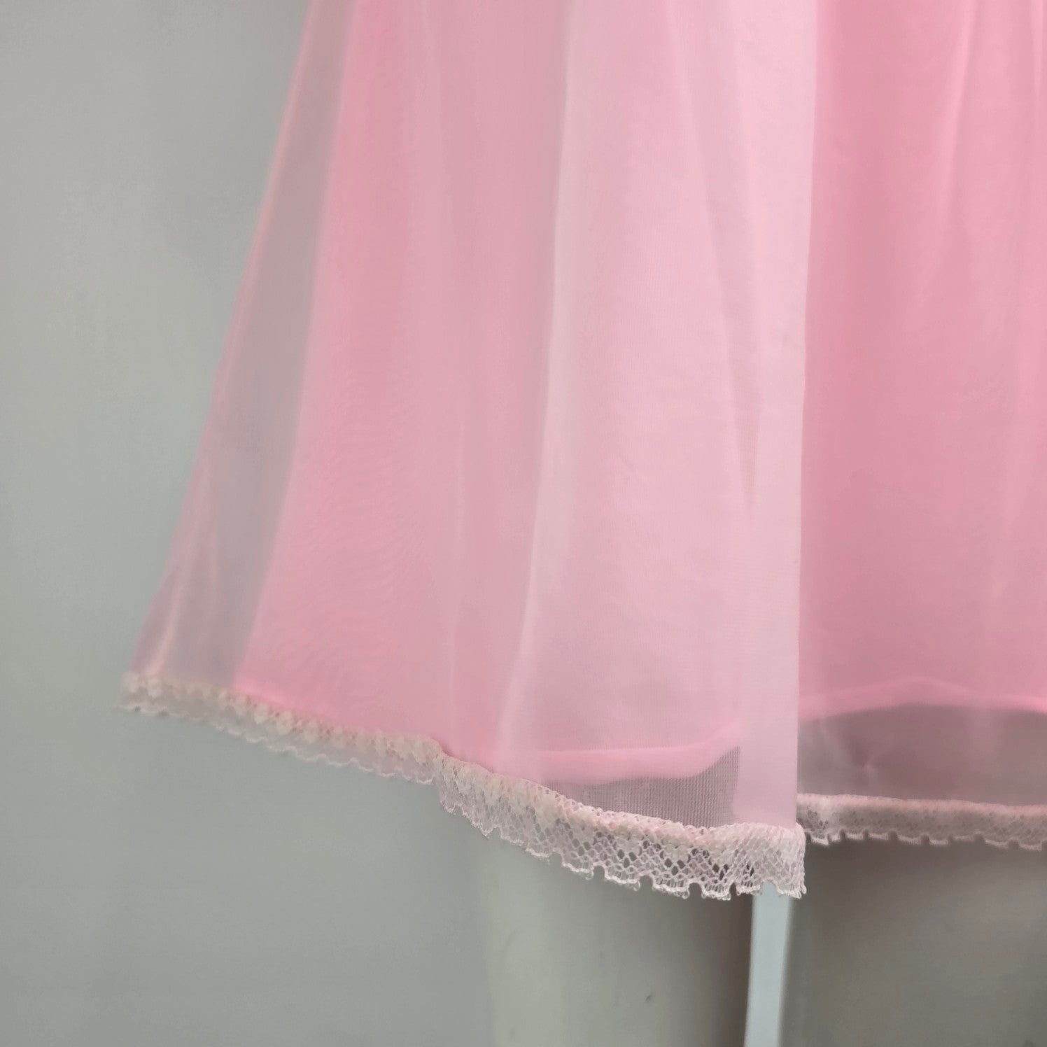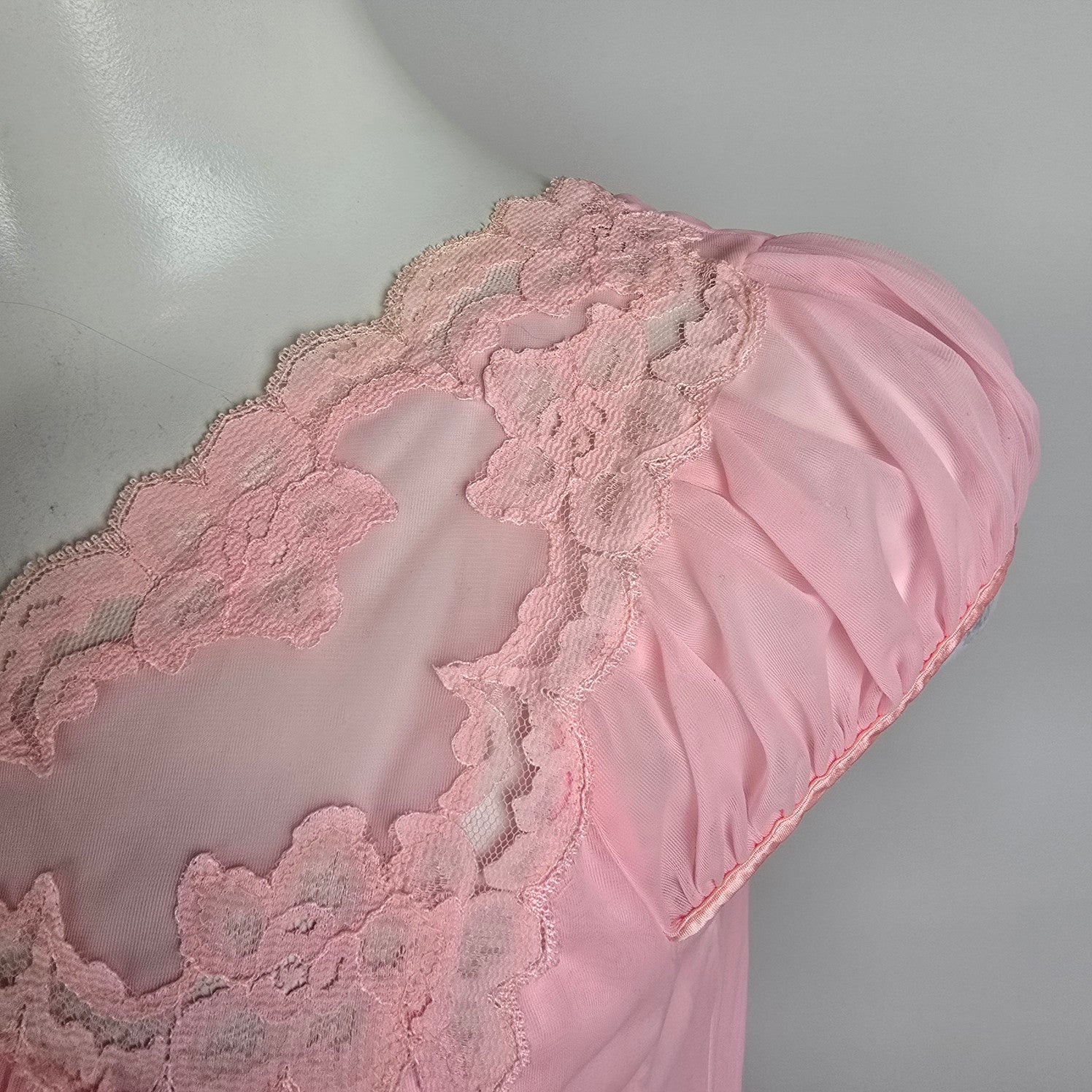 Vintage Pink Lace Lingerie Dress Night Gown Size S