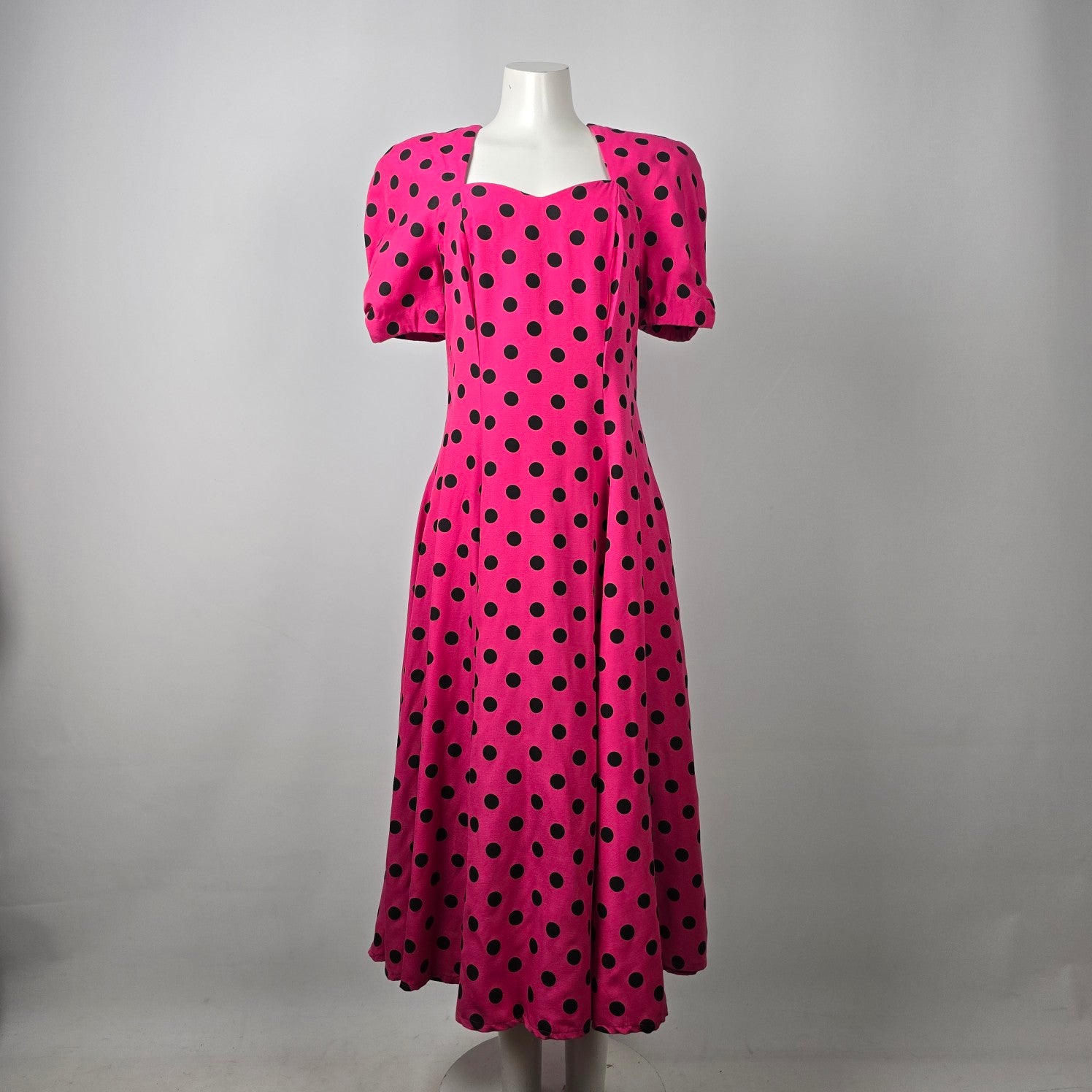 Vintage Pink Polka Dot Fit & Flare Dress Size M