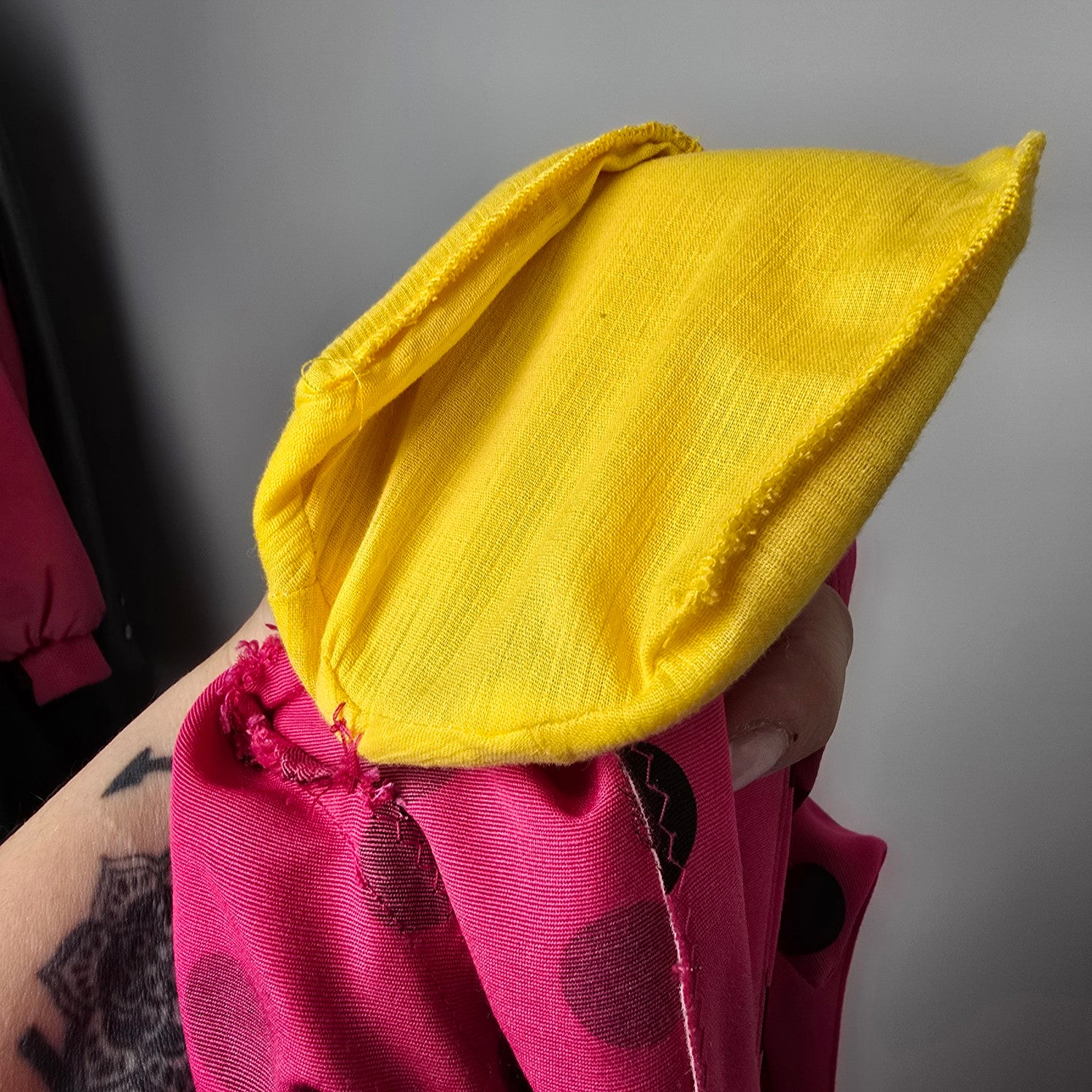 See last photos for fabric content and approximate FLAT measurements, compare our measurements to something in your closet to see if it will fit.