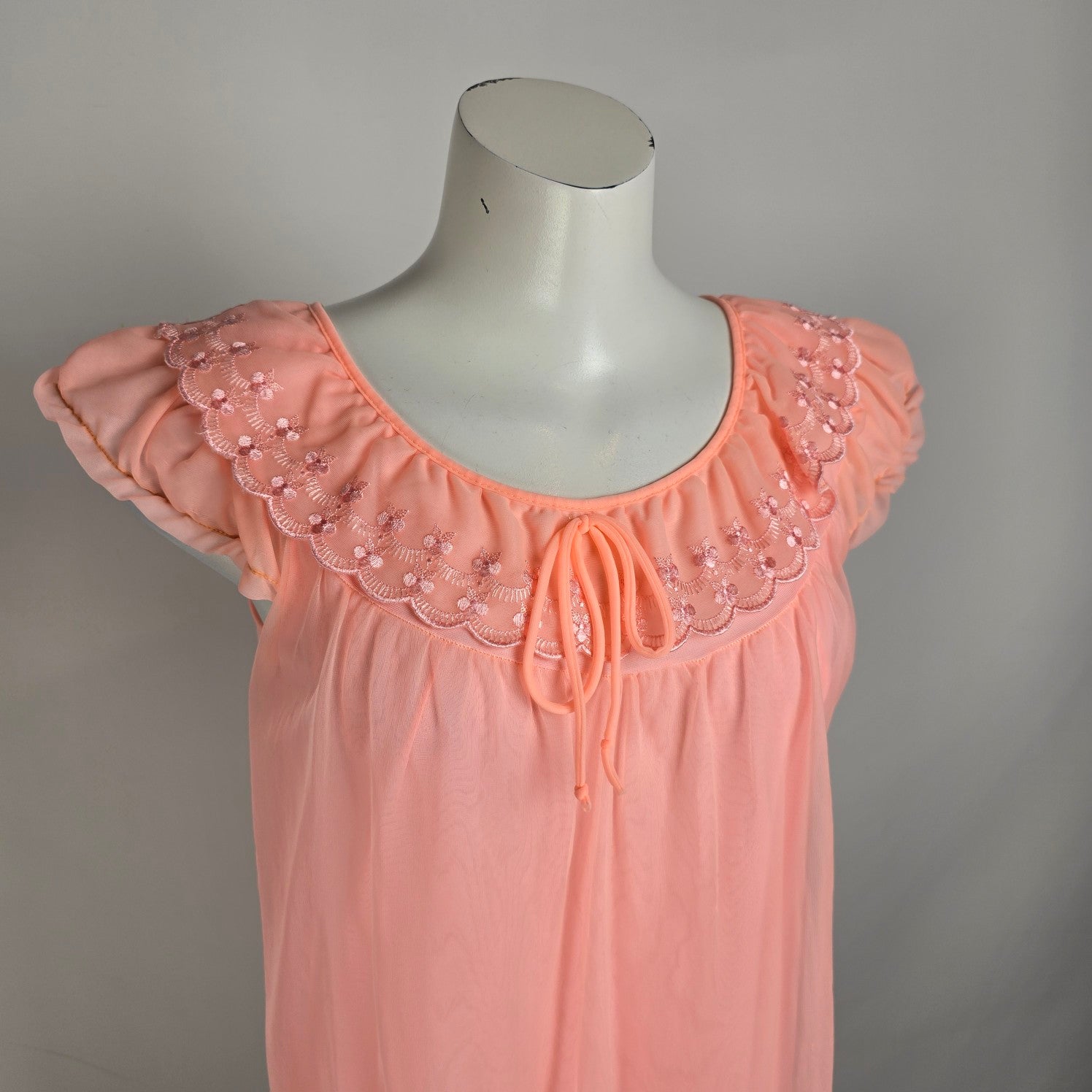 Vintage Pink Ruffle Lingerie Dress Night Gown Size S