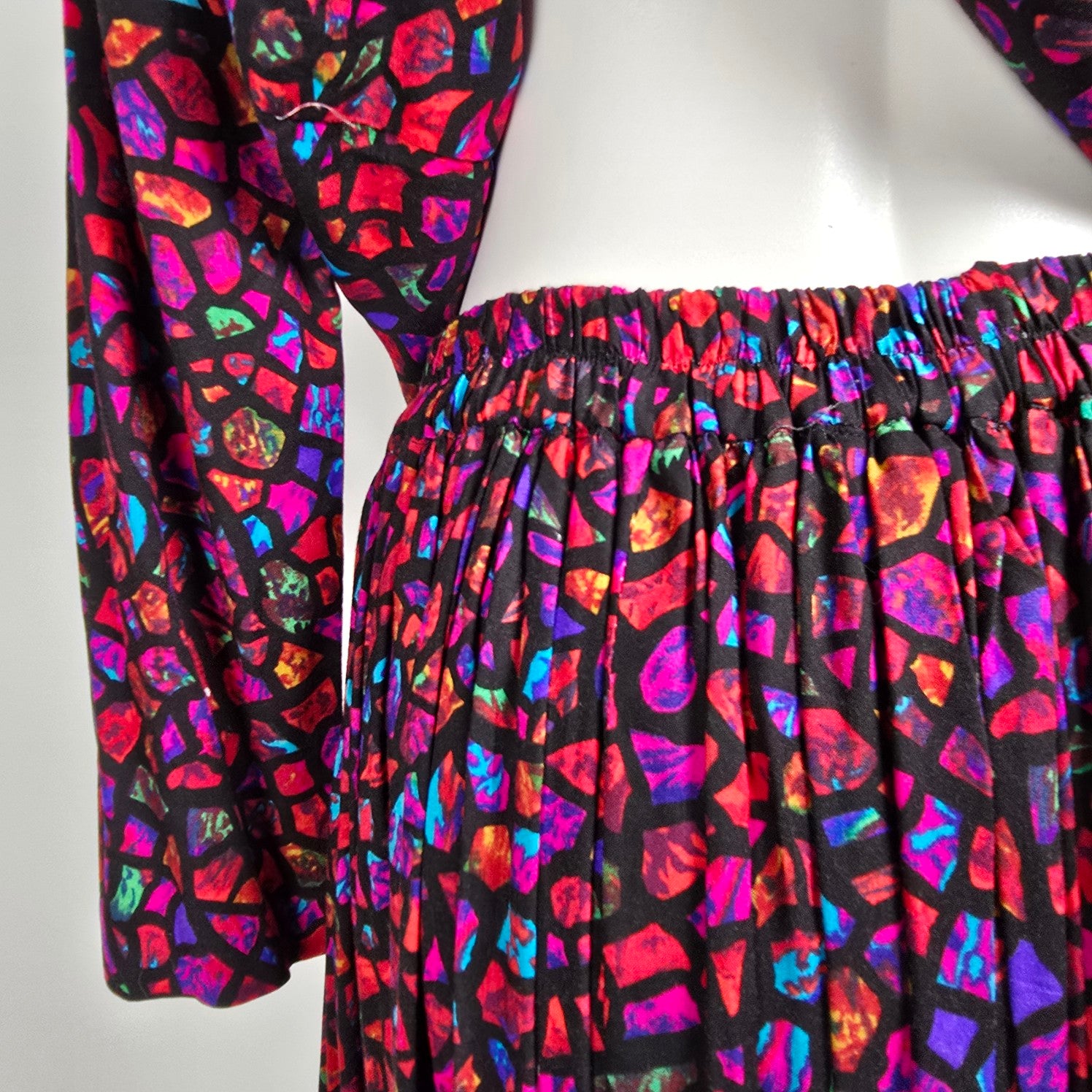 Vintage Pink Stained Glass Print Two Piece Skirt & Top Set Size M