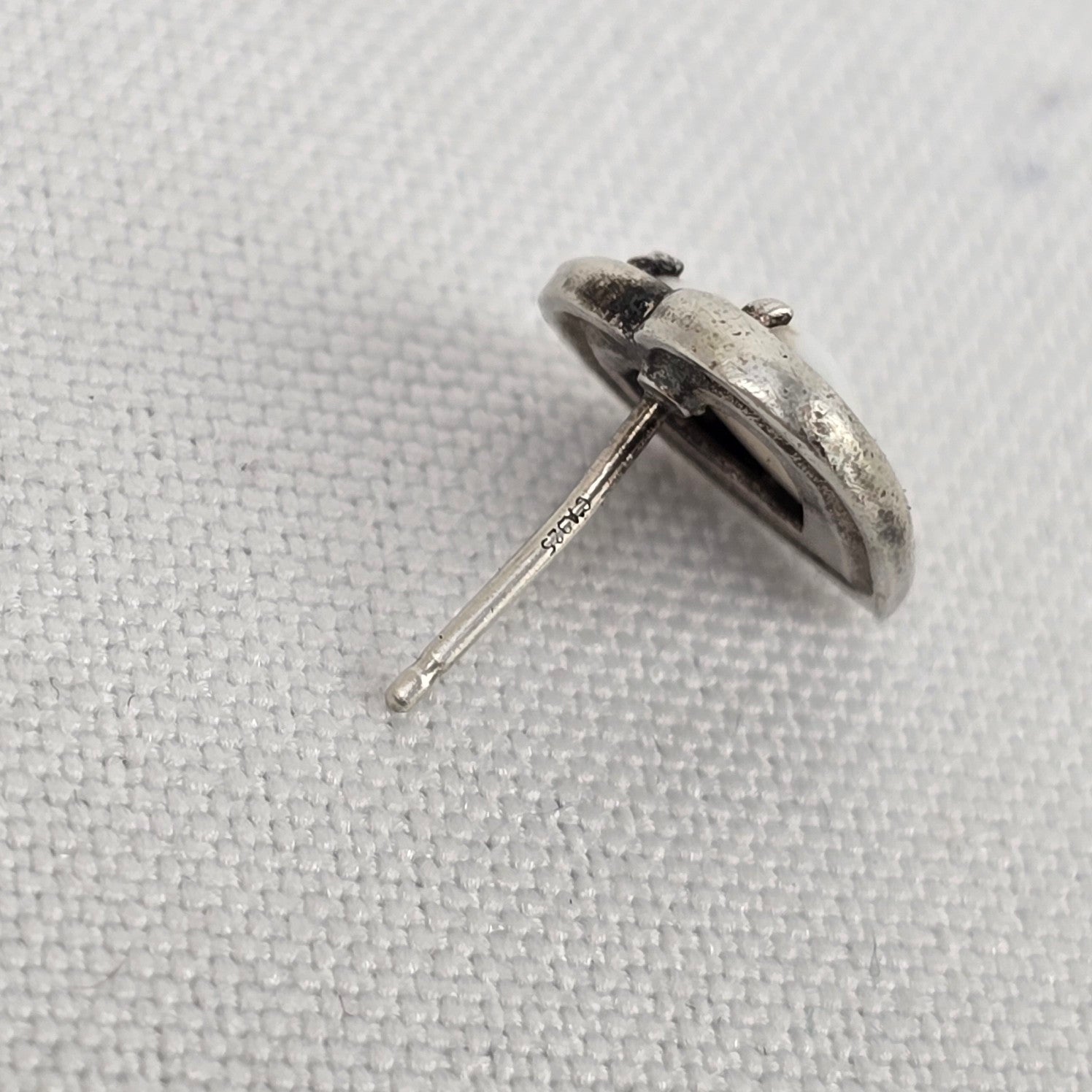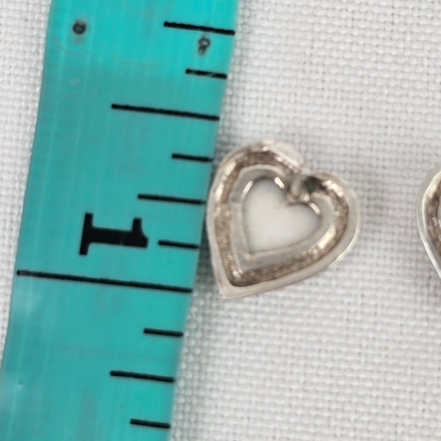 Vintage Porcelain Floral Painted Heart Sterling Silver Stud Earrings