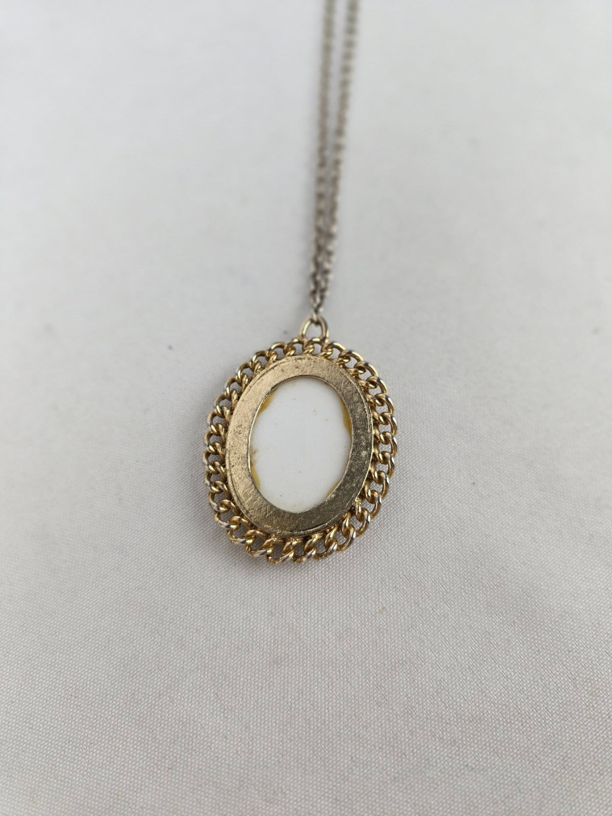 Vintage Porcelain Romantic Couple Cameo Gold Tone Pendant Necklace