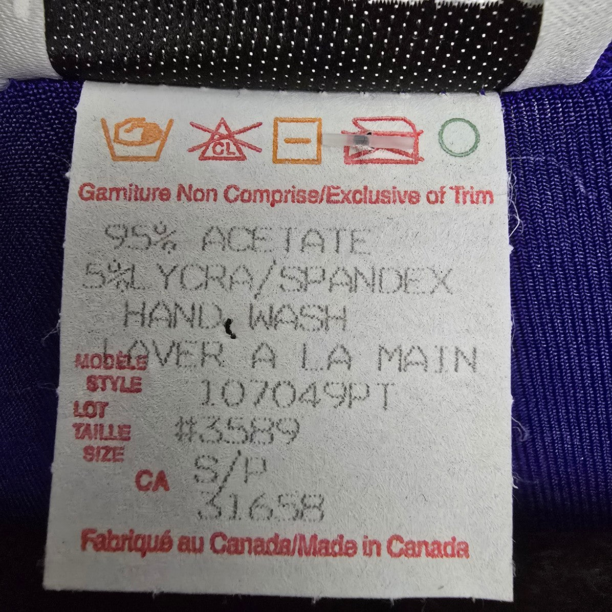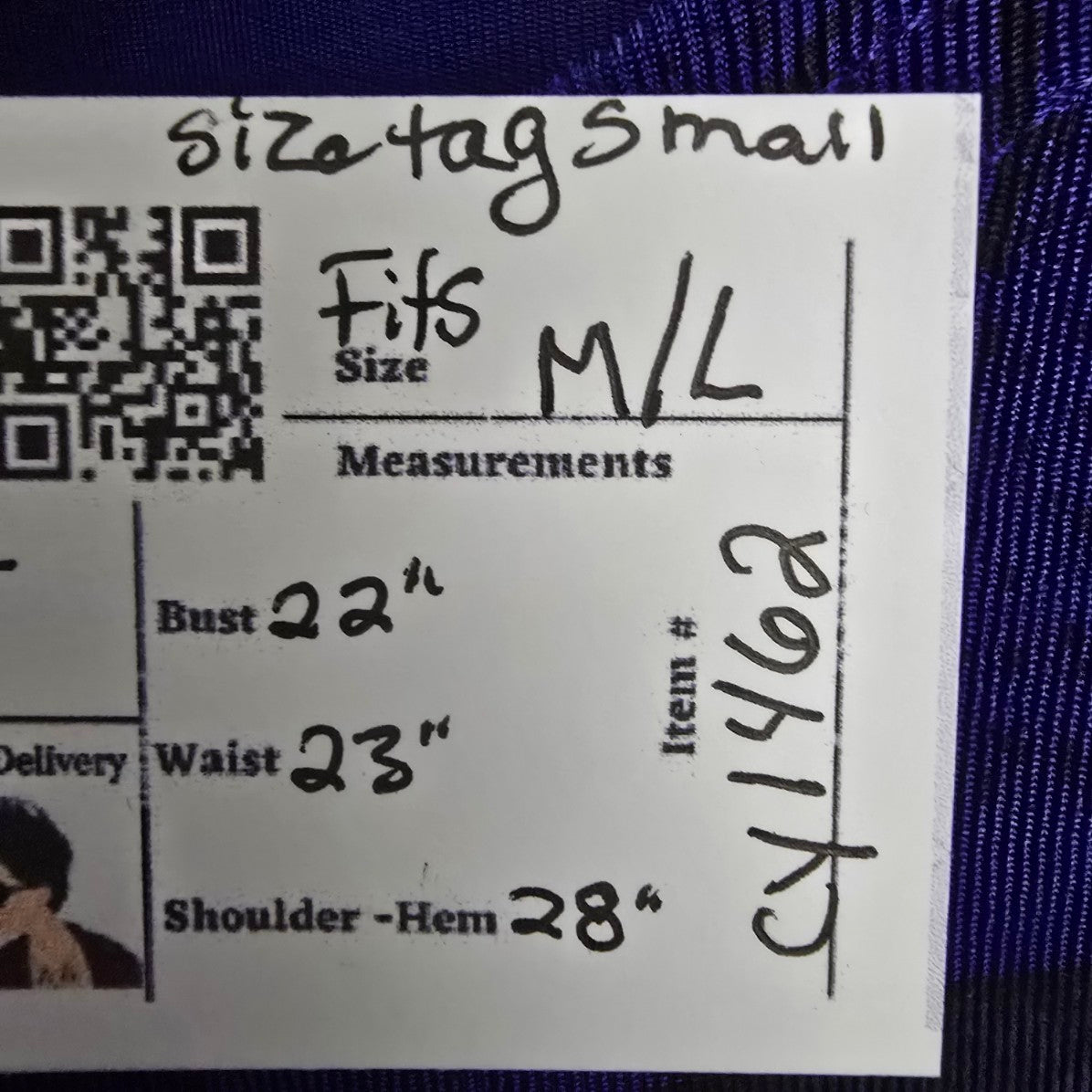 See last photos for fabric content and approximate FLAT measurements, compare our measurements to something in your closet to see if it will fit.