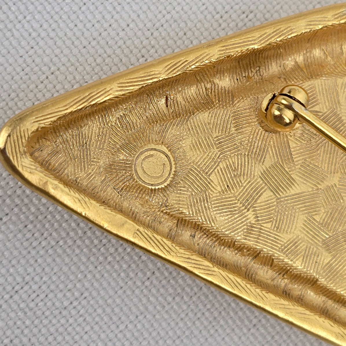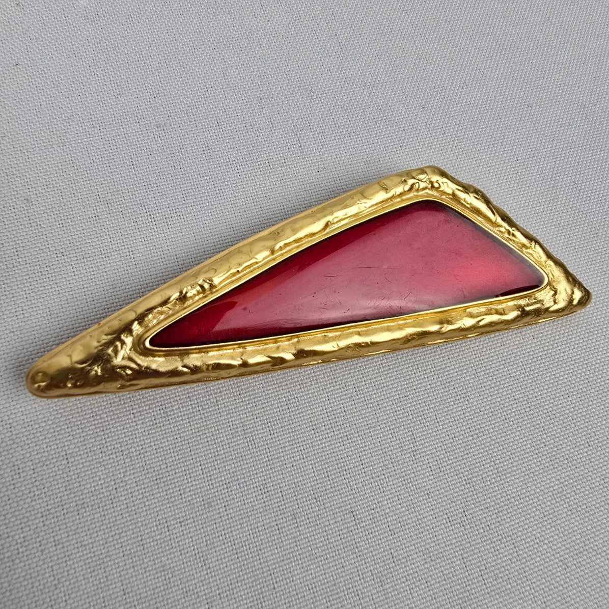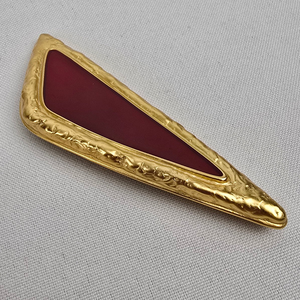 Vintage Red Enamel Gold Triangle Brooch