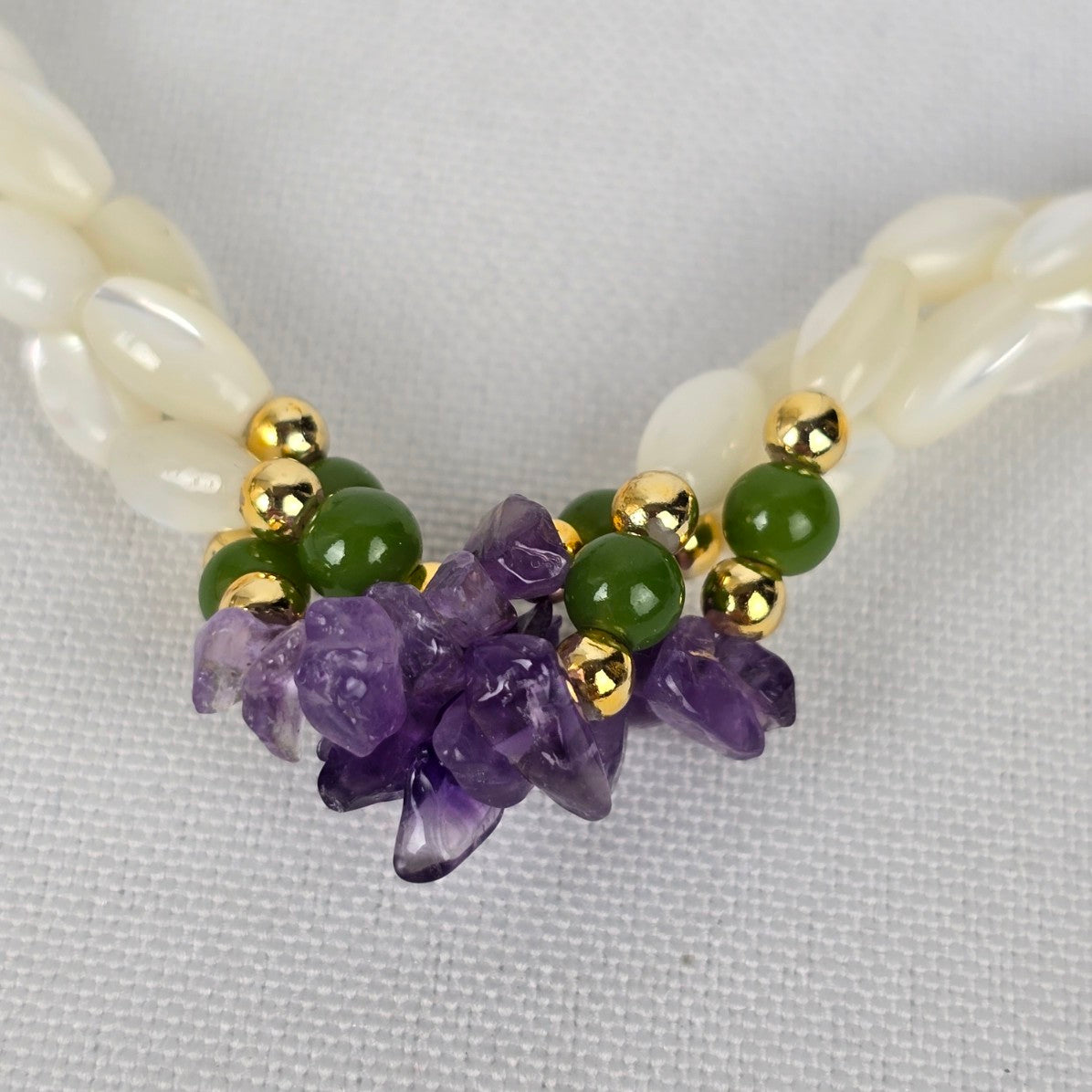 Vintage Rice Bead Mother Of Pearl Amethyst Necklace