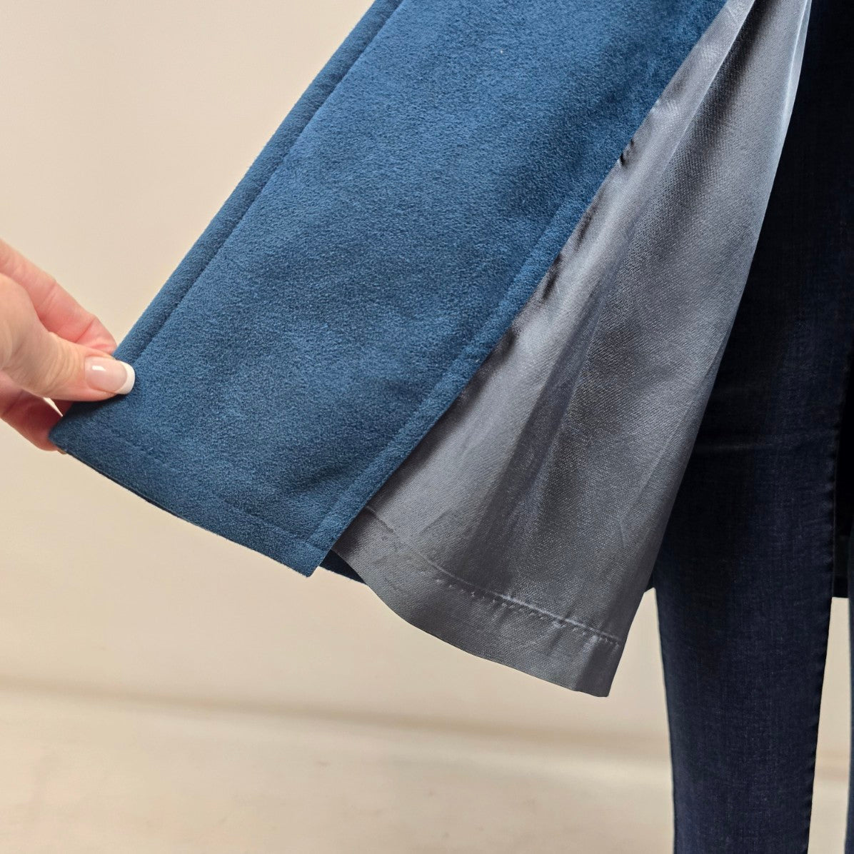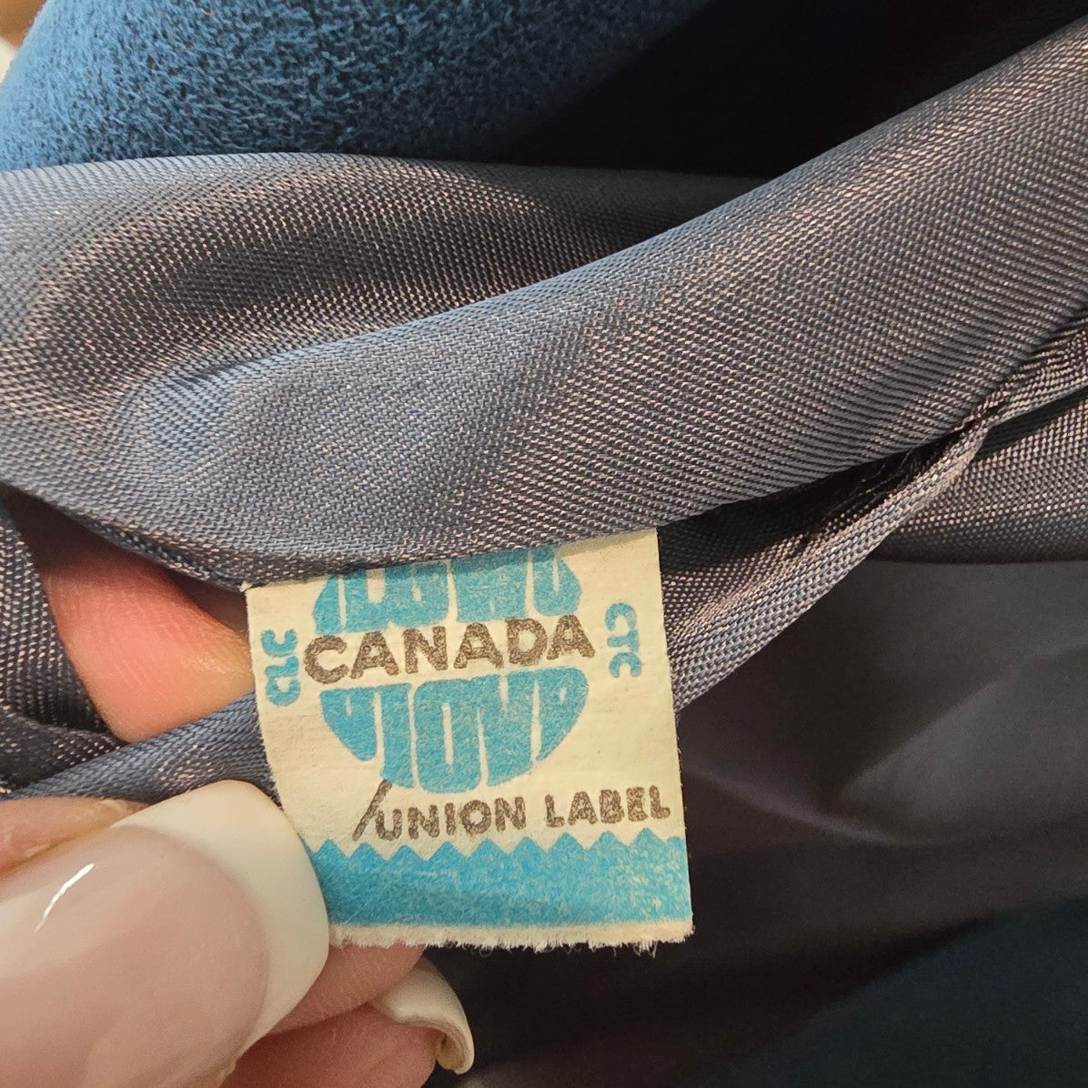 Vintage Sanders & Gold Blue Faux Suede Button Up Jacket Size M/L