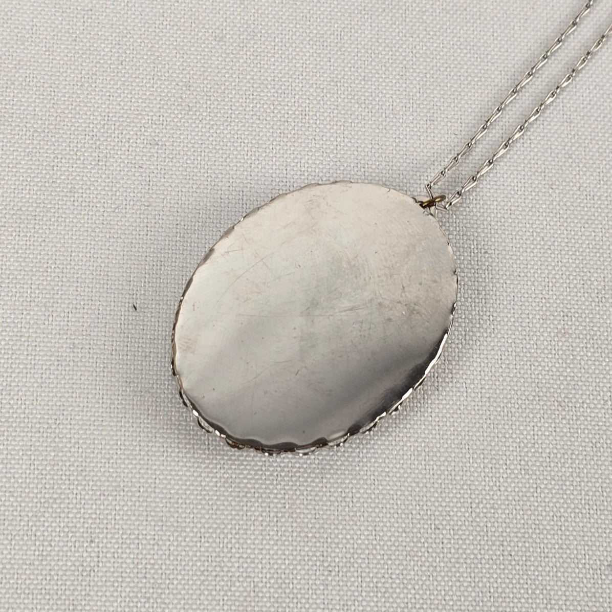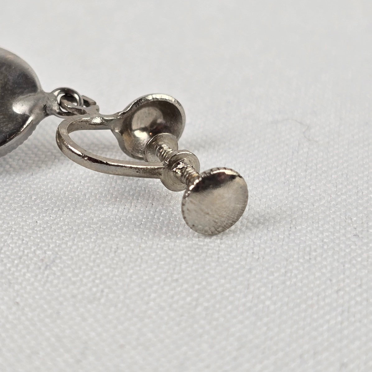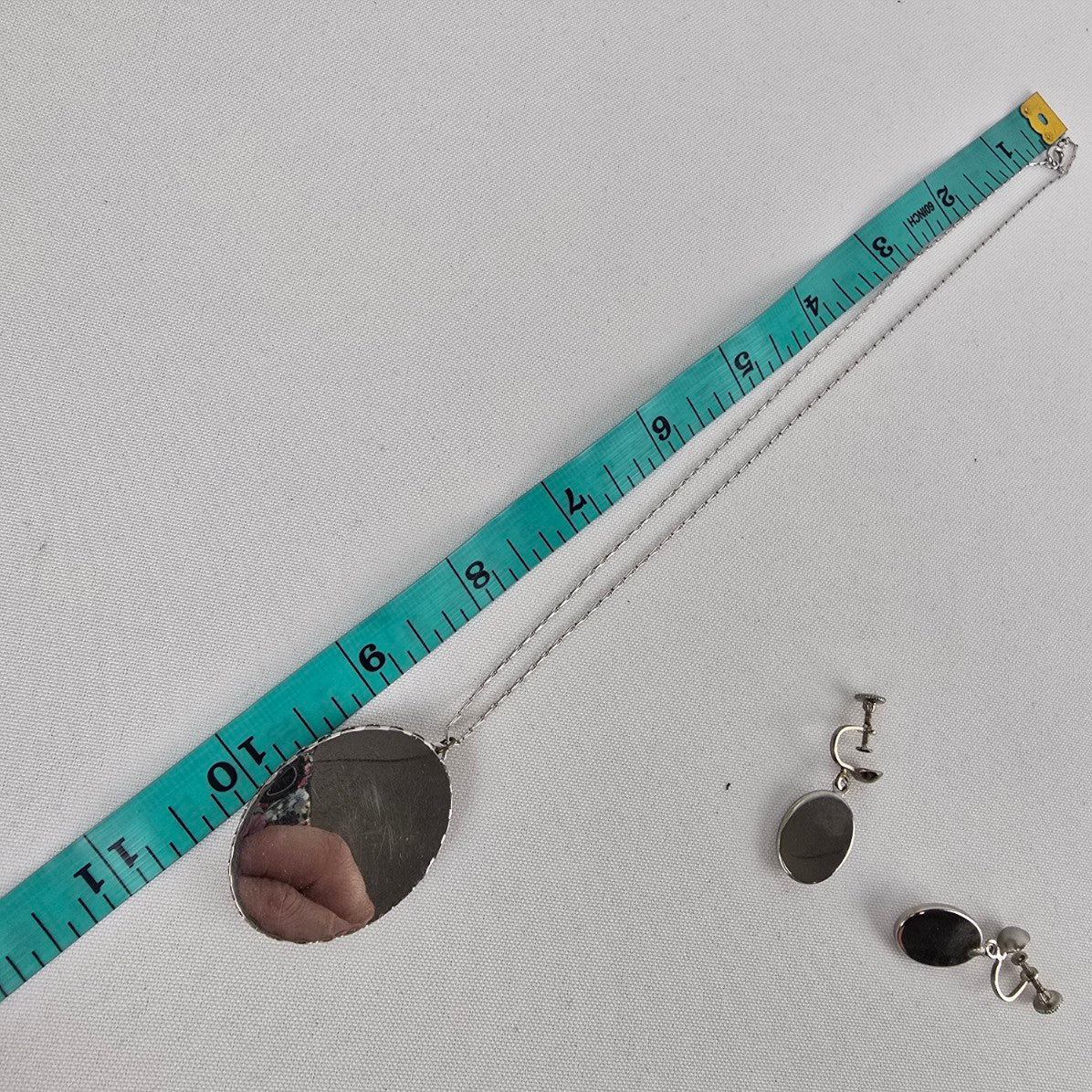 Vintage Silver Cameo Mirrored Necklace Screw Back Earrings Set