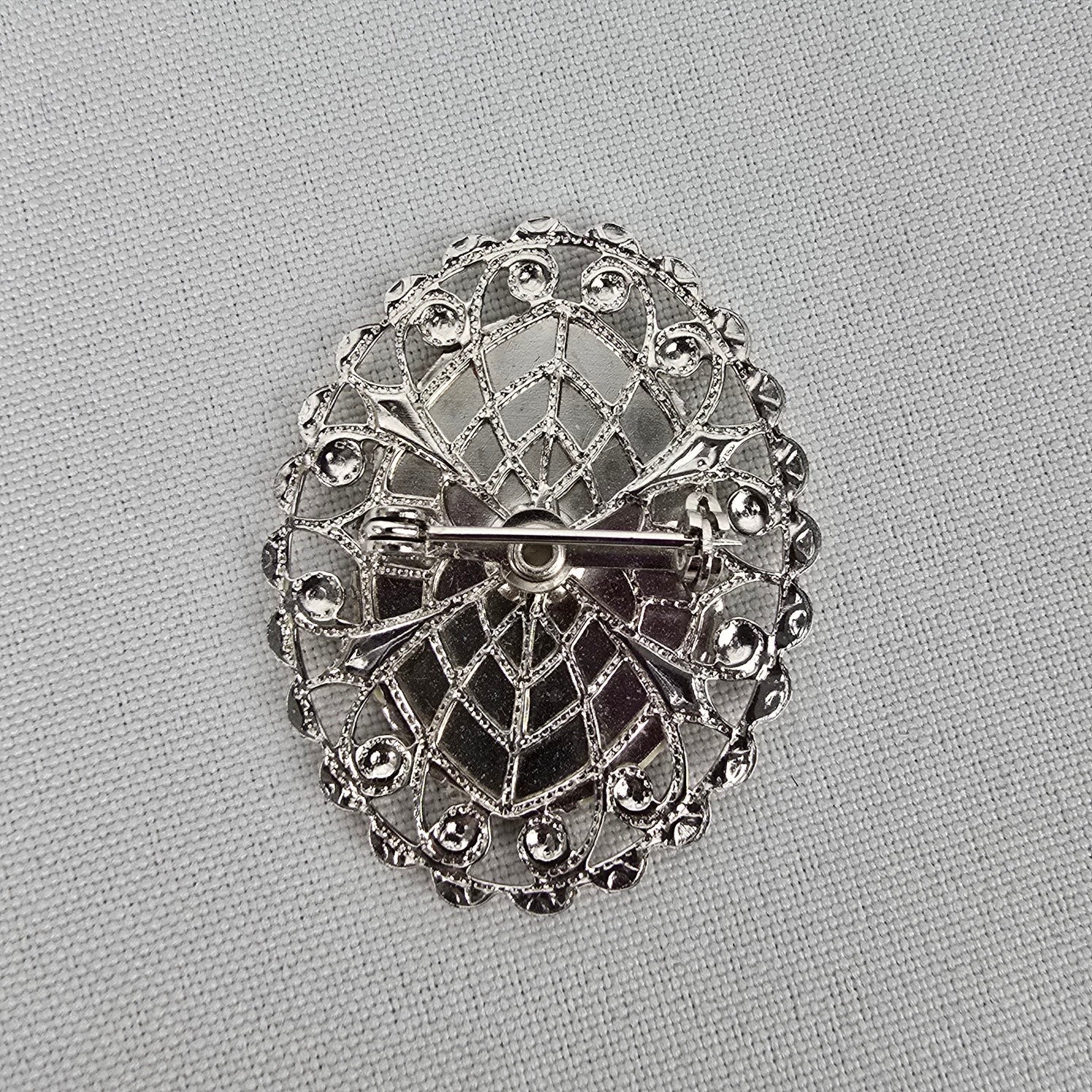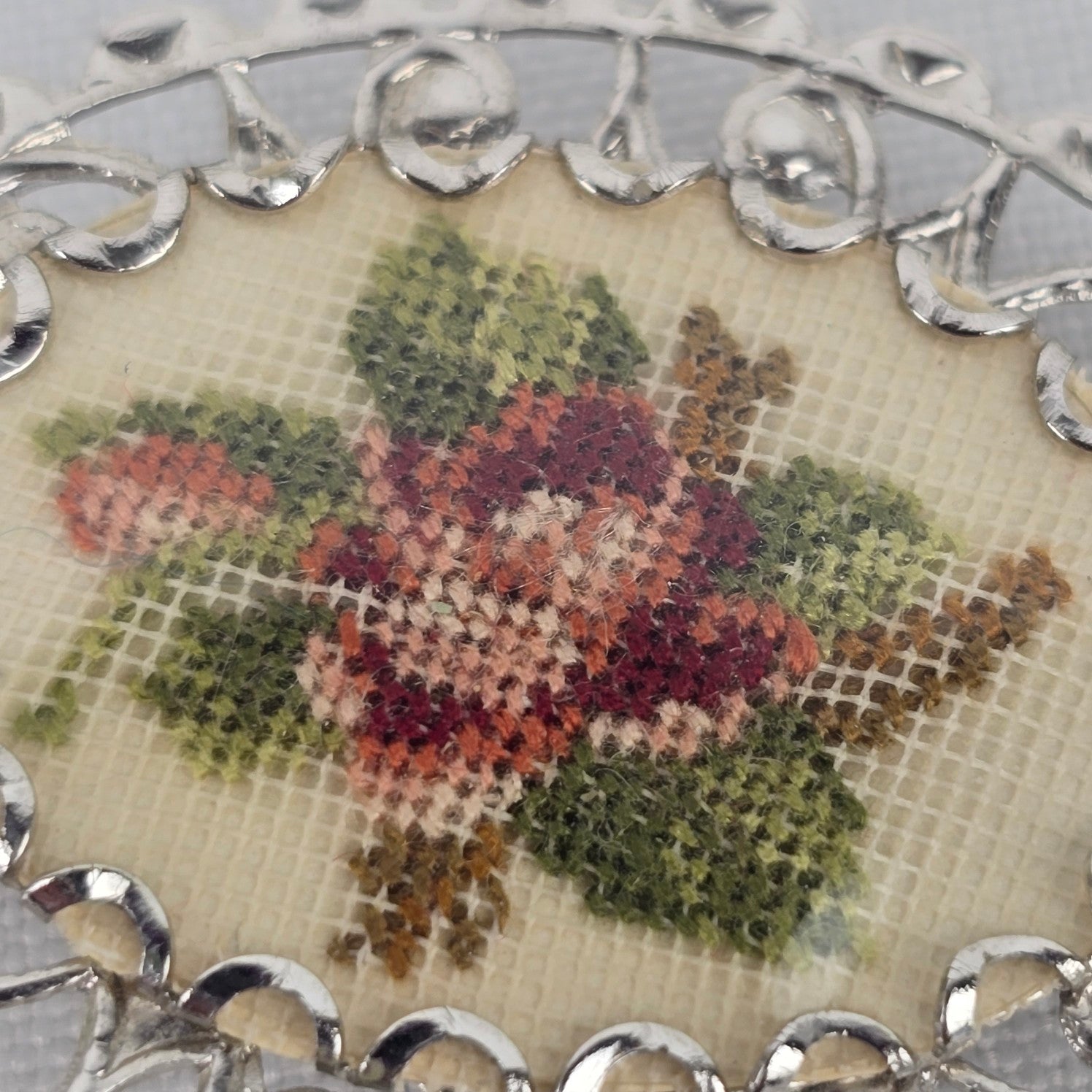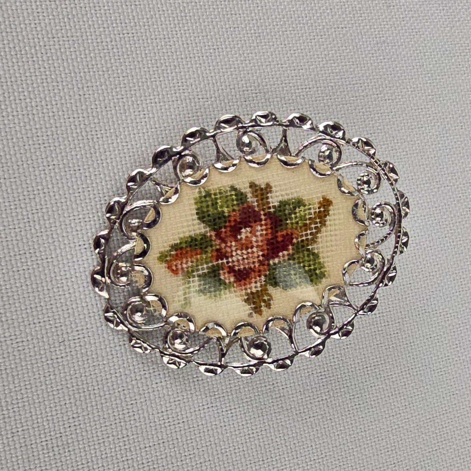 Vintage Silver Tone Floral Needle Point Brooch