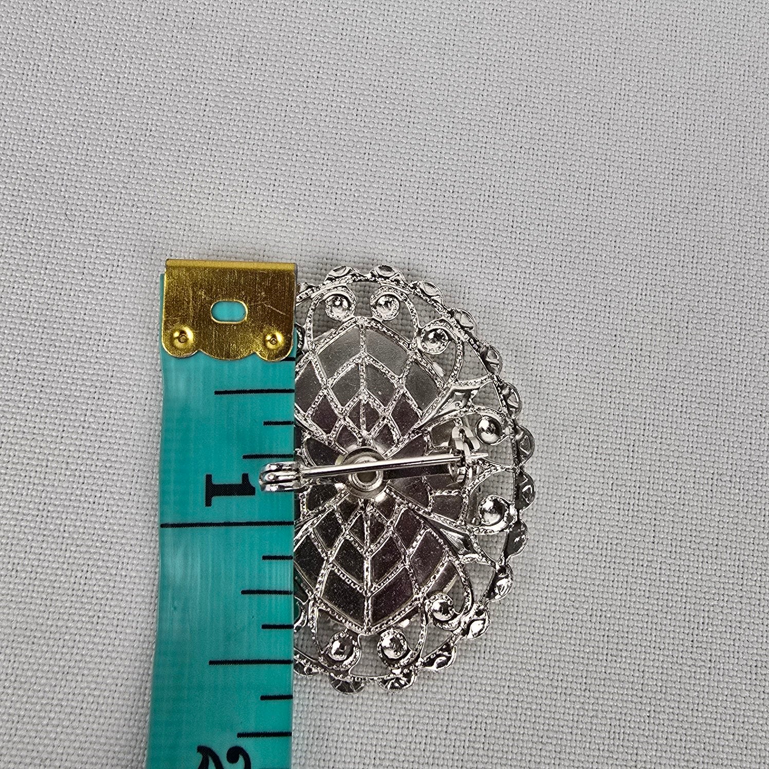 See last photo for length or size measurements, compare our measurements to something in your jewelry box to know if this piece will work for you.