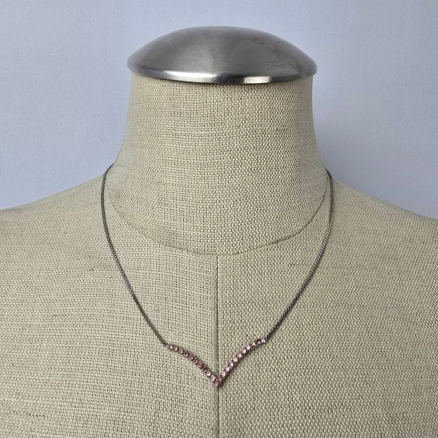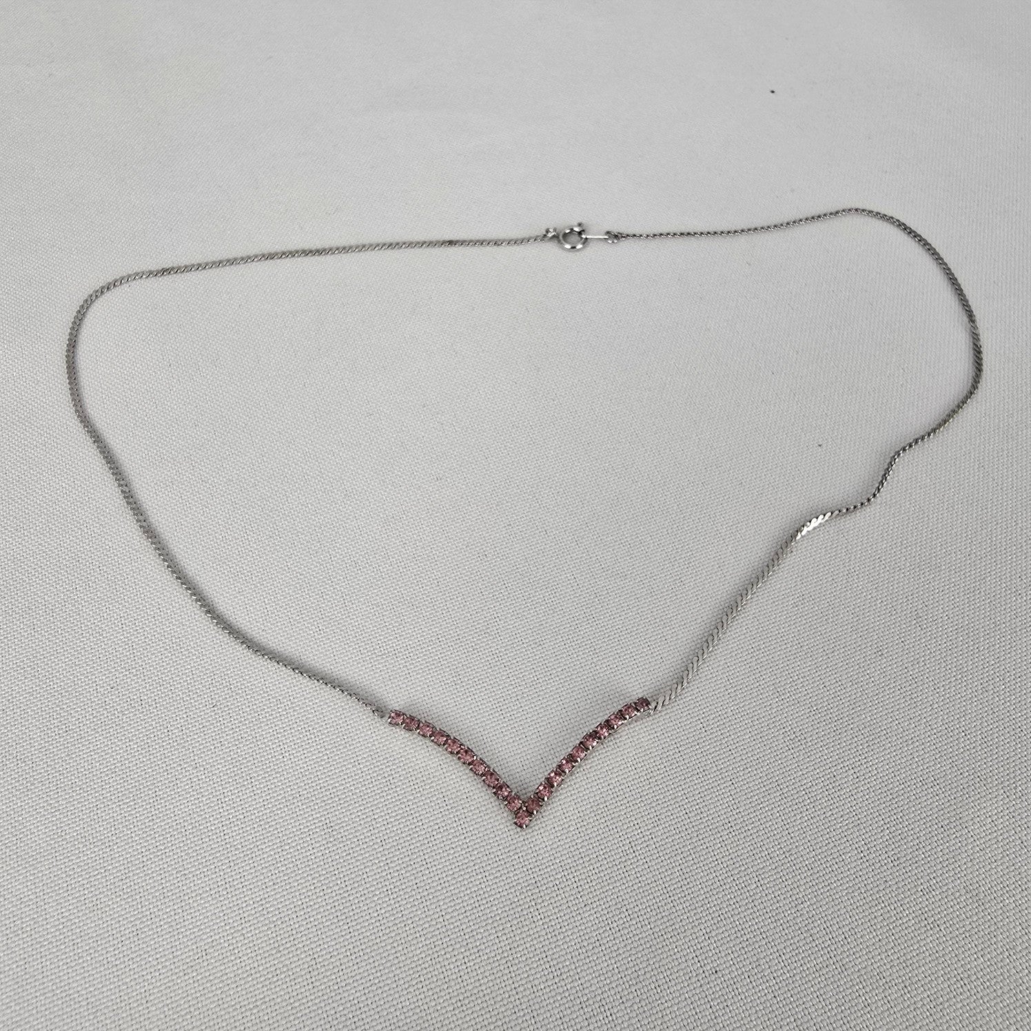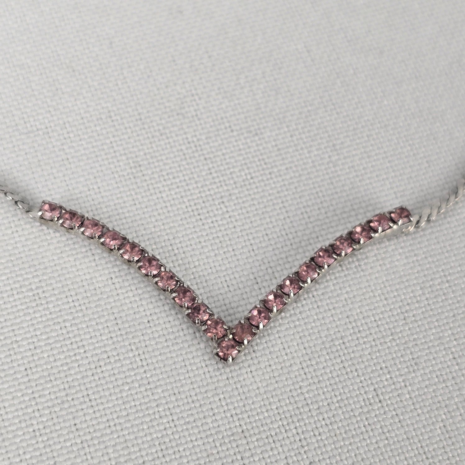 Vintage Silver Tone Pink Rhinestone Collar Necklace