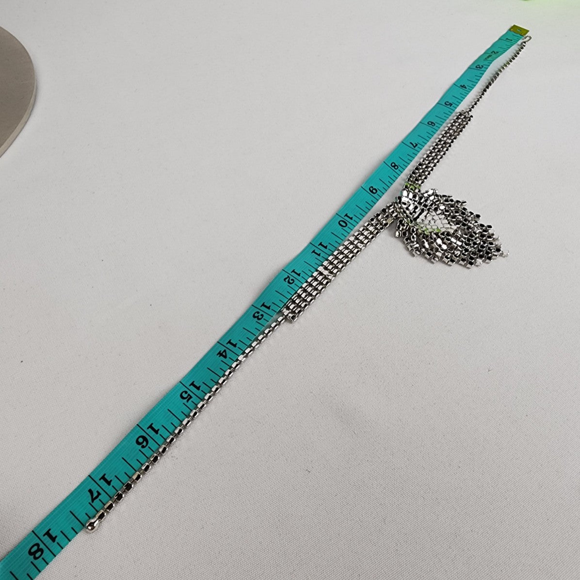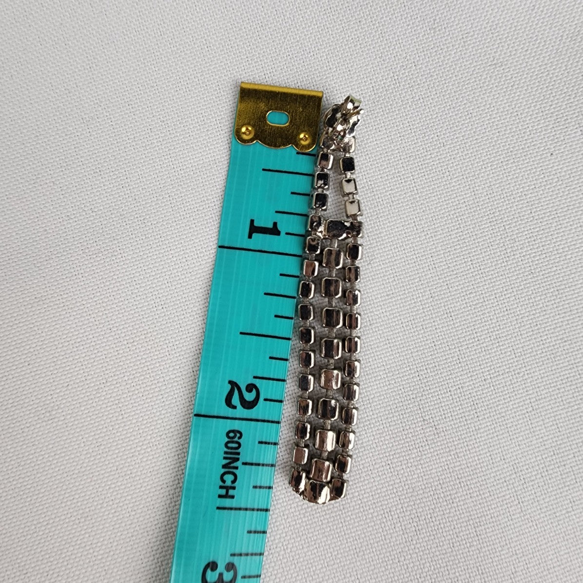 See last photo for length or size measurements, compare our measurements to something in your jewelry box to know if this piece will work for you.