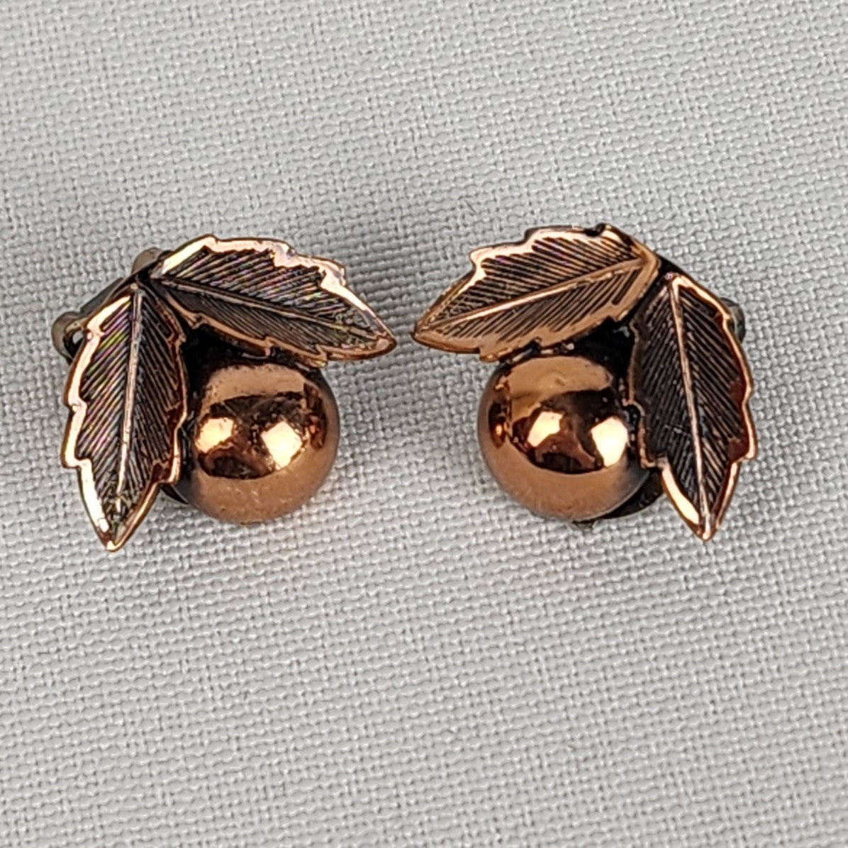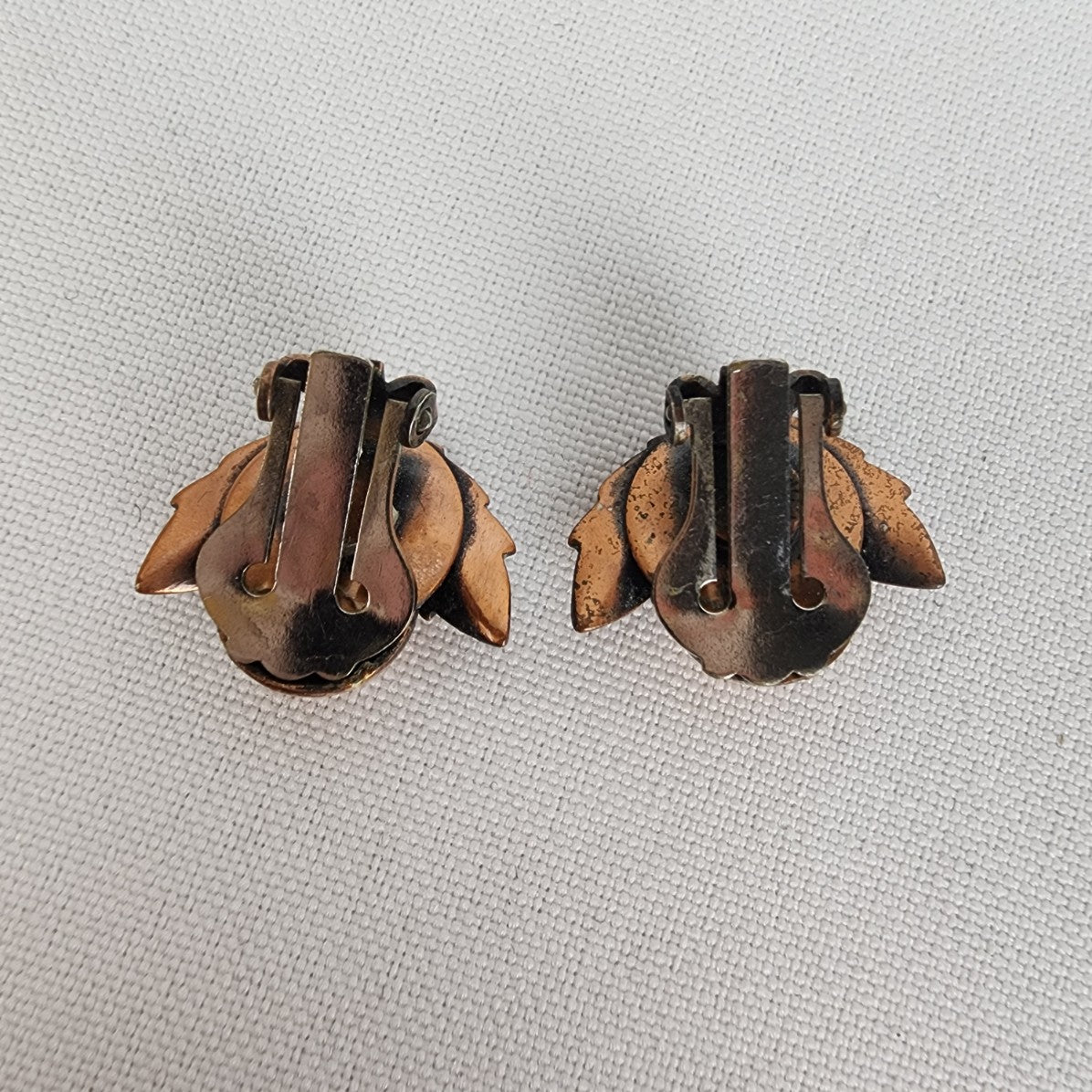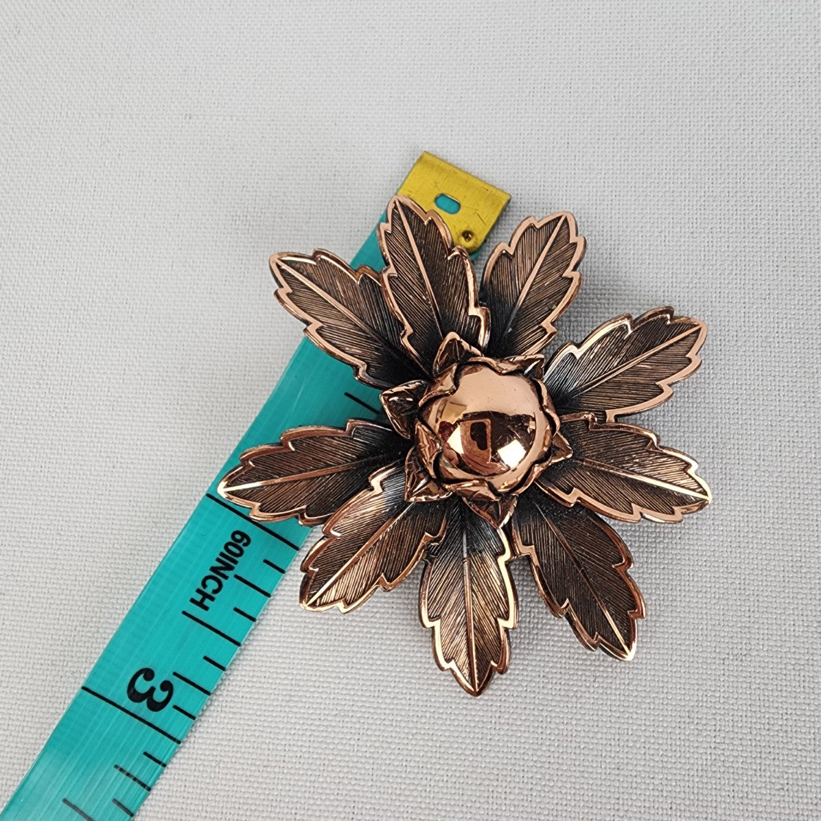 Vintage Solid Copper Flower Brooch & Clip On Earrings