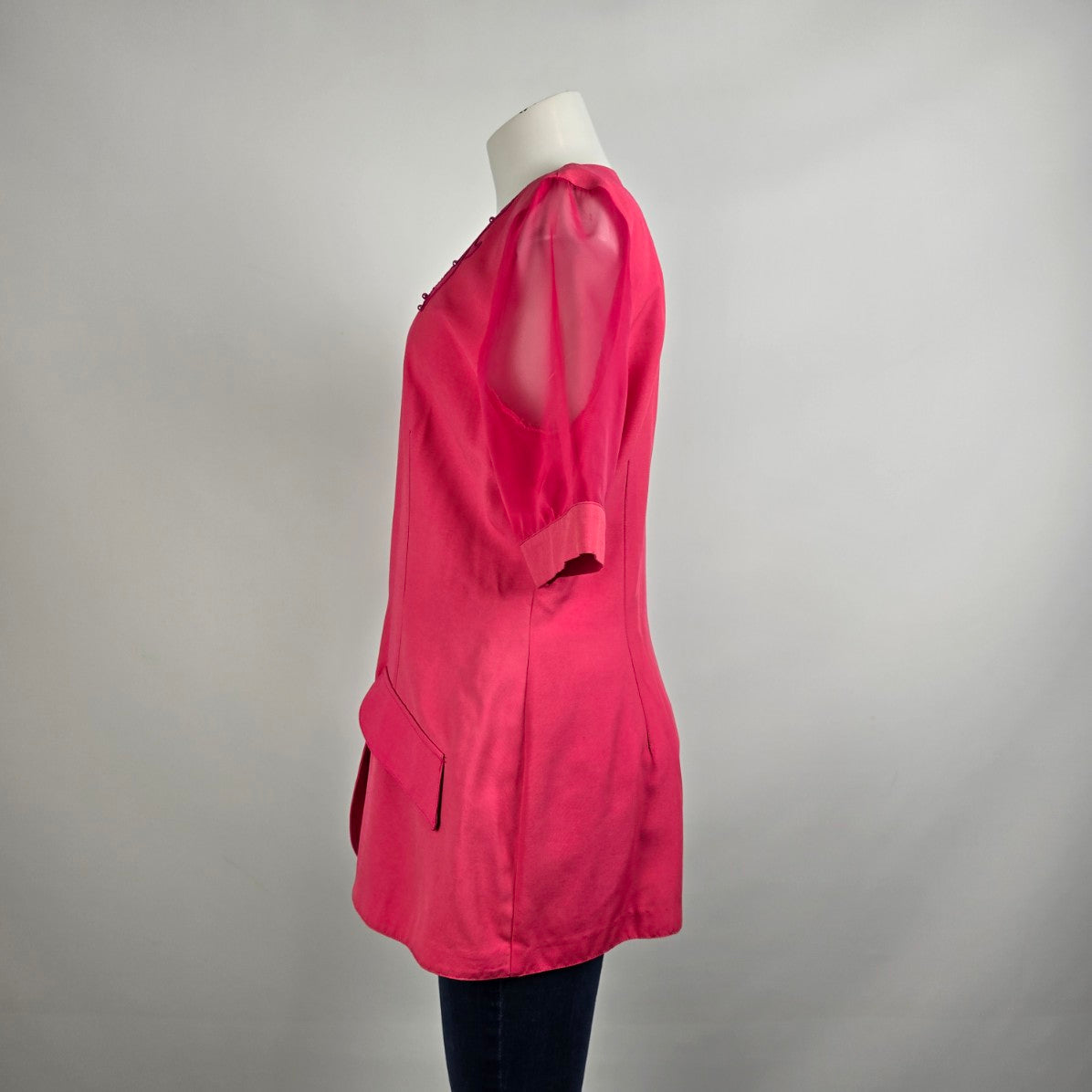 Vintage Sophisticate Pink Sheer Sleeve Jacket Size 14